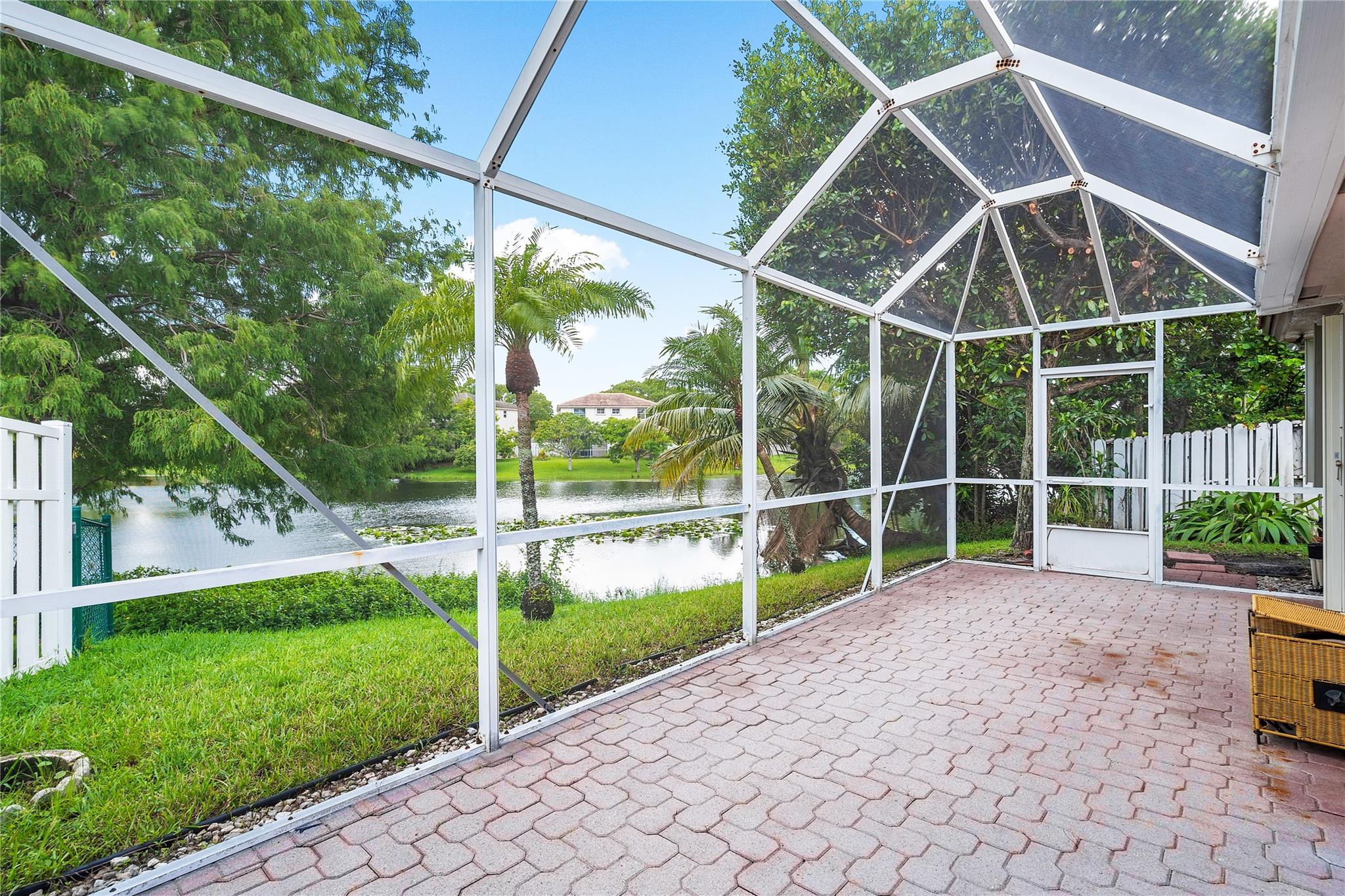 BRAND NEW ROOF JUST COMPLETED-LOW HOA-PETS ALLOWED. This well-kept waterfront home has an oversized main bedroom with a serene lake view, large walk-in closet, his and her vanity, and a large tub plus walk in shower. Also, we have nice and high ceilings, accordion hurricane shutters, plantation shutters inside for shade and privacy, a 2024 roof, 2020 AC, a screened in patio and more. This community has a cute park 2 doors down from the home, there is also a community pool, hot tub, basketball and tennis. (The 4th bedroom is currently an office and easily converted to a bedroom by adding a closet).