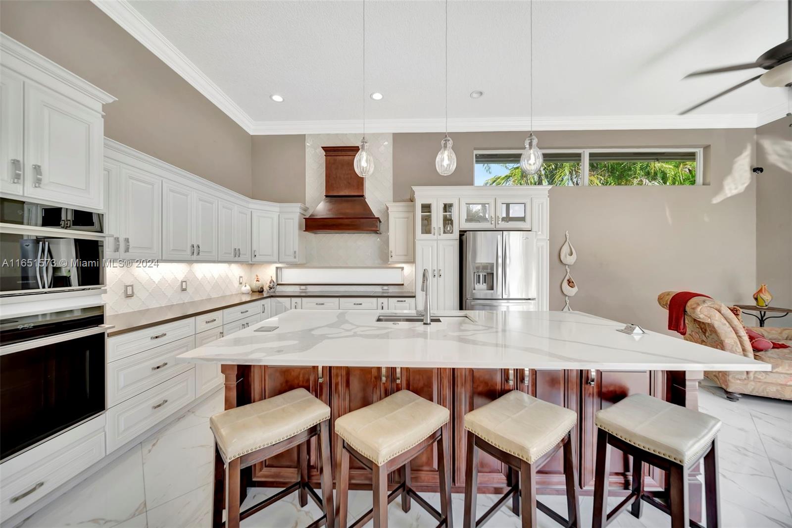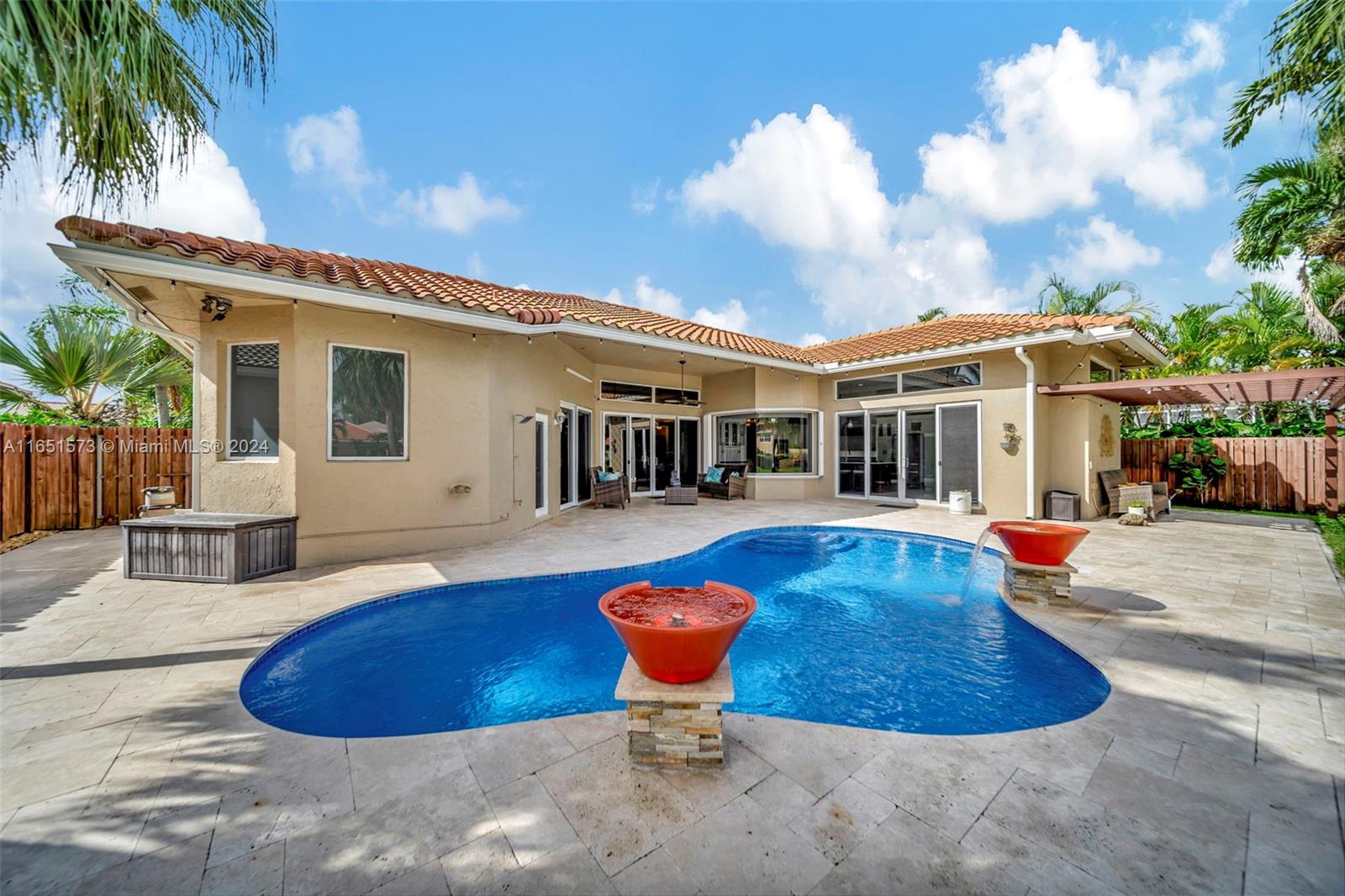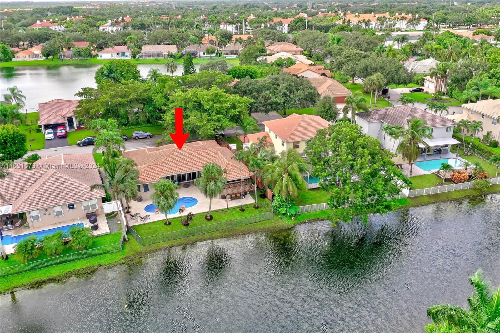 This stunning four-bedroom, two-and-a-half-bath single-family home offers breathtaking views of a serene lake, complemented by a luxurious pool surrounded by elegant travertine pavers. The interior is bathed in natural light, highlighting the elegant bamboo wood & porcelain tile flooring throughout. The chef's dream kitchen is a masterpiece, featuring high-end Thomasville cabinets, sleek quartz countertops, and monogram SS appliances. Every corner of the home showcases thoughtful upgrades such as hurricane impact windows/doors,stacked natural stone wall, new lighting, crown molding adding to its luxurious appeal. With the added benefit of an assumable mortgage at 1.99% and low HOA, this property truly has it all and much more! For a private showing, call TODAY!