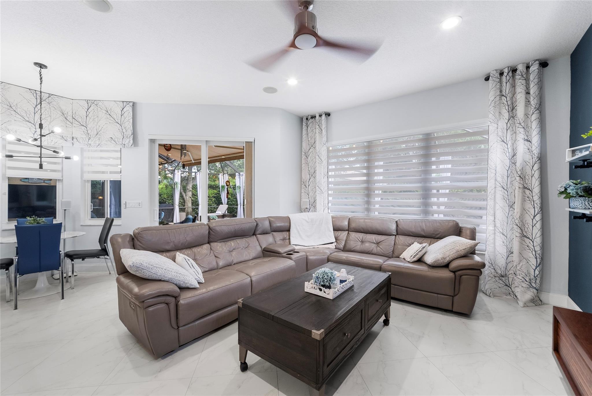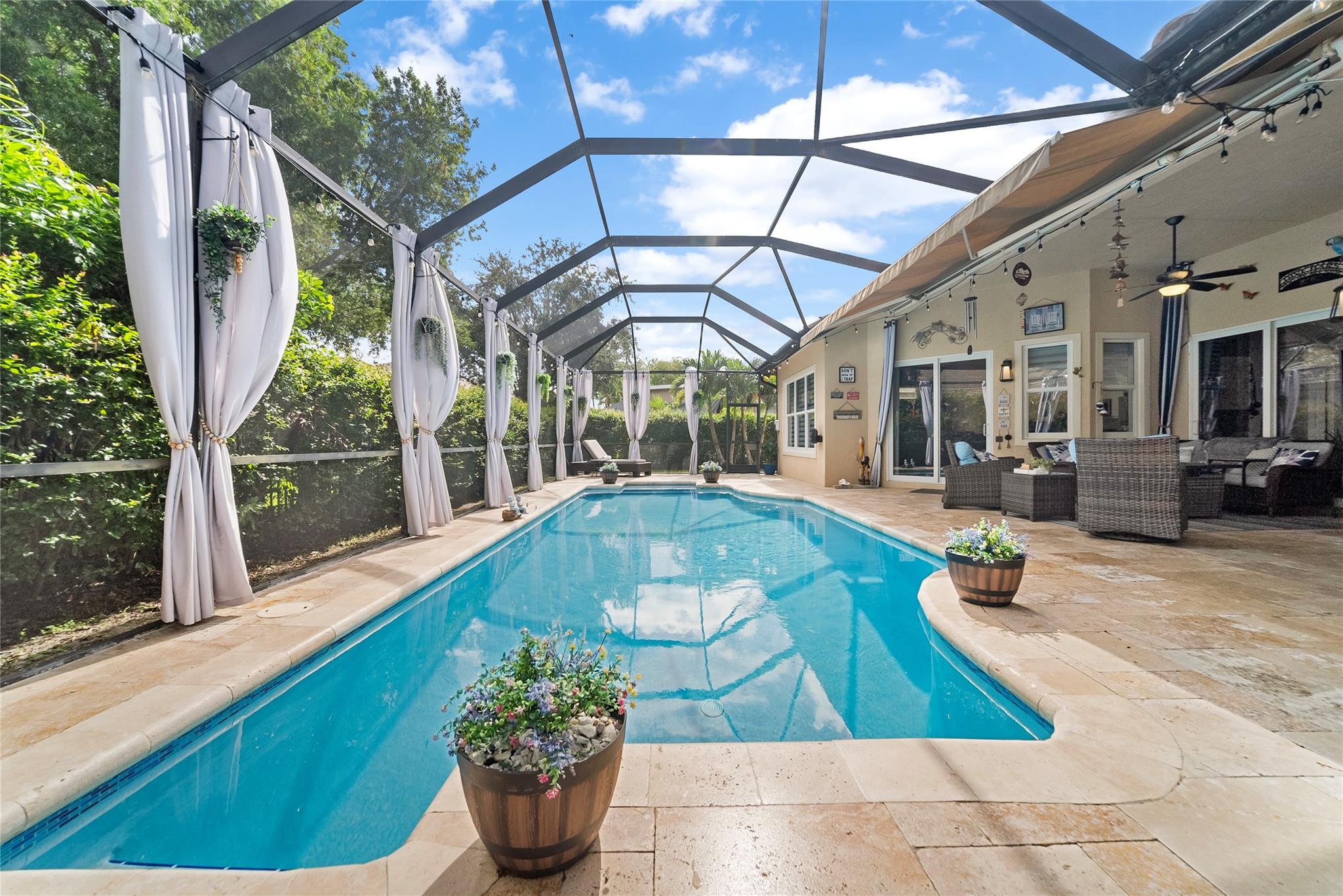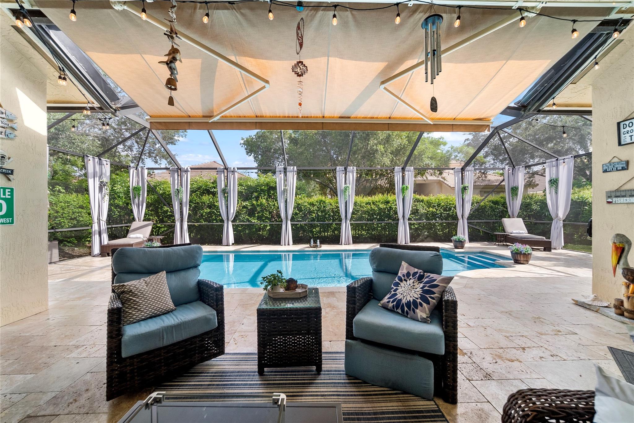 OVER $290K In Recent Updates! Truly Turnkey 4 Beds, 3 Baths Pool Home w/New Roof & Impact Windows & Doors! All Baths Updated w/Custom Finishes, 24X24 Oversized Porcelain Tile On A Diagonal, Laminate Floors In All Beds, Updated Screened-In Patio w/Tumbled Travertine Pool Deck & Coping, Sunsetter Motorized Retractable Awning, Saltwater System For Pool, Newer 2022 5 Ton TRANE A/C Unit, Primary Bath w/Custom Mosaic Glass Tile, 2022 Roof, Popular Split Floor Plan, Jack & Jill Beds & Bath, Tropical Oasis In Your Back Patio Area Perfect For Entertaining, Very Low HOA Dues Includes Comcast High-Speed Internet, Cable, & ADT Alarm, Resort Style Clubhouse Amenities: Pool, Spa, Fitness Center, Tennis, & More, All 3 A+ Schools Boarders Community, 24-Hour Guard Gate, & Close To Major Highways & Dining.