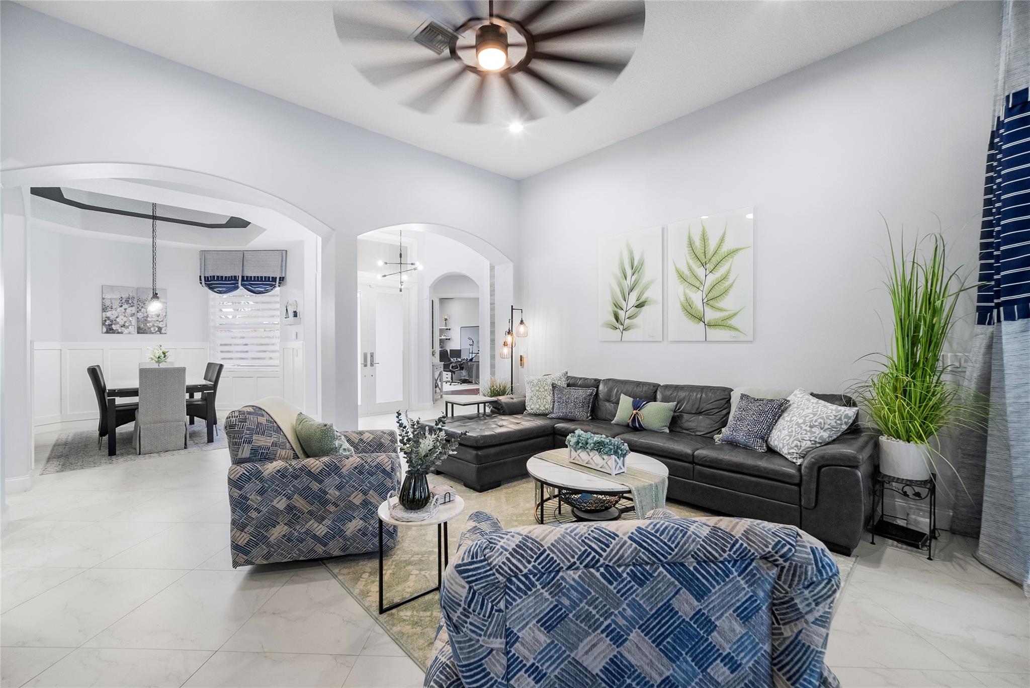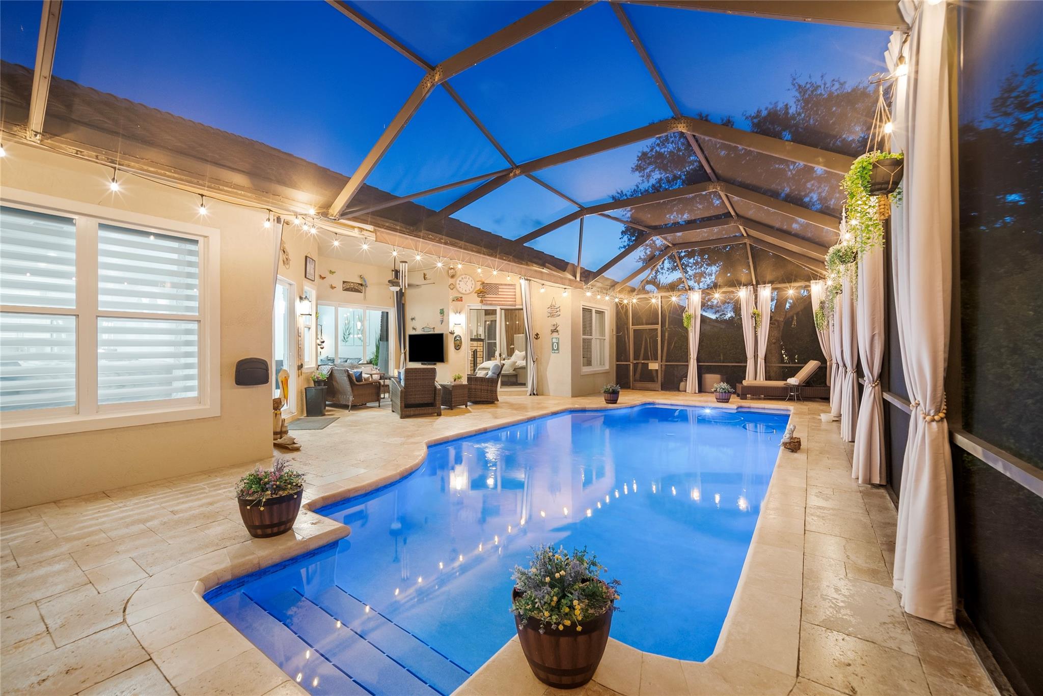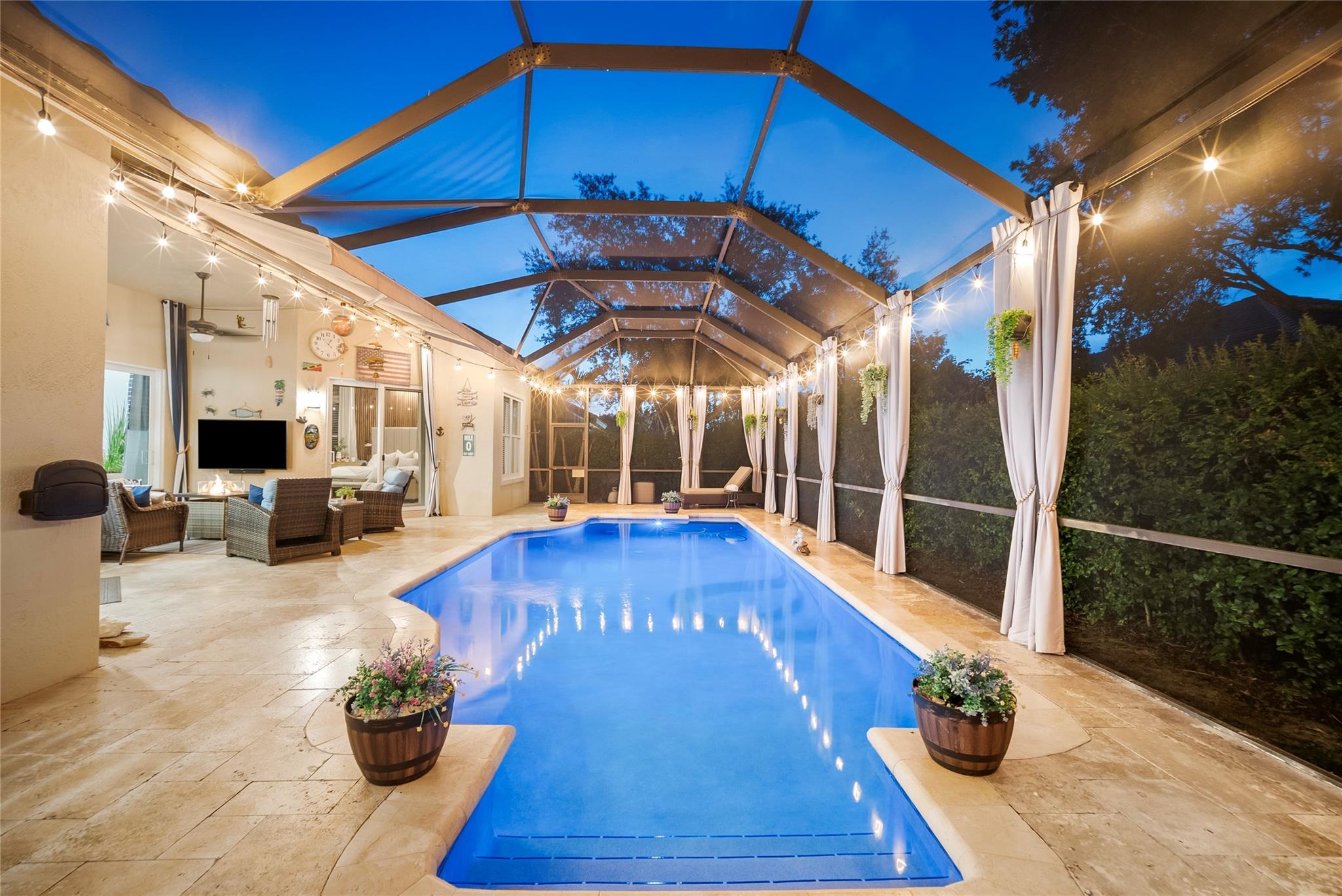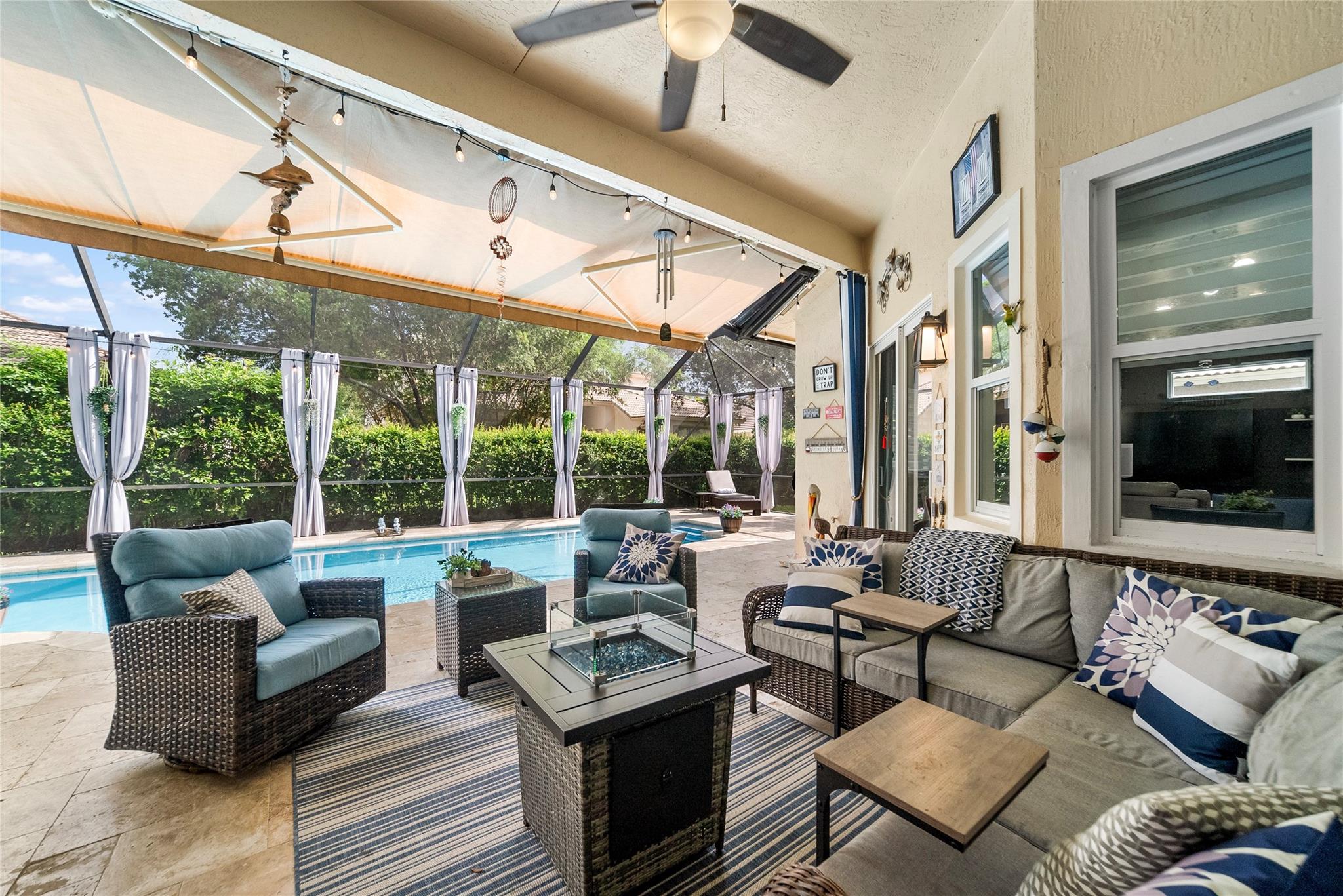 OVER $290K In Recent Updates! Truly Turnkey 4 Beds, 3 Baths Pool Home w/New Roof & Impact Windows & Doors! All Baths Updated w/Custom Finishes, 24X24 Oversized Porcelain Tile On A Diagonal, Laminate Floors In All Beds, Updated Screened-In Patio w/Tumbled Travertine Pool Deck & Coping, Sunsetter Motorized Retractable Awning, Saltwater System For Pool, Newer 2022 5 Ton TRANE A/C Unit, Primary Bath w/Custom Mosaic Glass Tile, 2022 Roof, Popular Split Floor Plan, Jack & Jill Beds & Bath, Tropical Oasis In Your Back Patio Area Perfect For Entertaining, Very Low HOA Dues Includes Comcast High-Speed Internet, Cable, & ADT Alarm, Resort Style Clubhouse Amenities: Pool, Spa, Fitness Center, Tennis, & More, All 3 A+ Schools Boarders Community, 24-Hour Guard Gate, & Close To Major Highways & Dining.