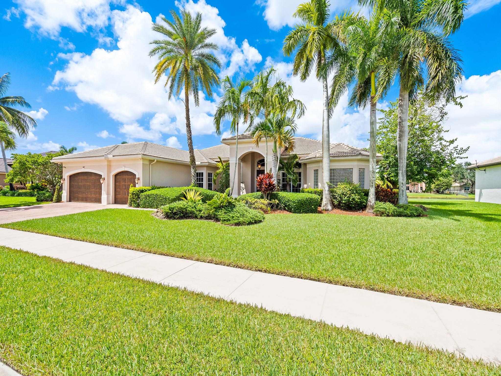 Welcome to Riverstone, the home you’ve been waiting for. Ideal for entertaining! Highly desirable one-story home on the canal offers ideal indoor-outdoor living. 4 Bedrooms & 4 Bathrooms, plus an office. An open floor plan and kitchen that flows into the large family room, leading to the outdoor area & formal dining room. Spacious Primary Suite with ensuite bathroom and 2 walk-in closets. Triple split bedroom layout. Vaulted ceilings and screened patio. 3 car garage, located in a quiet gated community. Extensive landscaping and an expansive paved driveway. The home sits on a 28,399 sqft lot. The low-fee HOA community offers 24/7 security, Tennis & Pickleball & playground.