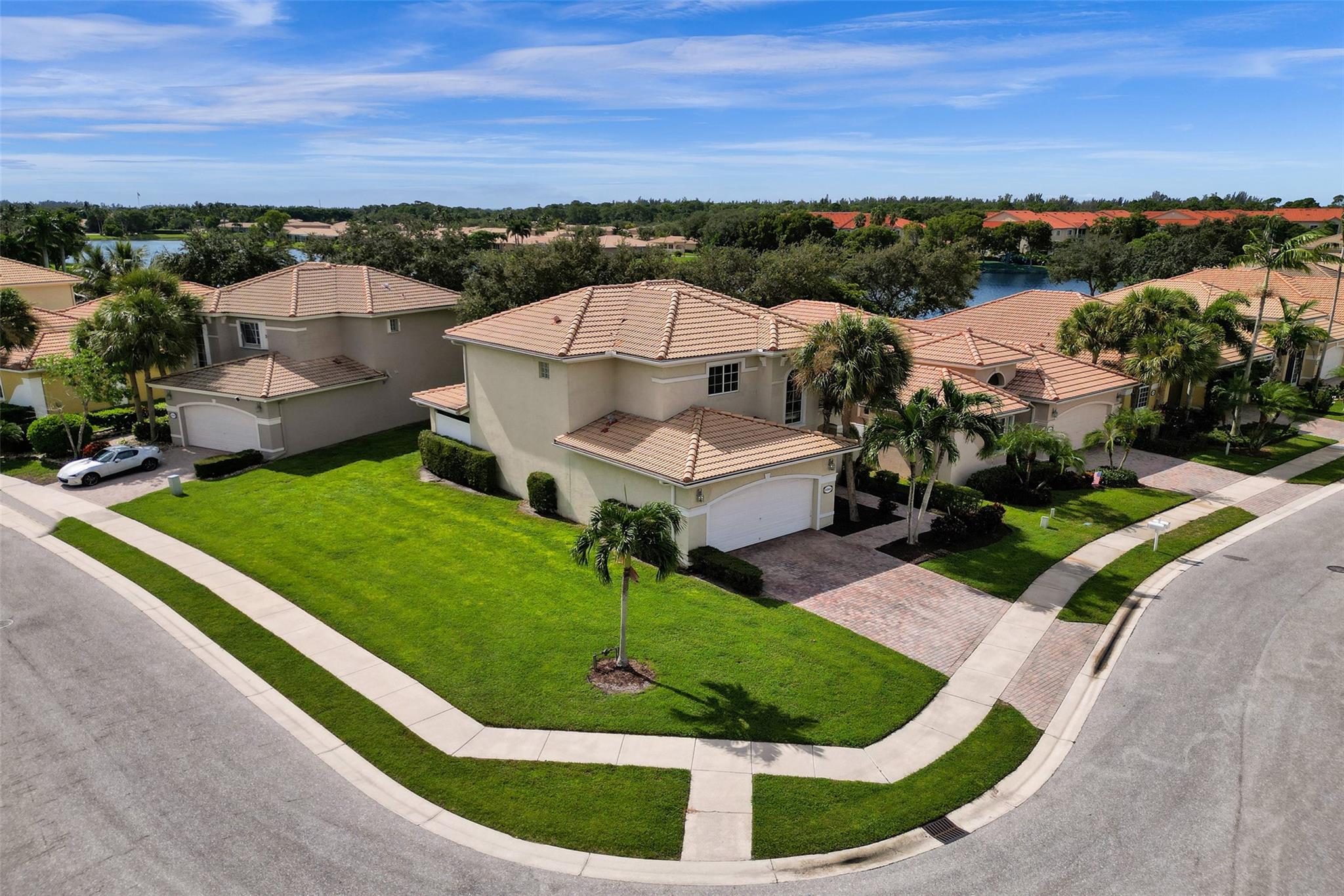 Beautiful wide corner lot with 3 Bedrooms and 2 1/2 Baths. Serene water views from family room and patio. Kitchen shows wood cabinetry with granite finishes with large breakfast bar. W/D 3yrs old, 2019 Appliances, Stairs and 2nd Floor shows newer laminate flooring in 2021. Master shower new in 2022. Huge Master suite. Andros Isle HOA shows beautiful Clubhouse, community pool, billiard room, banquet hall, fitness, pickle ball, tennis, shuffleboard, basketball, racquet ball, playground. Lawn care included with cable and internet, 24/7 security, alarm monitoring. Being sold as-is with right to inspect.