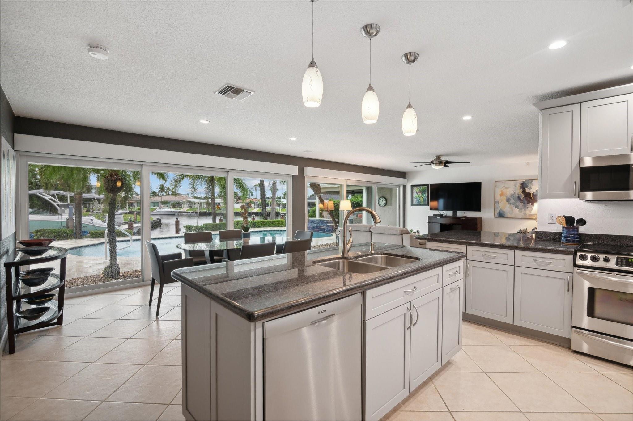 Enjoy the view and live your luxury lifestyle at 720 Southeast 6th Terrace, Pompano Beach, FL! This exquisite 3-bedroom, 3-bathroom home offers 2,241 square feet of beautifully designed living space overlooking intersecting canals! Enjoy ocean access from your private 78 ft dock with 14,000 lb boat lift, ideal for boating enthusiasts! The interior boasts a contemporary kitchen equipped with newer stainless appliances, a convenient home office & the primary suite is a peaceful retreat with ample closet space and en-suite bathroom. Additional features include an oversized 1 car garage with lots of add'l driveway parking. This waterfront gem offers the perfect blend of luxury and convenience. Make this stunning property your new waterfront retreat today!