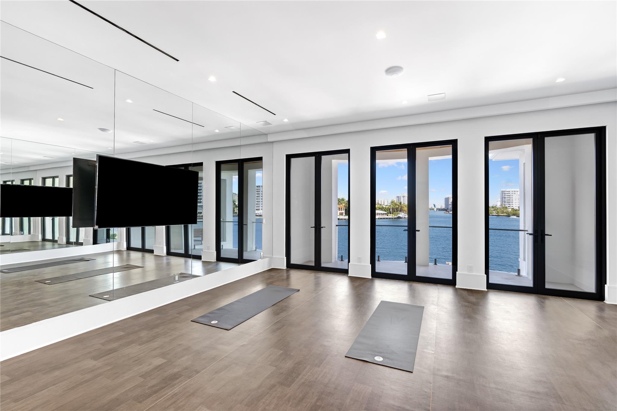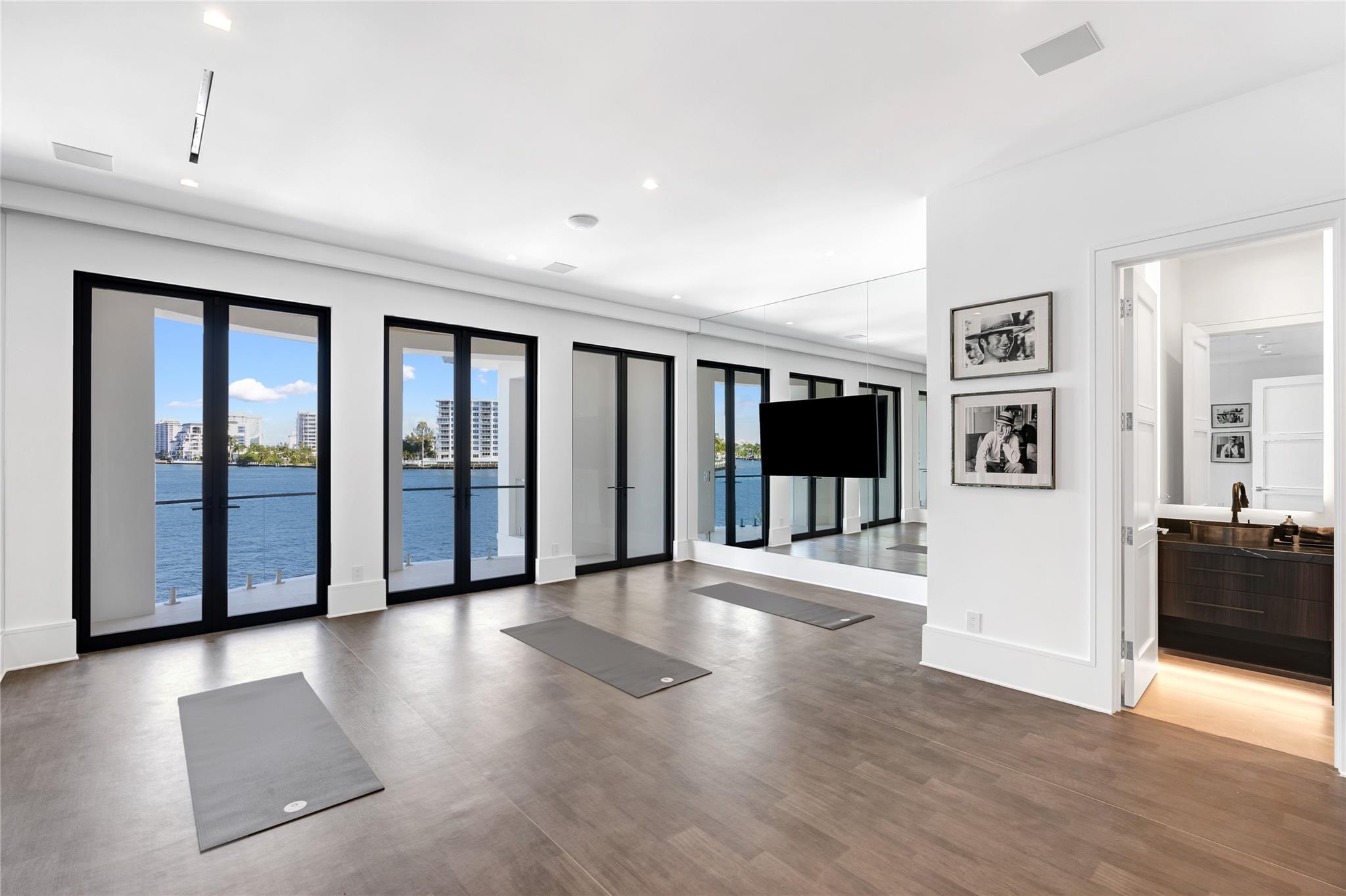 Completed in 2024 (major renovation), this luxury smart home in Seven Isles Las Olas offers wide views of 100 feet of prime waterfront. Featuring 8 beds, 7.2 baths (4 rooms currently designed as theater, gym, office with private balcony, and sitting room), state of the art gym with fitness flooring, and sitting room off the primary suite. Designed by Michael Gray, the interior boasts exotic woods, premium lighting, book-matched stones, and imported chandeliers. Custom staircase, elevator, and an authentic wine room with a marble vapor fireplace. Downsview Kitchen, full custom cabinetry, Wolf & Subzero appliance package. Expansive primary suite offers dual closets and baths. Outdoors, enjoy the large pool, spa, and summer kitchen, all with stunning views of Fort Lauderdale's Intracoastal.