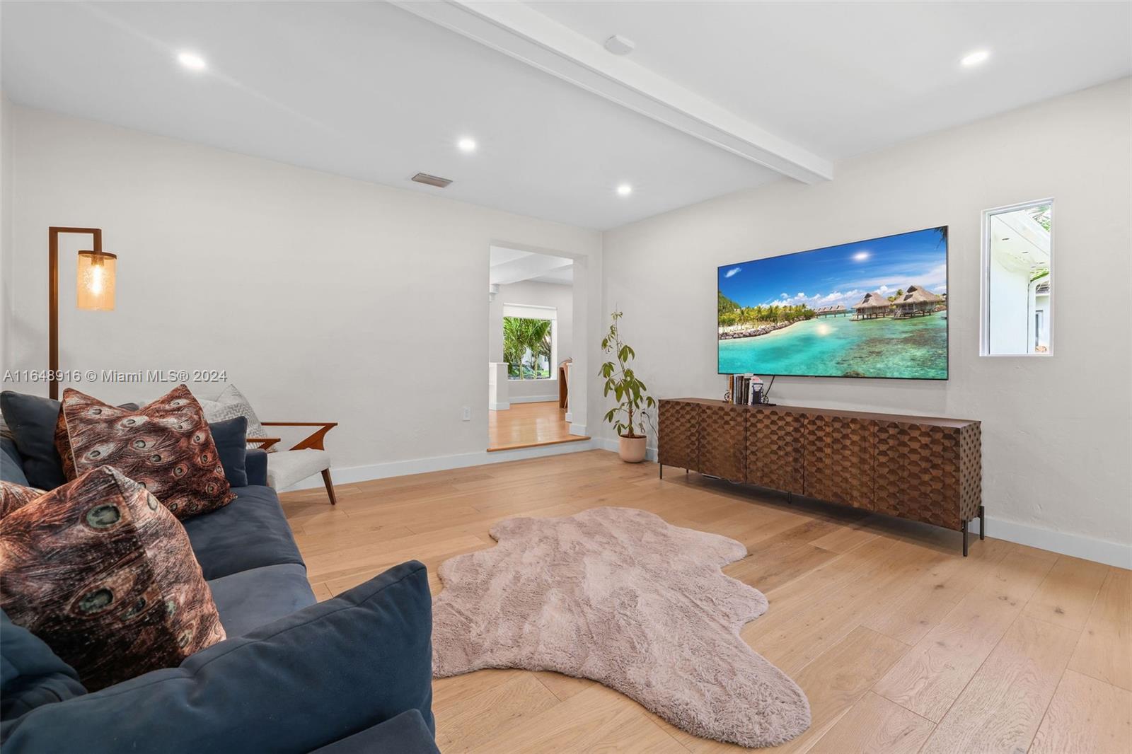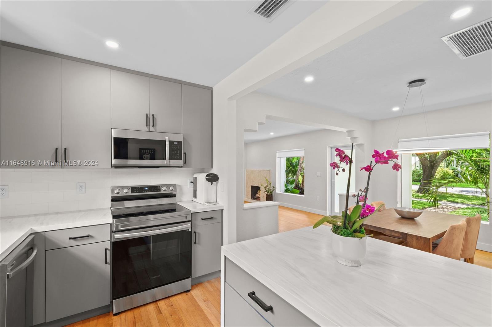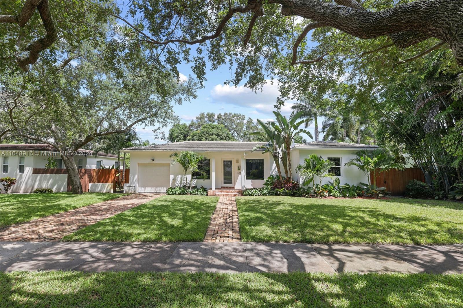 Welcome to Miami Shores and this peaceful, beautifully tree-lined street. Just move right in to this fully renovated and spacious 2 bedrooms / 1 bath home with multiple living spaces: family room, living room, sunroom, plus separate dining area! Wood floors throughout living areas, including fireplace in living room. Charming art deco features throughout the home. Huge back yard with lots of space to roam and play. One car garage. Close to shops and restaurants of Downtown Miami Shores, too. Easy access to I-95 and Biscayne Boulevard. The roof is approximately 2 years old.