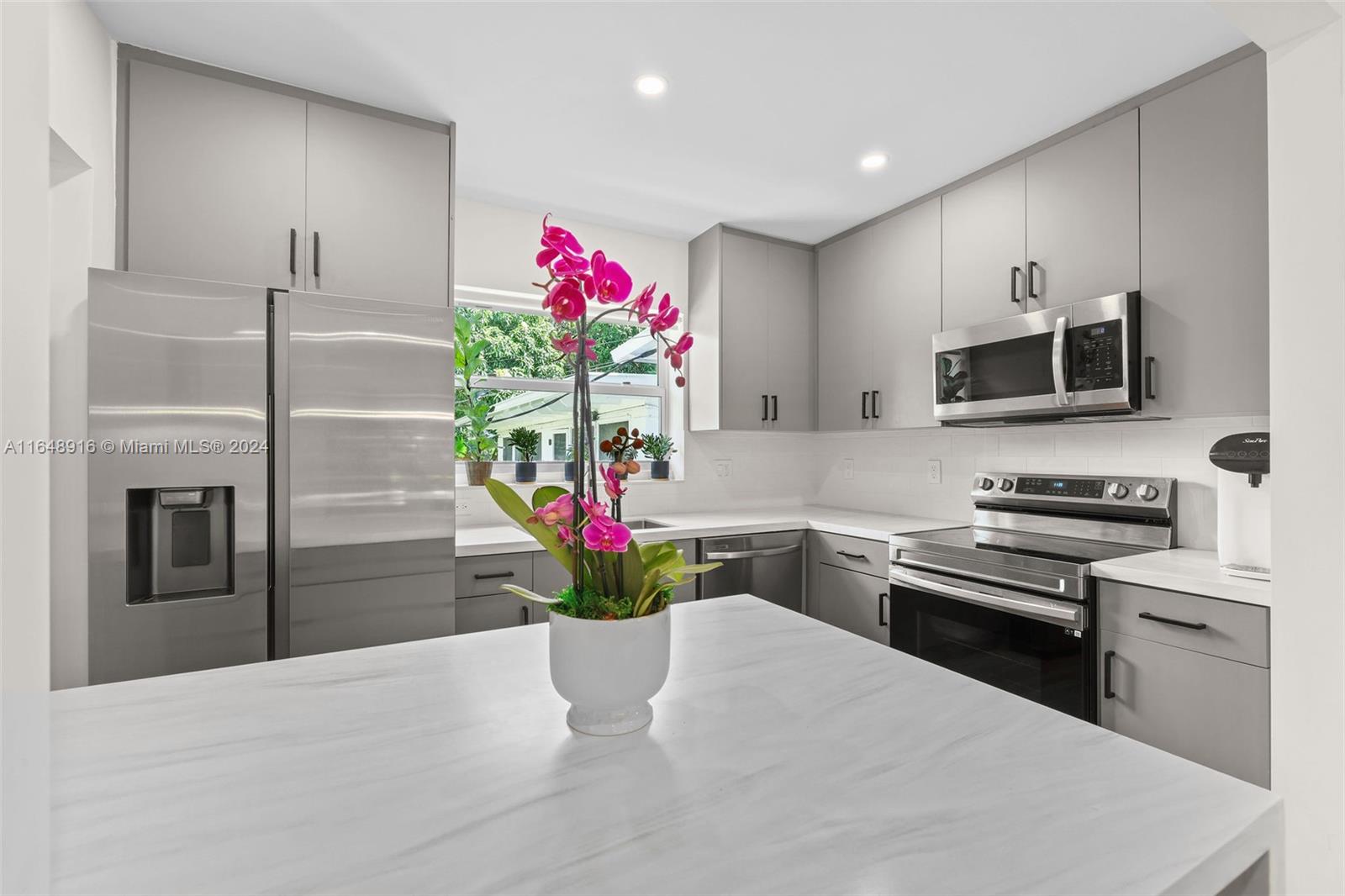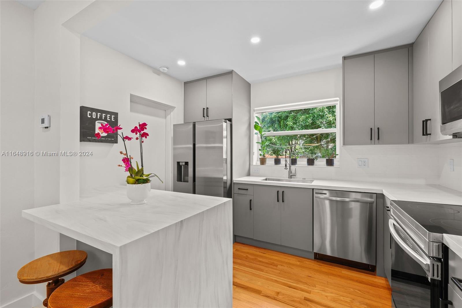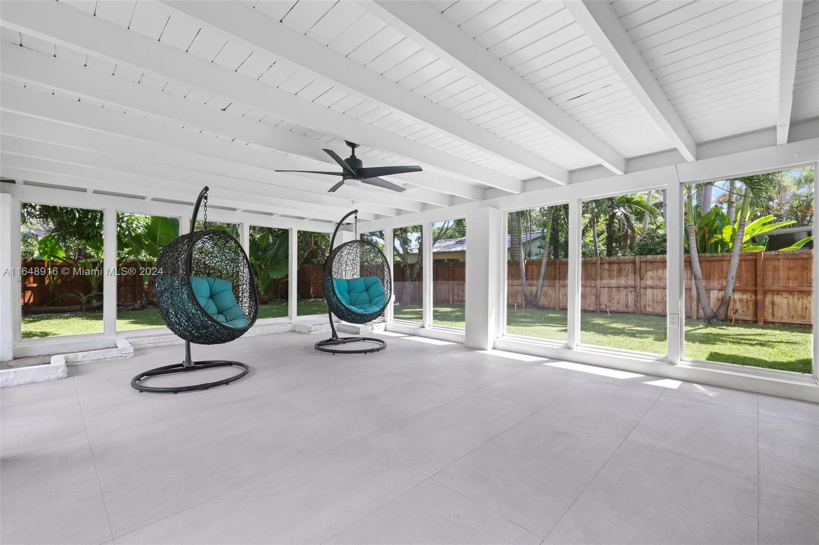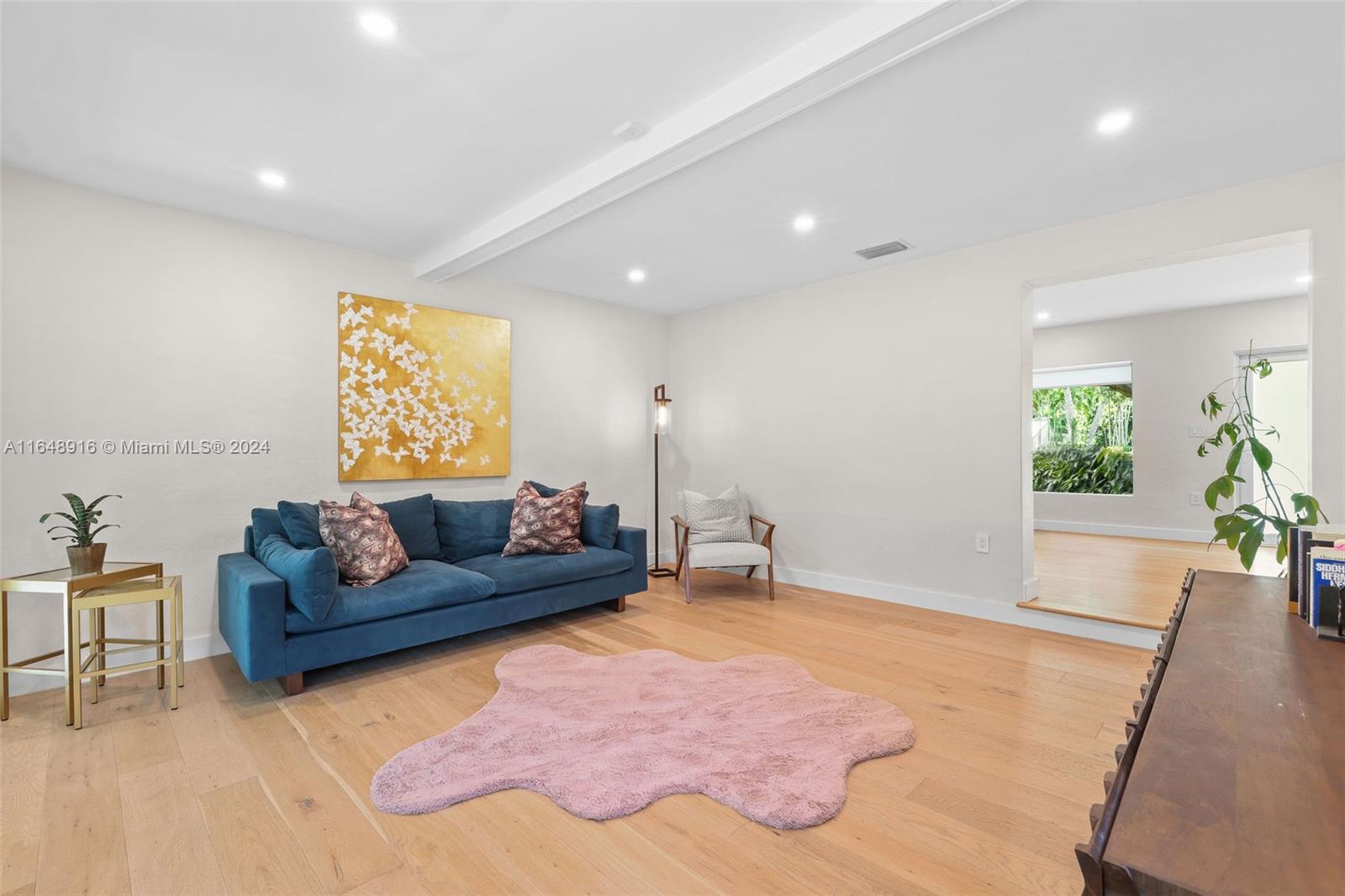 Welcome to Miami Shores and this peaceful, beautifully tree-lined street. Just move right in to this fully renovated and spacious 2 bedrooms / 1 bath home with multiple living spaces: family room, living room, sunroom, plus separate dining area! Wood floors throughout living areas, including fireplace in living room. Charming art deco features throughout the home. Huge back yard with lots of space to roam and play. One car garage. Close to shops and restaurants of Downtown Miami Shores, too. Easy access to I-95 and Biscayne Boulevard. The roof is approximately 2 years old.