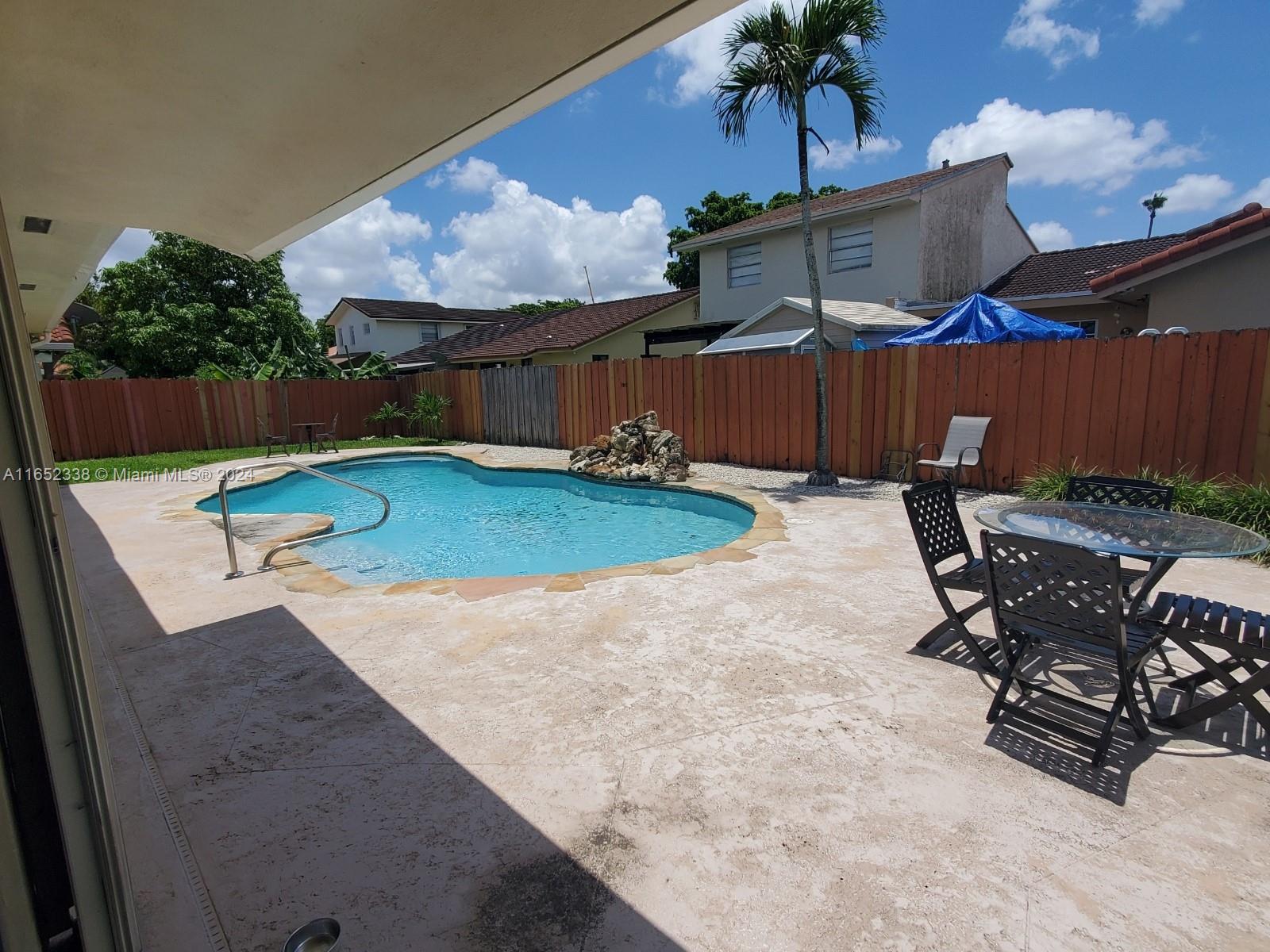 Fantastic Opportunity in highly sought after neighborhood close to FIU. This home has a great floorplan and has been well maintained. With 4 bedrooms and 3 bathrooms, there is plenty of room for everyone. Features include high vaulted ceilings, large spaces, tile floor in main areas, conversation pit, laundry room, family room with wet bar and more.