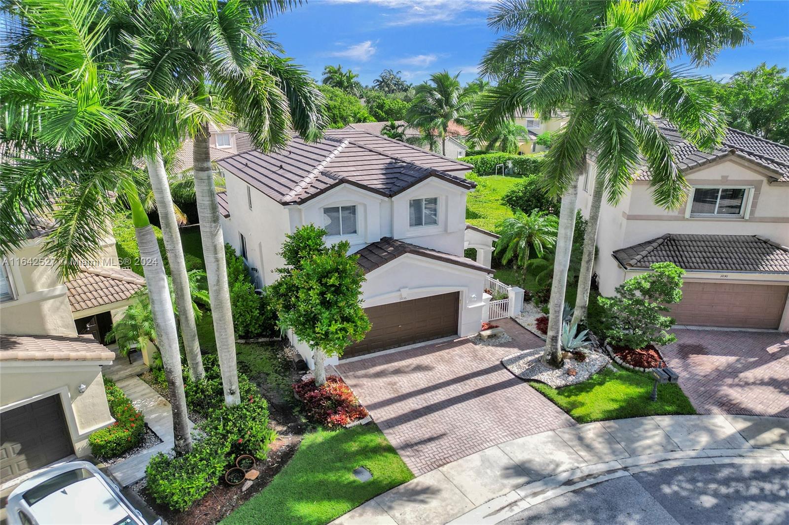Experience luxury living in the prestigious gated community of Savanna, Weston. Nestled in a serene cul-de-sac, this remodeled home offers a NEW ROOF (2024) and freshly painted exterior (2024). An expansive private yard with a vast paver patio, pergola for seamless outdoor living, and a 5-ton outside/inside AC unit (2020). Step inside to find ceramic floors, LED lighting, and a stylish half-bath. The modern kitchen features white cabinetry, Aragonite stone countertops, high-end appliances, and a coffee area with a wine refrigerator. Upstairs, the master suite awaits with an oversized primary bath + 3 additional bedrooms with a beautifully renovated secondary bath. AT&T Fiber Optic High-Speed Internet ready! The community offers many amenities and A+ schools nearby.