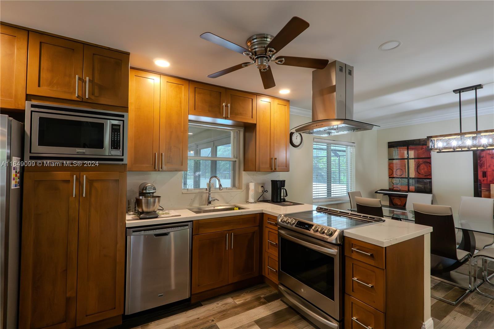Wonderful, spacious, and open concept home with 4 bedrooms, 3 full bathrooms, and a split bedroom floor plan. Spacious master bedroom overlooking the pool area. Newer kitchen cabinets and quartz countertops. This home is perfect for entertaining with a screened pool deck connected to an indoor bar area and a full bathroom. The 1+ acre property is completely fenced, and has a newly installed riding arena and enough space for boats, RV's, and trailers. It also has a gas generator that offers peace of mind of having electricity on the entire property in case of any power outage. Embrace the wonderful experience of living the equestrian lifestyle and the opportunity to enjoy the nature of Southwest Ranches.