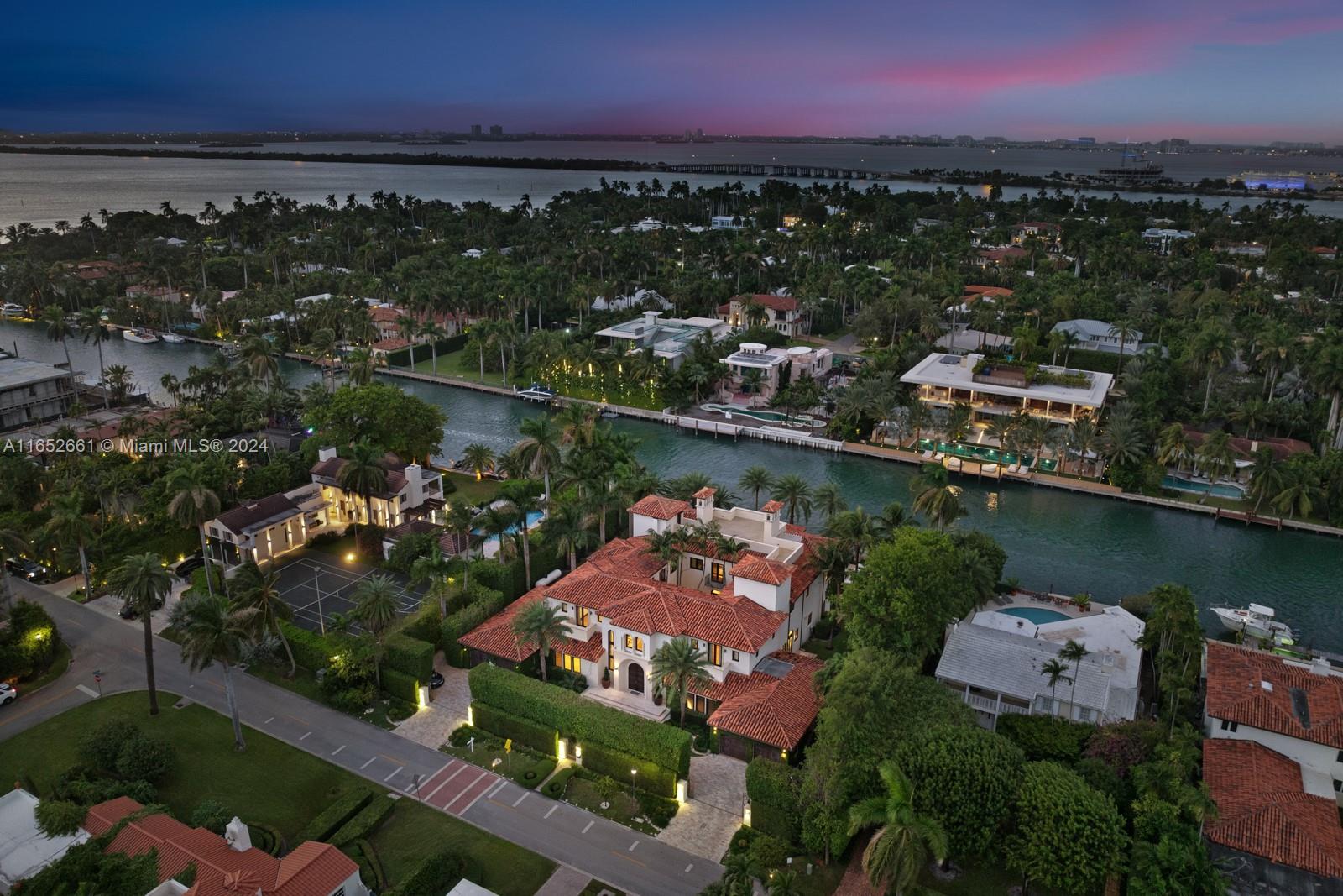 Discover the epitome of luxury living on coveted Sunset Island III with this extraordinary waterfront estate. Nestled on a sprawling 27,300-sf lot, this property boasts 156 feet of water frontage and direct Biscayne Bay access, perfect for yacht enthusiasts. This 7-bedroom, 9-bath masterpiece spans 11,790 sf featuring an impressive foyer with imperial staircase opening to a beautiful courtyard, expansive living areas, a gourmet chef's kitchen, and a home theater. The master suite offers two lavish baths and boutique-style walk-in closets. Outside, a resort-style oasis awaits with a heated pool, spa, summer kitchen, and rooftop terrace, ideal for entertaining. With a private dock, elevator, and lush landscaping, this estate is tailored for the most sophisticated and discerning buyers