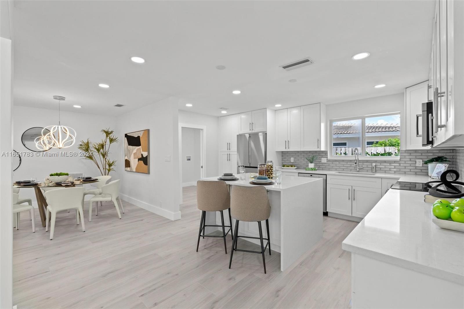 This stunningly renovated 3/3 water-front pool home, situated on a cul-de-sac in The Landings, a quaint and picturesque upscale Fort Lauderdale community, is perfect for entertaining indoors and outdoors, with sprawling open spaces, open kitchen, stunning back yard designed with the entertainer in mind and trees and shrubbery providing shade & a semi-private experience. This is your opportunity to own your own piece of Florida luxury; with 60ft of water frontage and a re-built dock ready for your boat, this completely remodeled home offers brand-new impact windows, a brand-new roof and HVAC, and brand-new high-end Bosch appliances. All just a few minutes away from the beach.