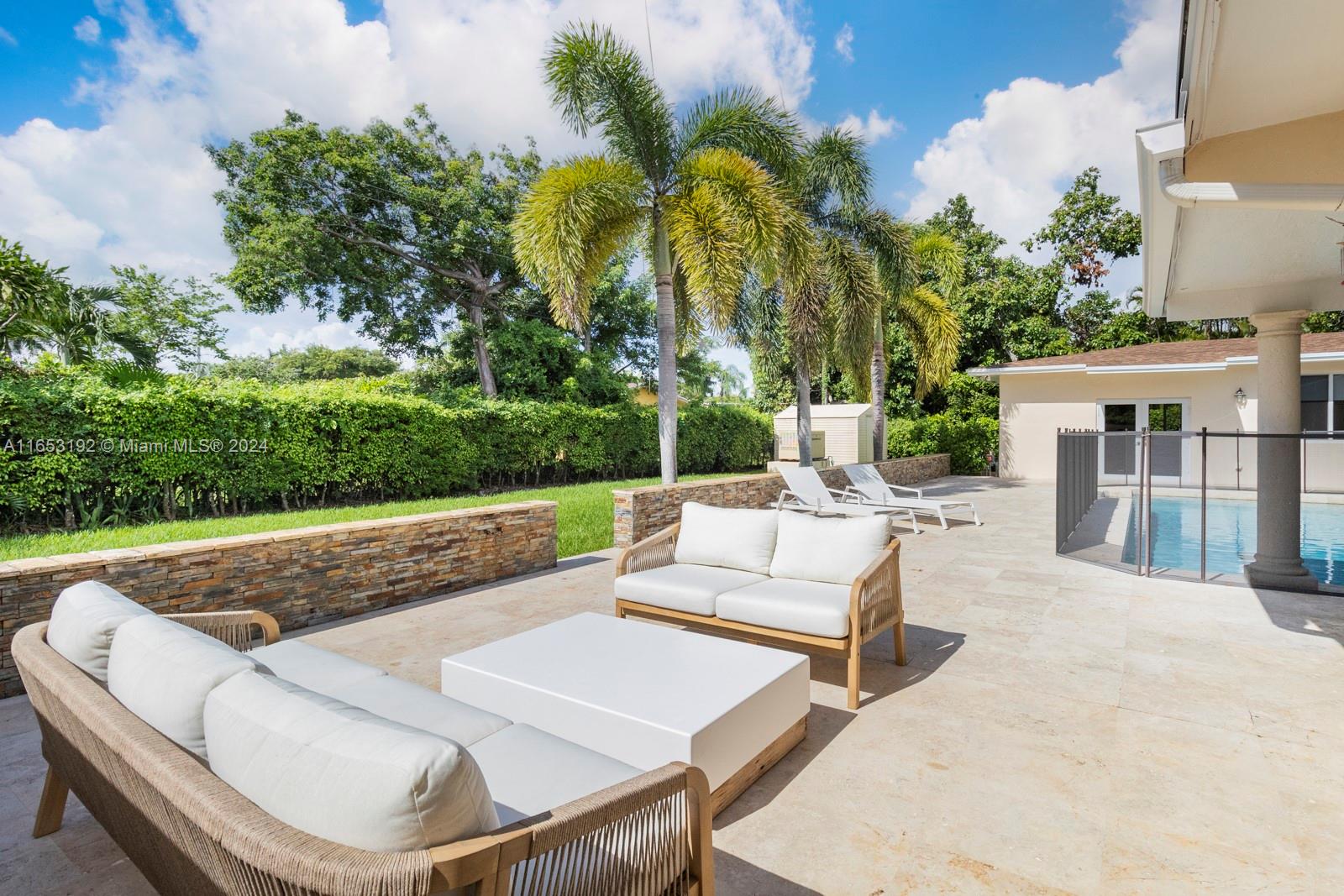 Beautifully updated central Pinecrest 4/4 family home on a nice quiet street! Tons of recent upgrades including: 2018 roof still under warranty, impact glass windows and impact French doors throughout, 2021-2022 full bedroom and bathroom modern remodel, newer plantation shutters and motorized shades, newer dishwasher, microwave, washer/dryer, and more!. Marble, wood, and porcelain floors throughout. Ideal split floor plan with big living spaces, and a huge primary suite featuring dual closets, an office, and the new luxurious state-of-the-art primary bathroom. Nice and relaxing pool-patio (facing south) with plenty of entertaining patio space along with plenty of grass and privacy to run around as well. Walk to Palmetto Elementary/Middle/Senior High.