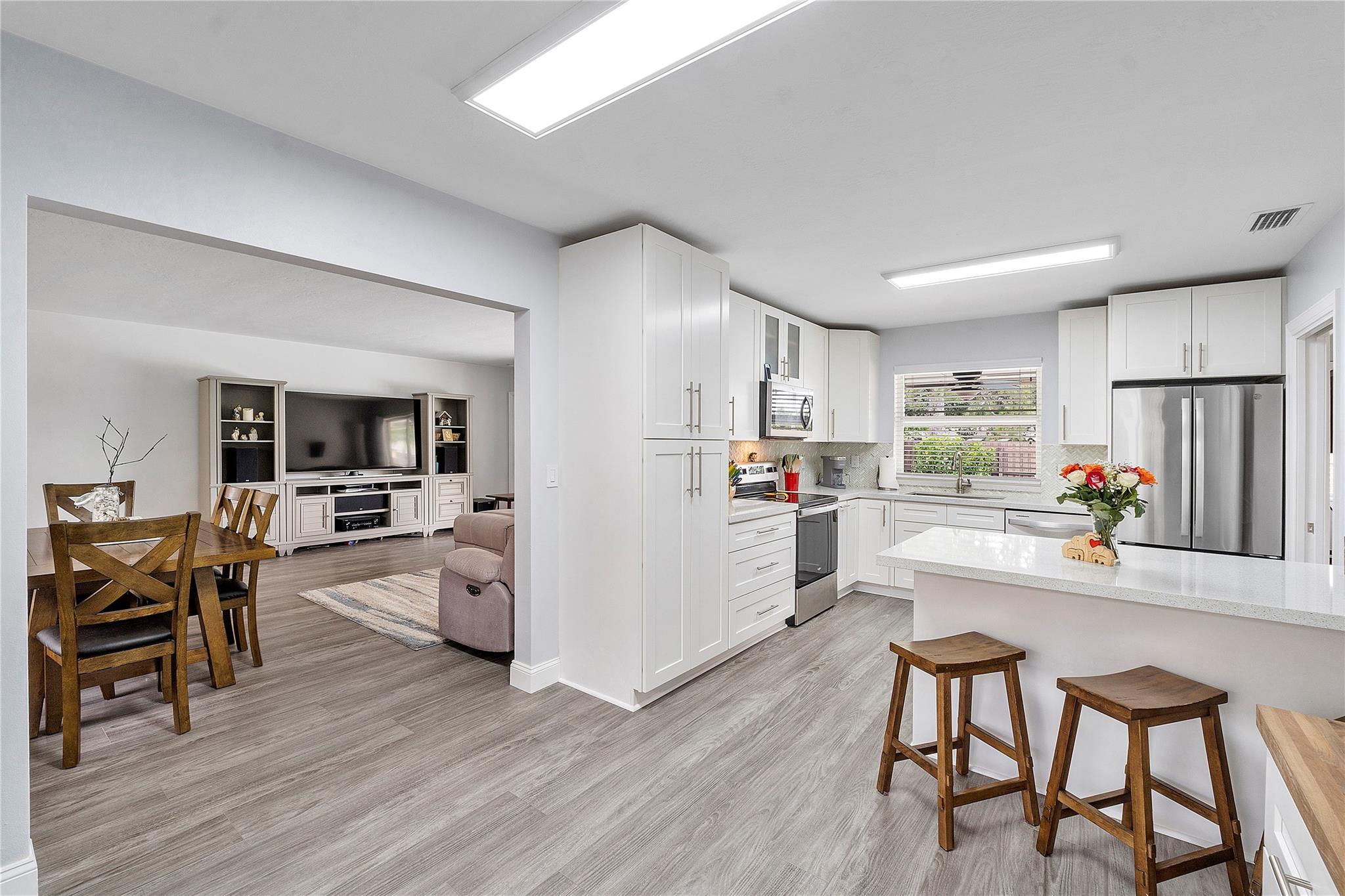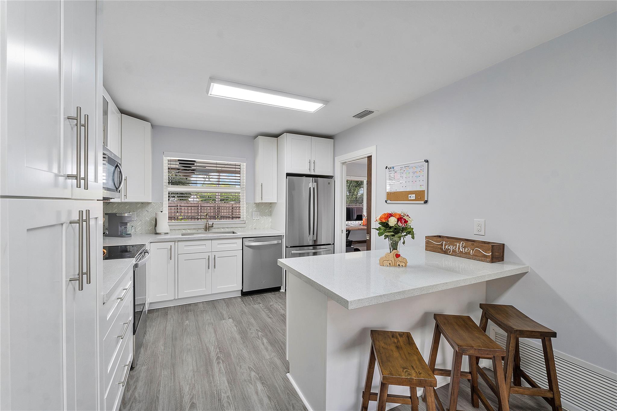 Welcome home. This 3-bed, 2-bath home located on a large oversize corner lot. Dive into your stunning saltwater pool or entertain in your large backyard—perfect for BBQs, a playground, and outdoor fun. The yard also features a sprinkler system and a shed for extra storage. Inside, you'll find a custom kitchen with stainless steel appliances, quartz counter tops and plenty of cabinet space. The roof is 2 years new. The Florida room offers versatility as a den, office, or extra bedroom. New flooring throughout and a spacious primary bedroom with a walk-in closet.