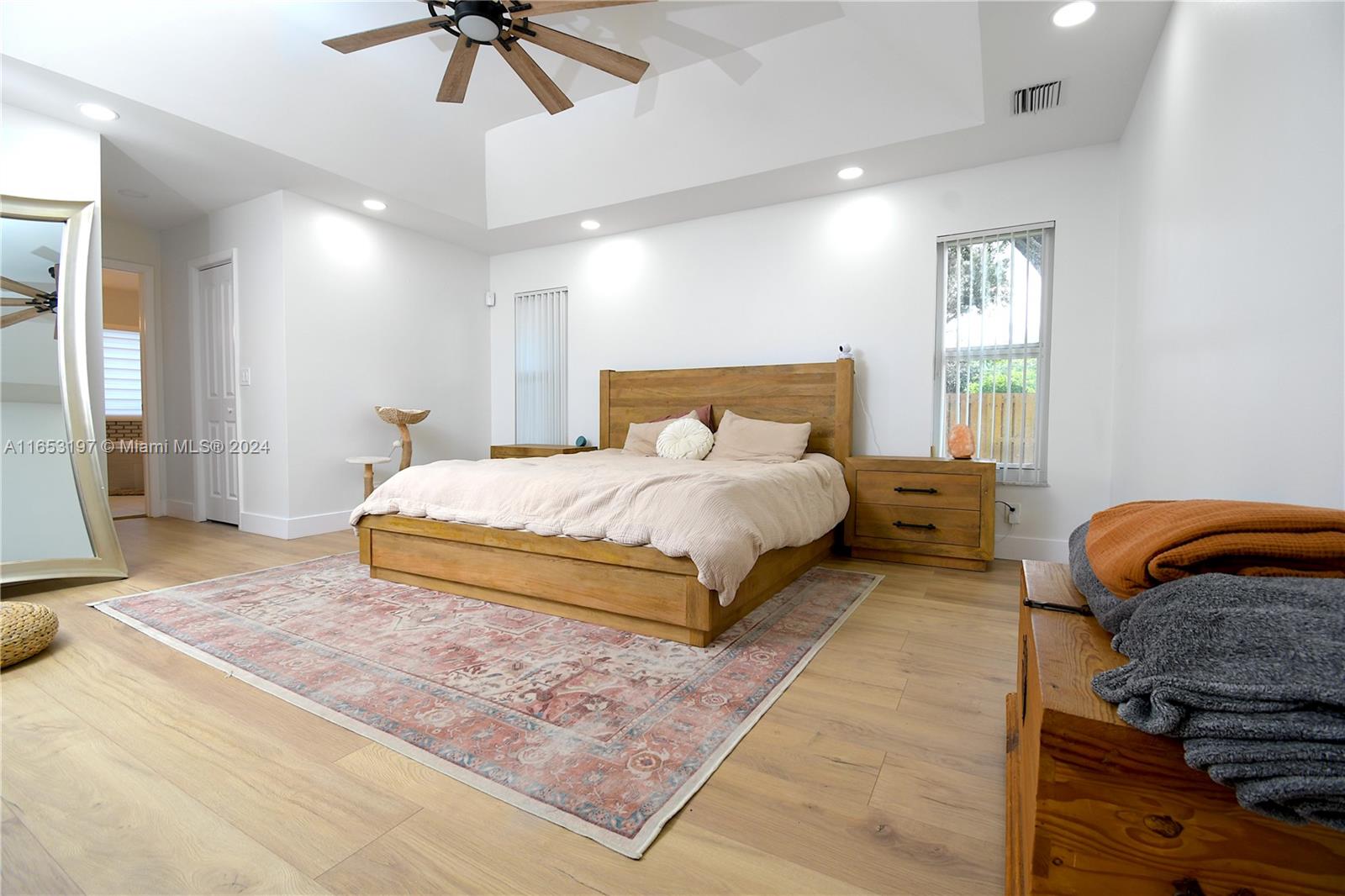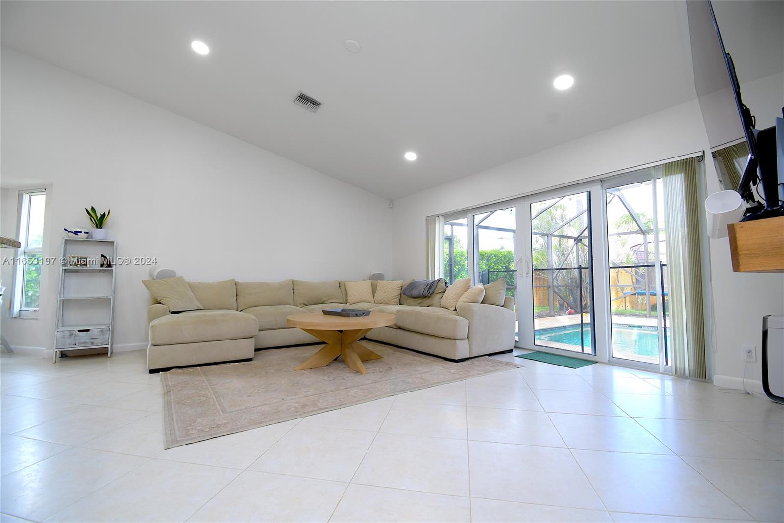 Stunning home situated on a spacious 1/3-acre corner lot on a picturesque street lined with mature oak trees. It boasts exceptional curb appeal with an expansive front lawn, manicured landscaping, a circular driveway, and an elegant double-glass door entry. Enjoy direct views of the beautiful pool area. The interior features volume ceilings, impact glass windows and doors, and recently installed vinyl flooring. Ideal for indoor/outdoor living and entertaining. The large kitchen and family room offer new stainless steel appliances, granite countertops, a pantry, and a bright breakfast area. The exterior features a large screened porch with a solar-heated pool, a renovated primary bathroom, impact windows and doors, a Leaf Filter gutter system, and a newly installed perimeter fence.
