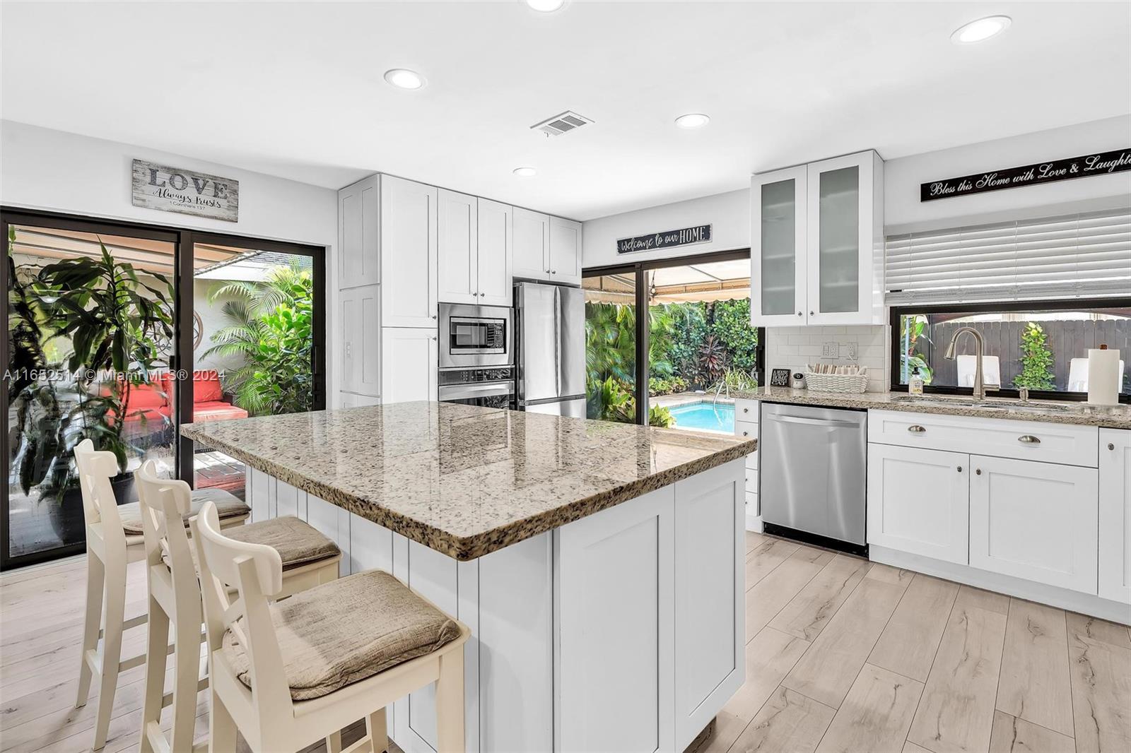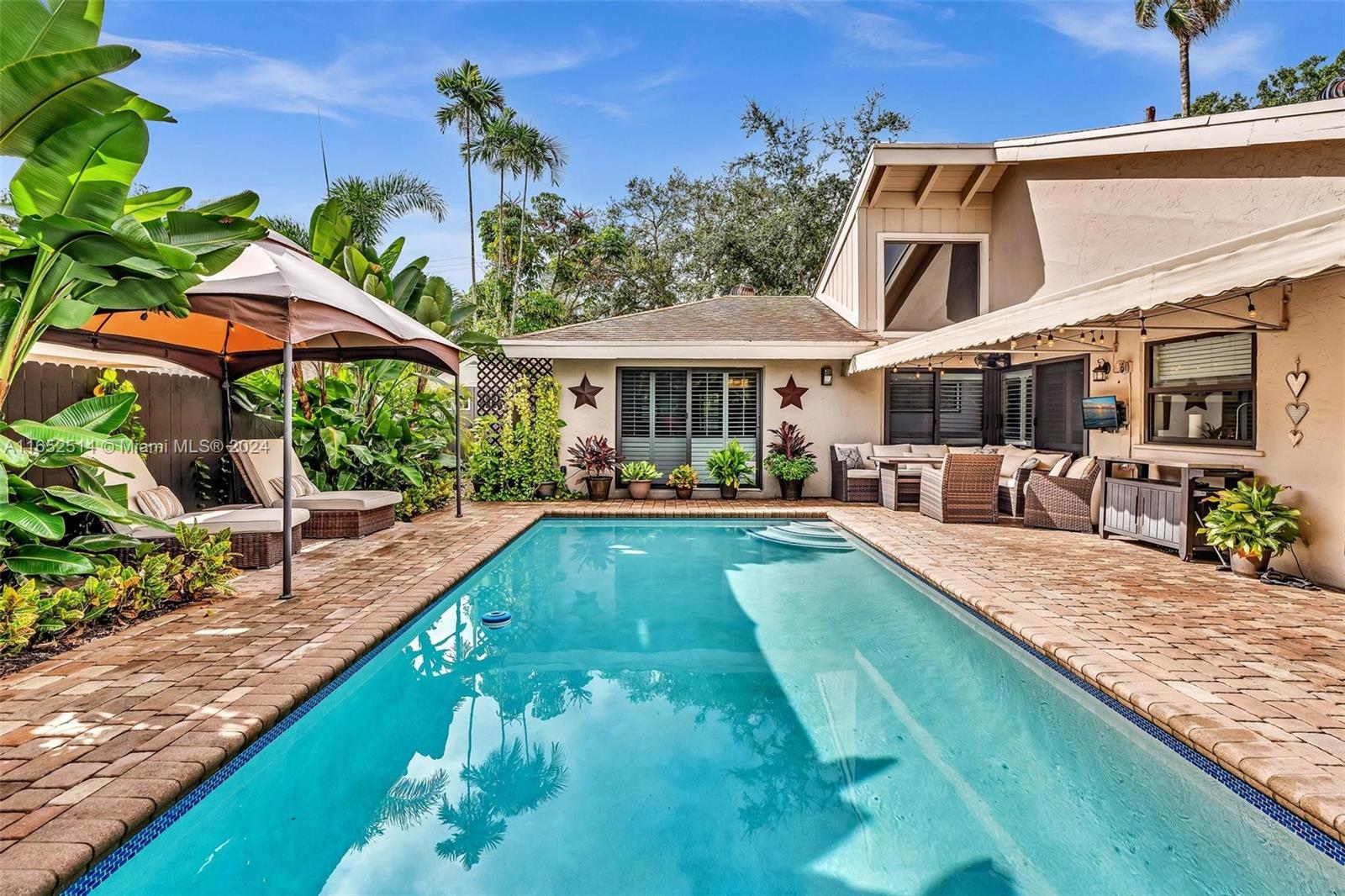 Welcome Home! This beautifully designed property has been fully remodeled, featuring state-of-the-art flooring, high-end appliances, a Mediterranean-style kitchen, and a stunning pool area surrounded by lush landscaping. All you need to do is bring your suitcase and unwind—you're home! Located in a gated community within walking distance to shops and places of worship. Association fee includes, insurance, roof, cable and Internet. New impact windows, new AC, New water heather