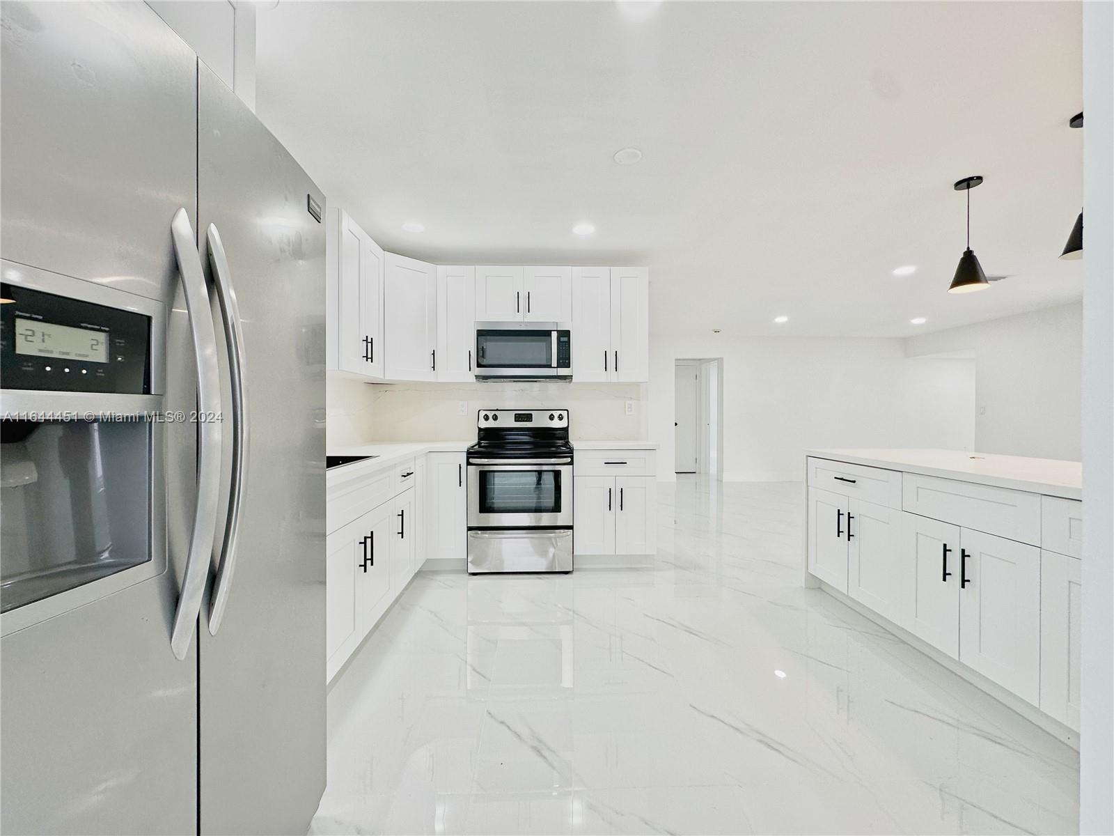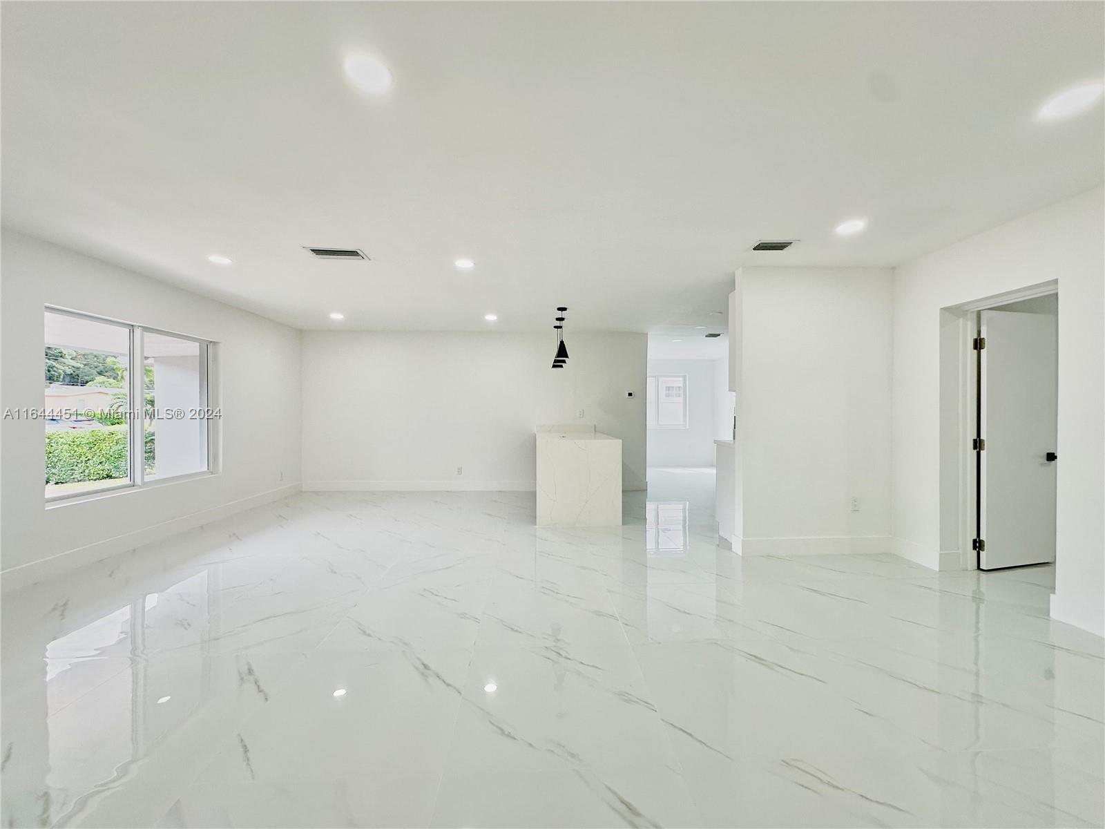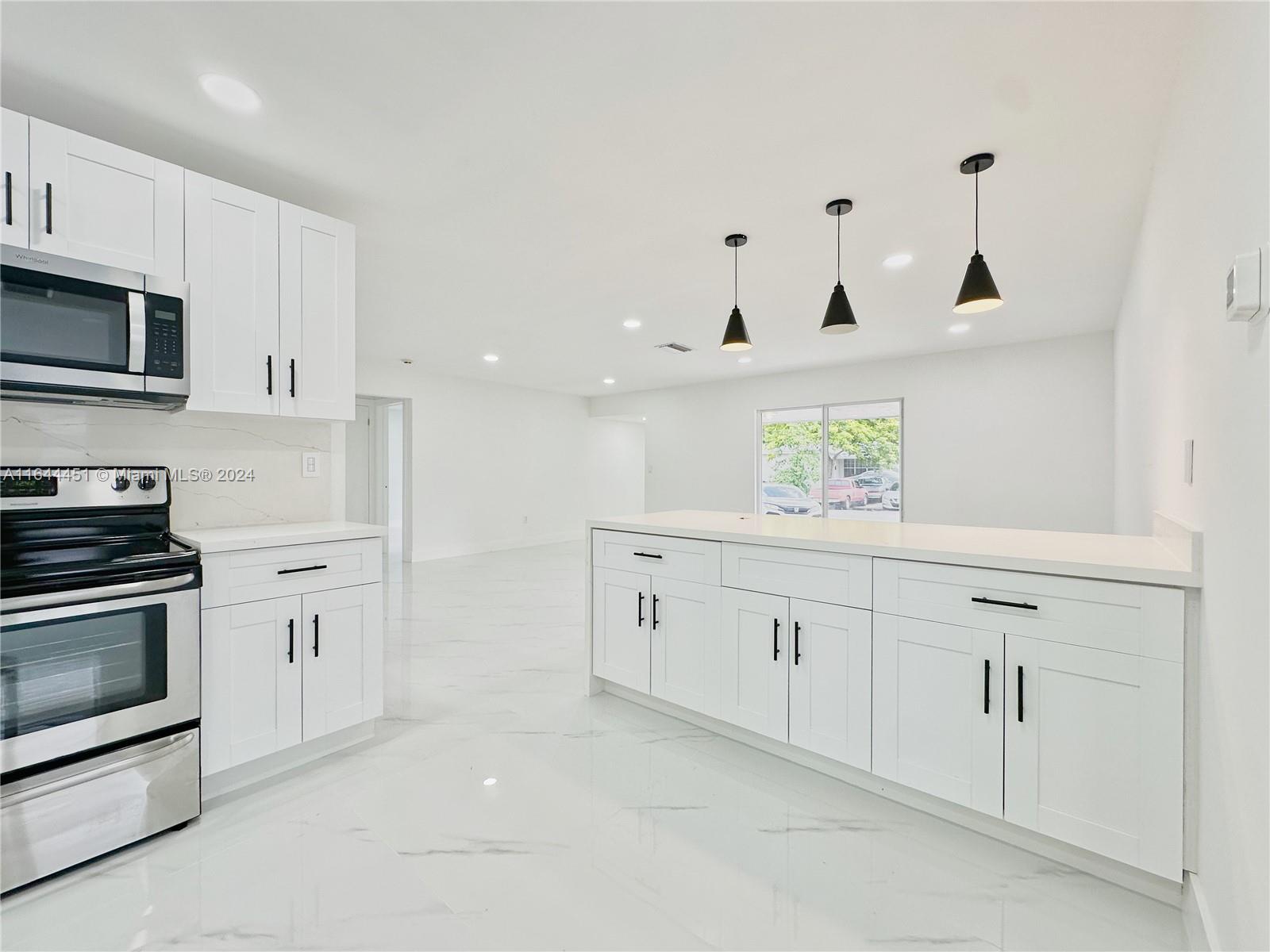 TOTALLY REMODELED! Stunning Home 3 Beds 2Baths plus Den, Brand new kitchen cabinets and quarts countertop, bathrooms have been meticulously designed for modern living, the home features freshly painted interiors and exteriors. New Porcelain flooring throughout adds a touch of elegance. Driveway provides ample parking space. NEWLY INSTALLED COMPLETE ROOF and new partial impact windows, Step outside to the serene backyard, where you can relax under the shade of fruit trees. The paved terrace is perfect for outdoor entertaining, and the privacy fence ensures your peace and tranquility. Located close to parks, schools, shopping, and major roadways, this home offers convenience and comfort. Don’t miss out!