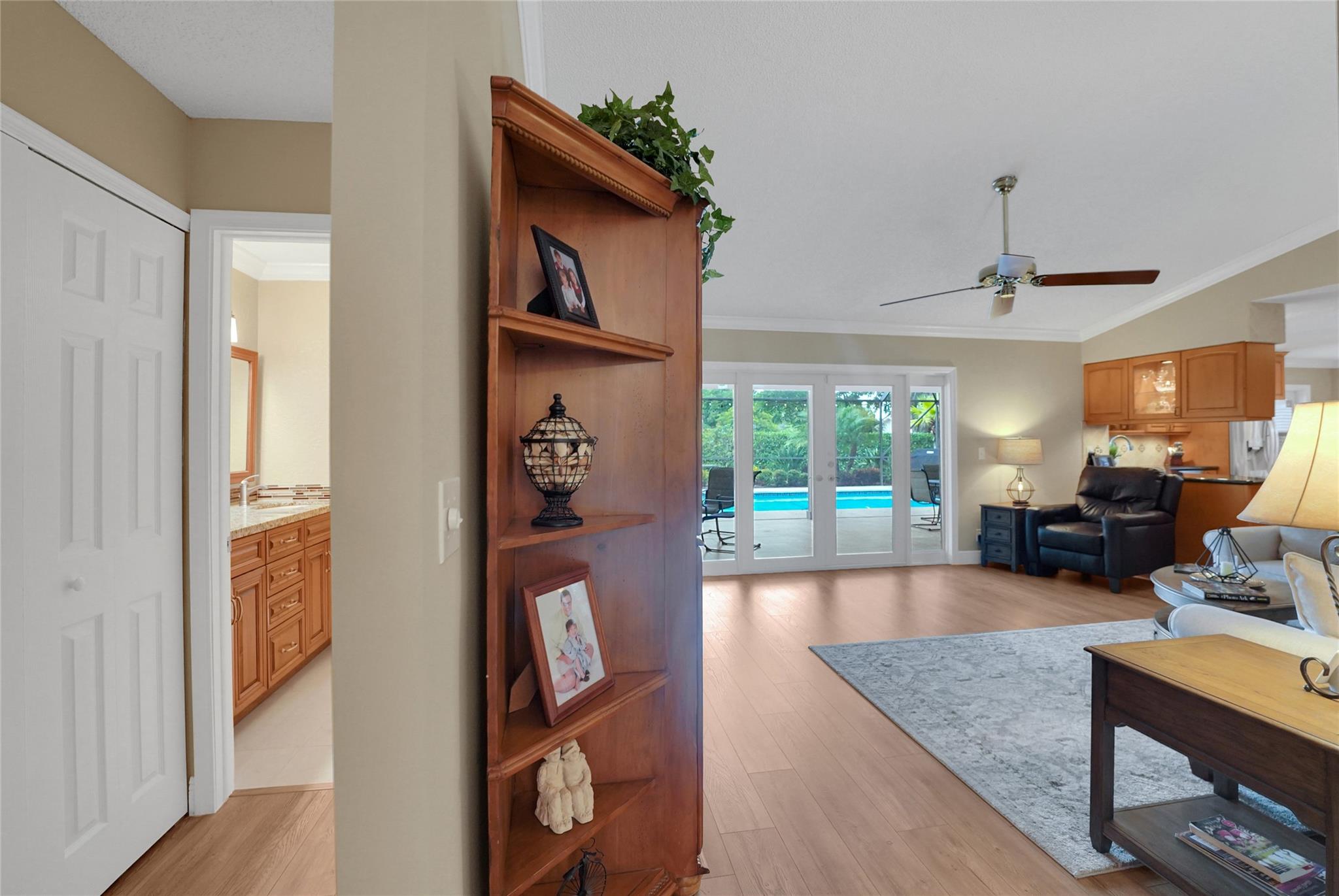 THIS HOME IS A BUYER'S DREAM! HOME IS LOCATED IN CORAL SPRINGS IN BEAUTIFUL PINE RIDGE NEIGHBORHOOD WITH VERY LOW HOA FEE. THE HOME HAS BEEN TOTALLY REHABBED ATTENTION GIVEN TO EVERY DETAIL. LOCATED ON A OVERSIZED CORNER LOT WITH ENHANCED MANICURED LANDSCAPING. HOME FEATURES NEW OVEN & MICROWAVE. LAMINATE FLOORING THROUGHOUT IS 2 YEARS OLD. IMPACT WINDOWS & DOORS. GRANITE COUNTERTOPS WITH ISLAND & RECESSED LIGHTING. SS KITCHEN APPLIANCES. BATHROOMS HAVE BEEN NEWLY RENOVATED. ENJOY OUTDOOR LIVING IN THE SCREENED POOL AND PATIO AREA COMPLETELY TILED WITH OUTDOOR WET BAR. CHILD POOL FENCE INCLUDED. SECURITY SYSTEM. A/C IS 10 YEARS OLD,WATER HEATER APPROX 6 YEARS OLD. CROWN MOLDING THROUGHOUT. FIVE INCH BASEBOARDS. SPRINKLER SYSTEM. PAVER DRIVEWAY. PLANTATION SHUTTERS. PORTABLE GENERATOR