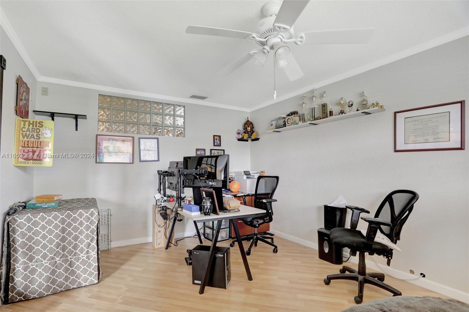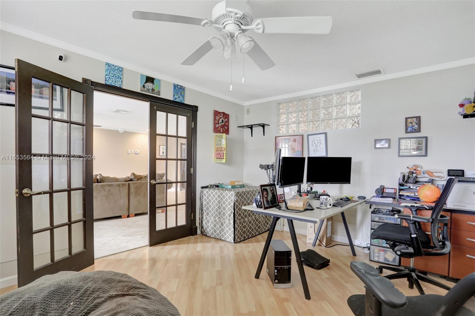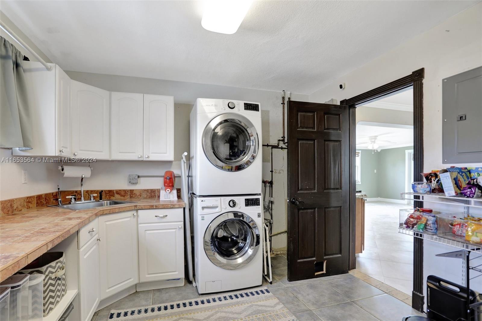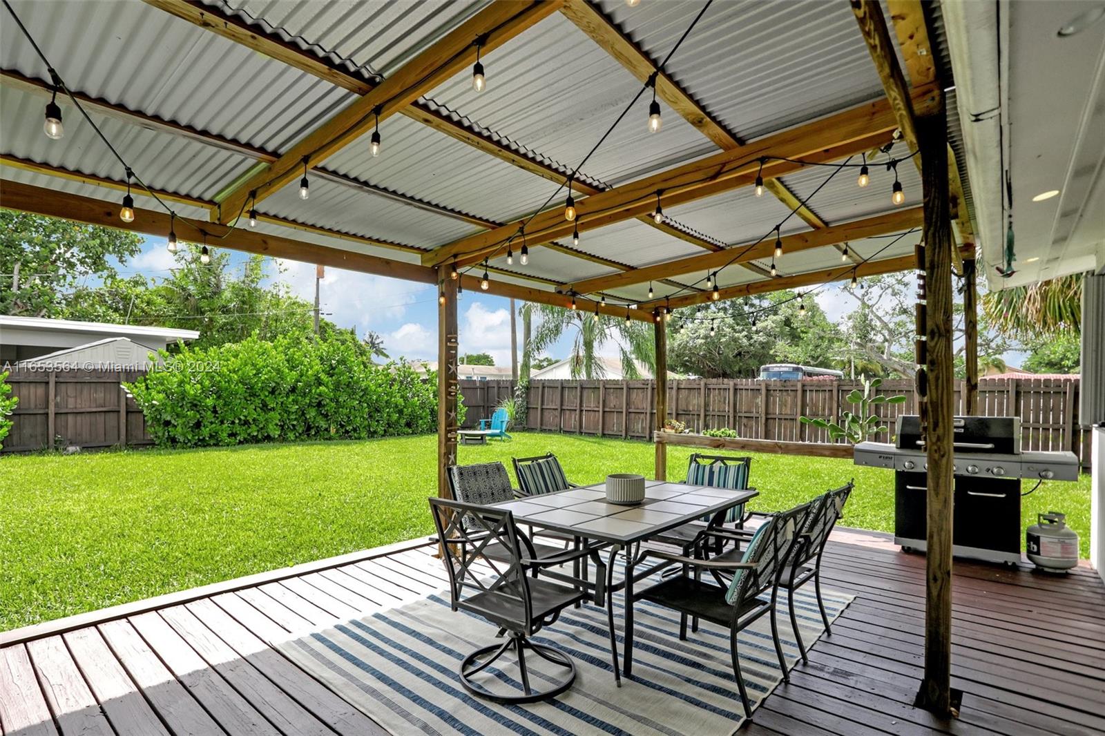 Welcome to this charming ranch-style 4-bed, 2-bath home on a 1/4-acre lot. Enjoy the open kitchen featuring stainless steel appliances, granite counters, wood cabinets, a large island with breakfast bar, and dual convection ovens. Elegant 24" Italian porcelain tile and crown molding throughout. Relax in the master bath's Jacuzzi tub or entertain in the spacious Florida room with a bar. Step outside to a 16'x32' covered patio, lush garden and a large backyard. Extras include a large laundry room, enclosed carport, hurricane impact doors, and accordion shutters. Water filtration system for the whole house installed. Roof 2020, water heater 2020. Quiet street with great neighbors - Bonus: big circular driveway, storage shed and big space for your boat!