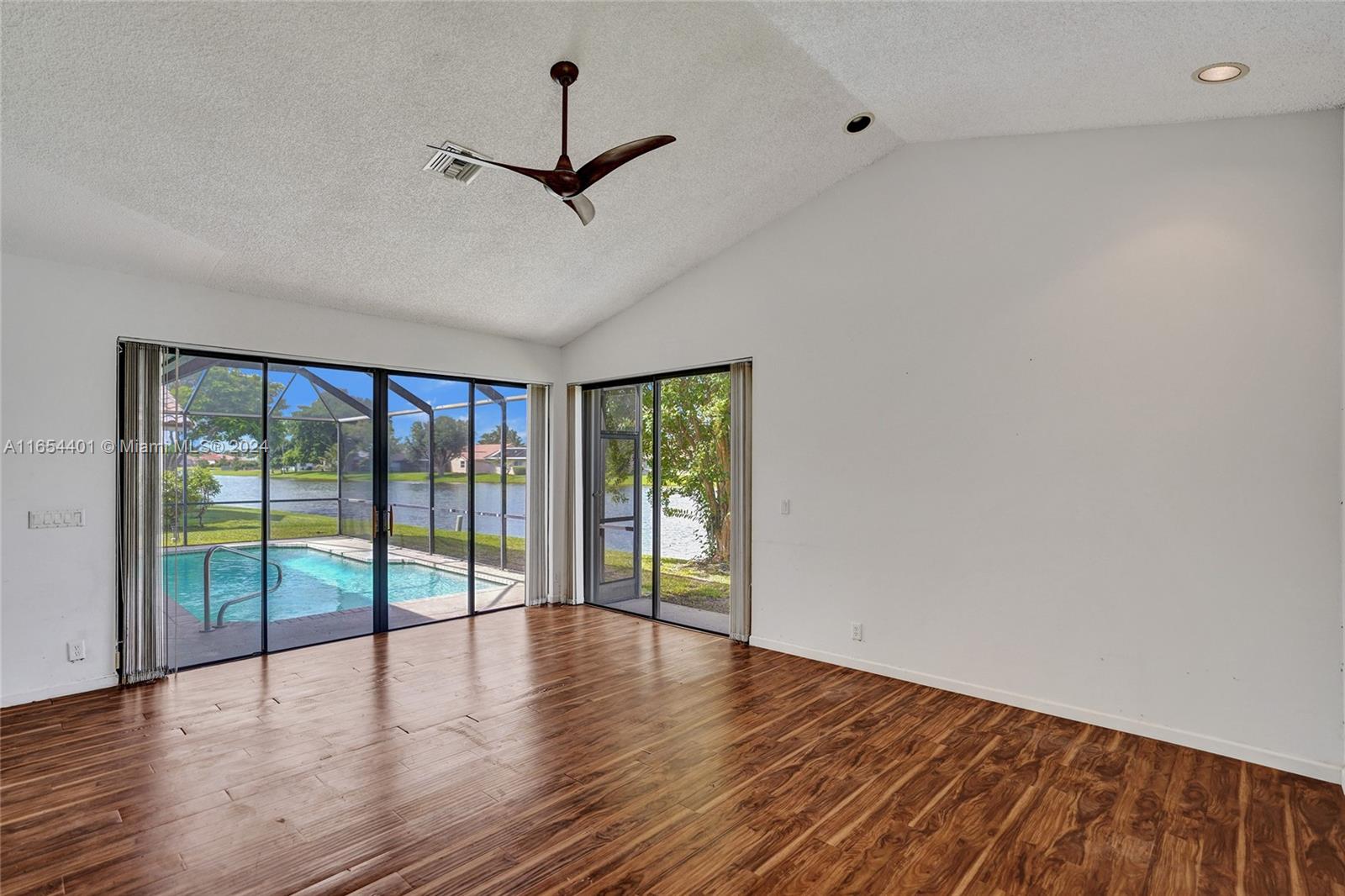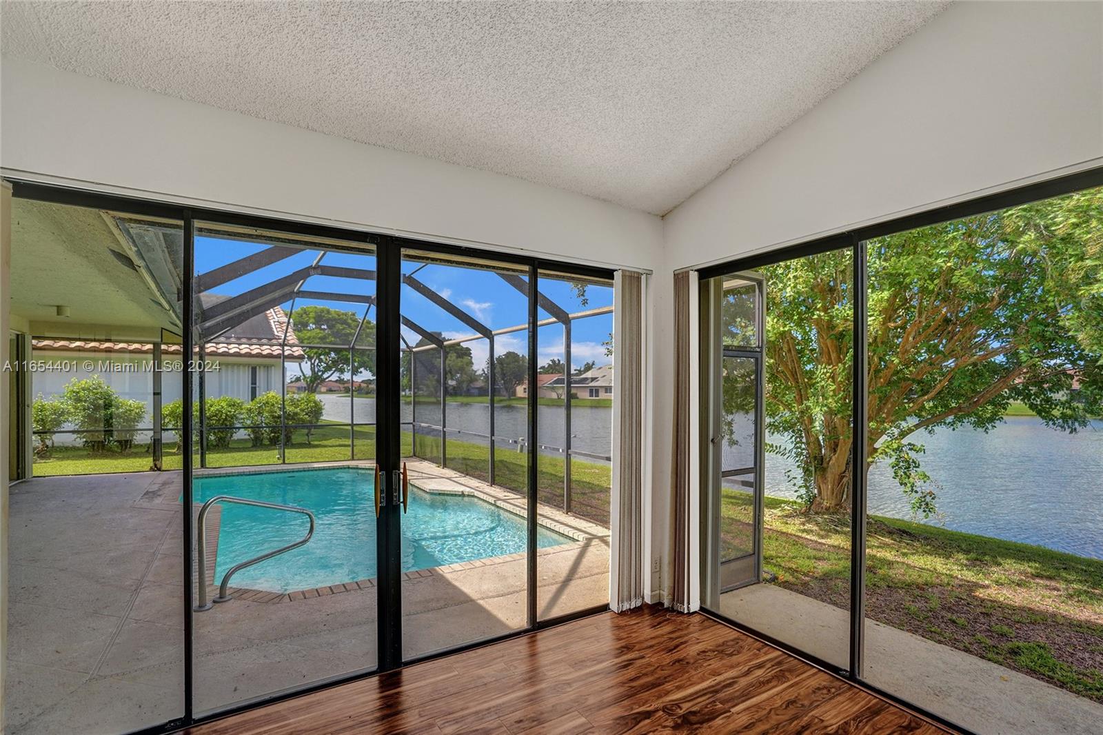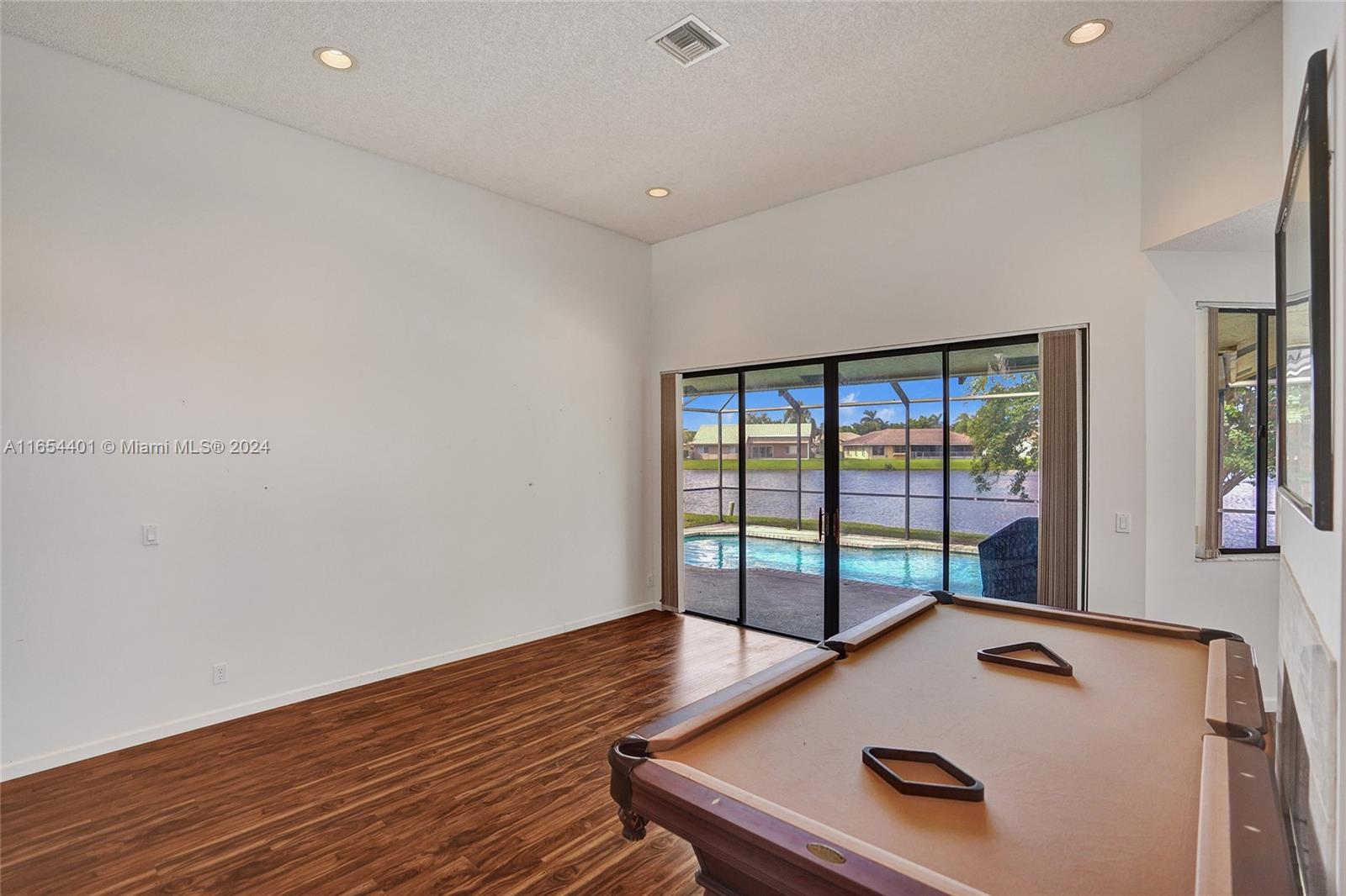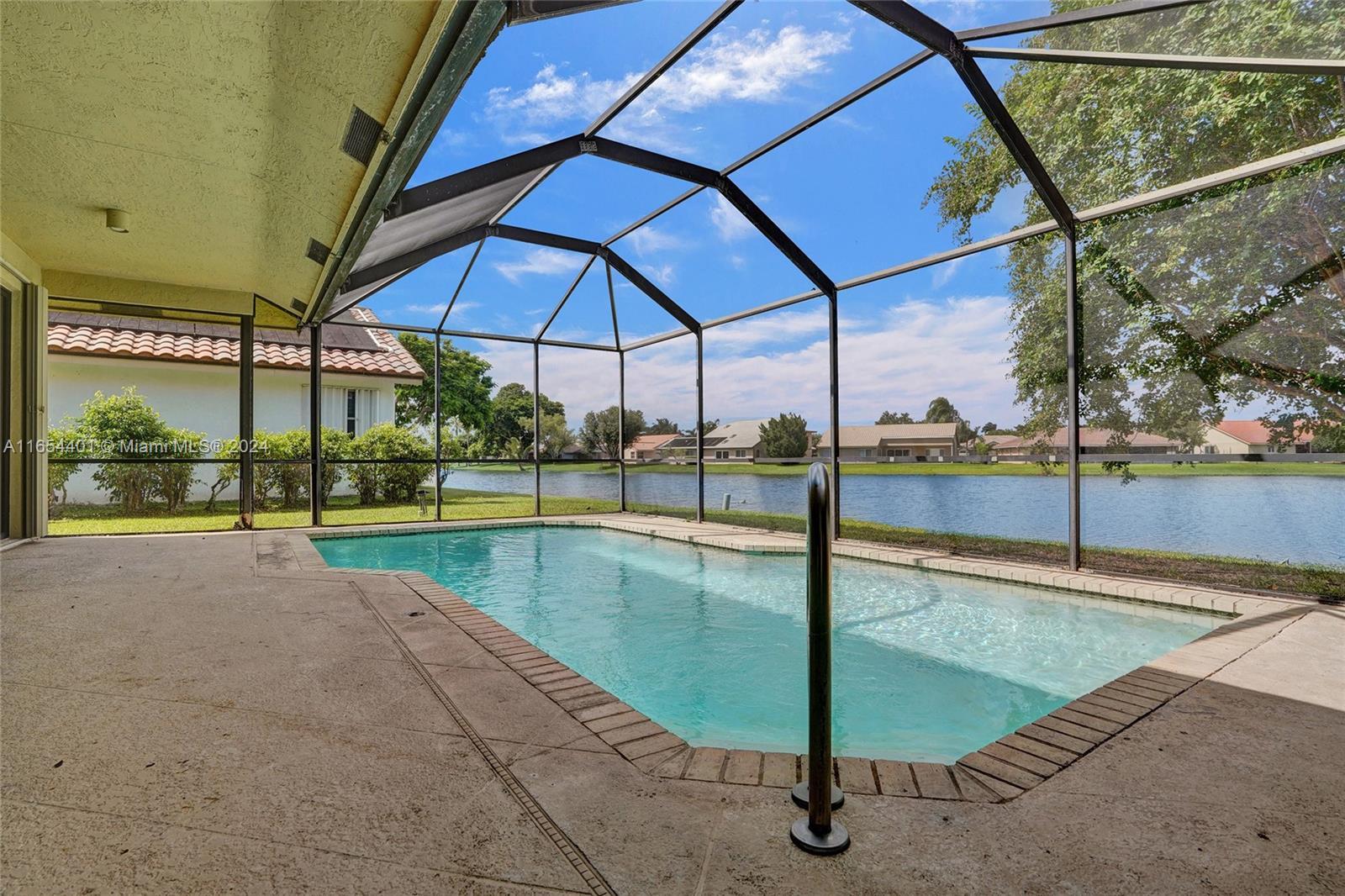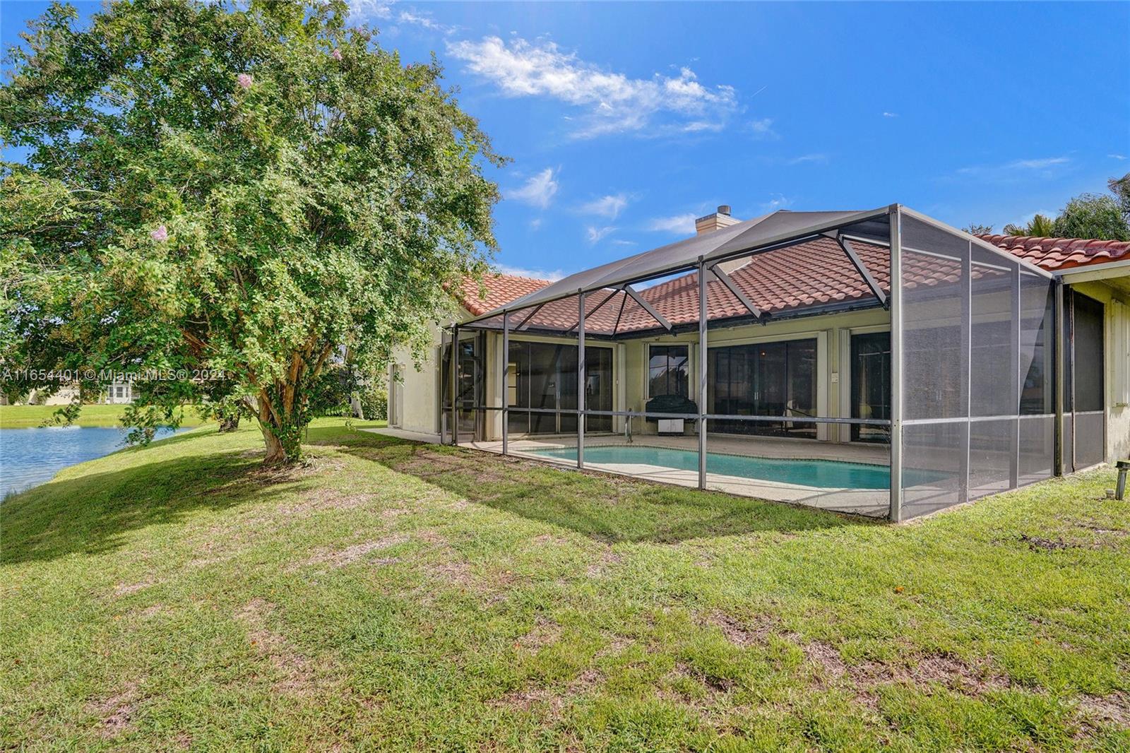 PRICE IMPROVEMENT. Awesome 5 bed, 3 bath waterfront pool home with a fireplace, located in the desirable community of Boca Winds. This home is light, bright and airy featuring 12 ft ceilings and tons of natural light a whole house generator & more. The open-concept layout flows seamlessly between living spaces that all lead to your beautiful screened pool and patio, perfect for relaxation and entertainment. The large family room off the open kitchen w/ granite countertops is perfect for family gatherings. The large master bedroom features sliding doors that overlook the sparkling pool. Community include tennis & basketball courts, & a pool. Boca Winds is conveniently located close to restaurants, shops, & parks. Zoned for A rated schools.