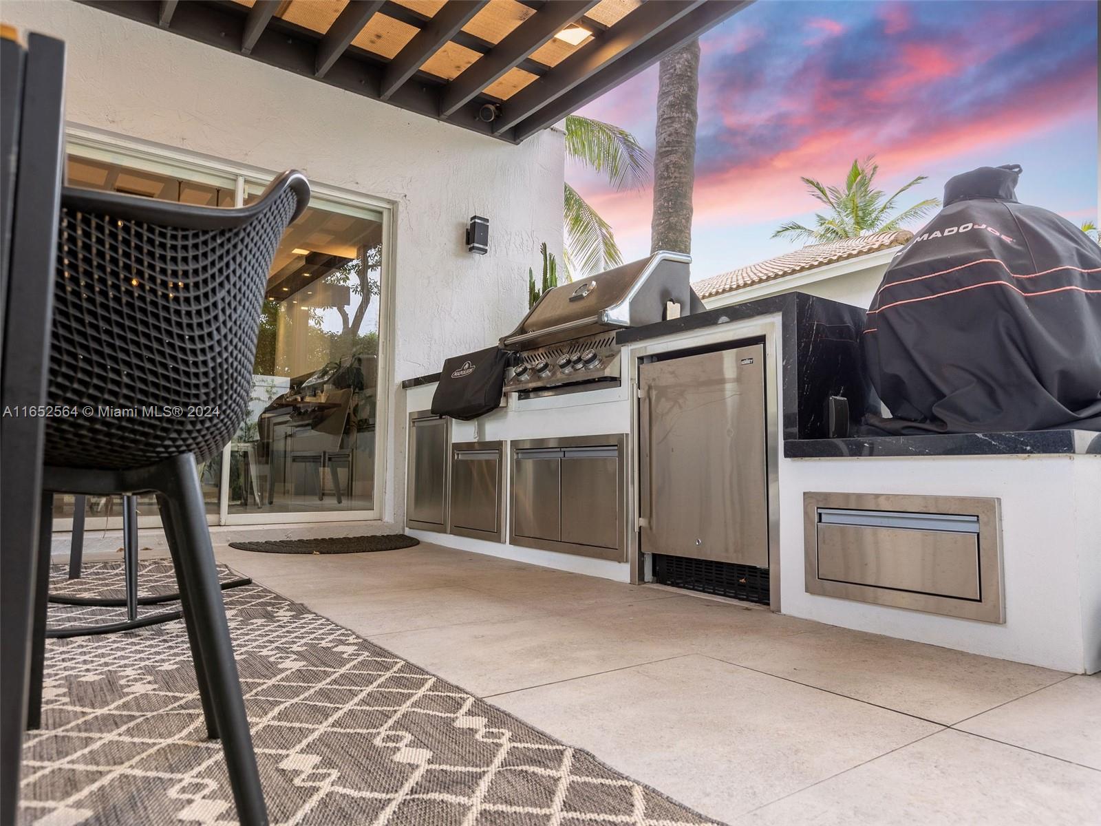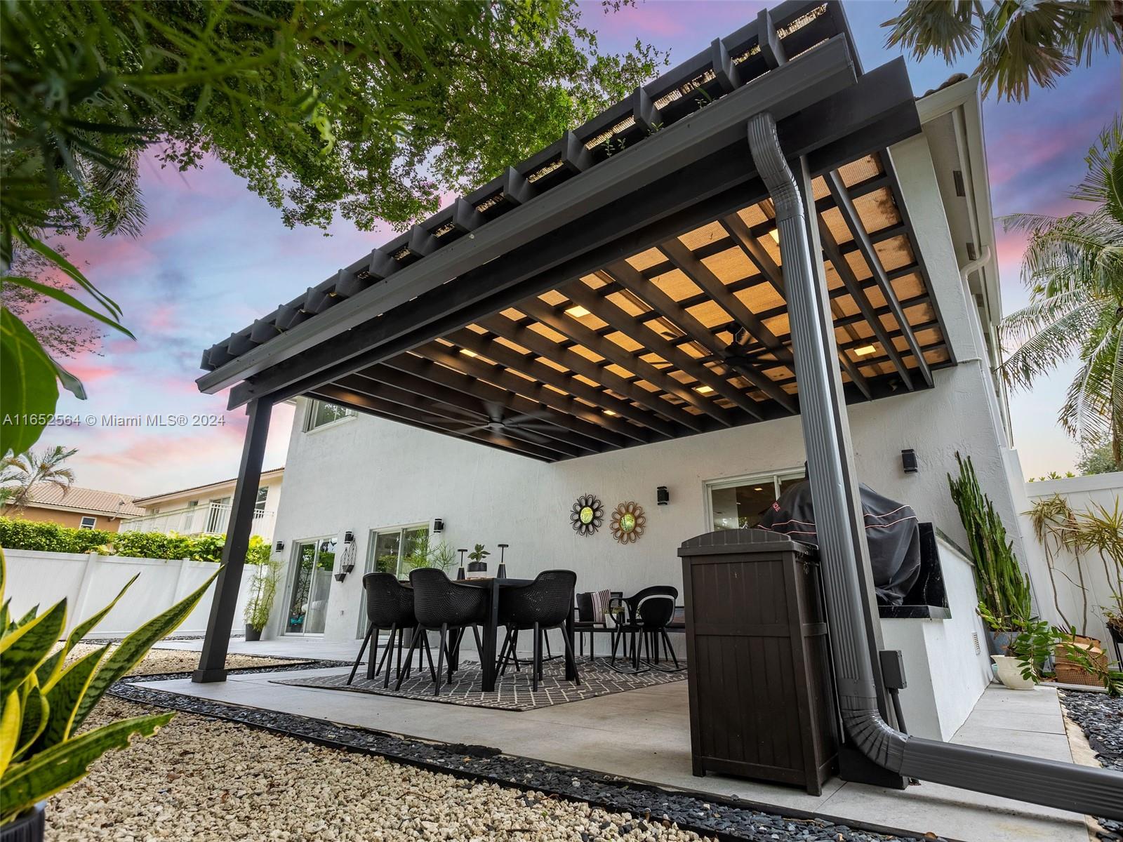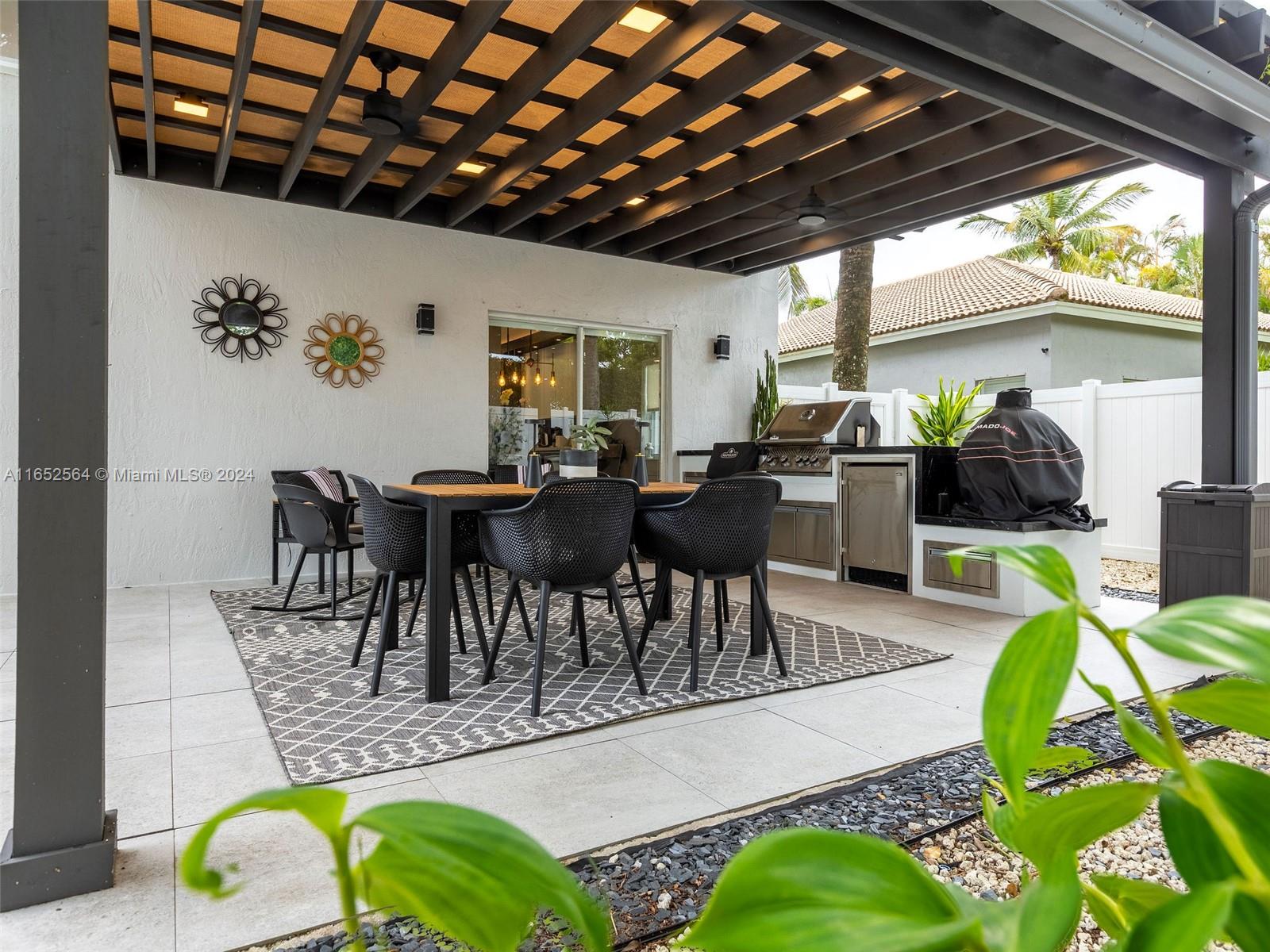 Welcome Home to a beautifully renovated 4-bedroom, 4-bathroom courtyard home in Emerald Estates! This gated community is renowned for its top-rated schools and location. The residence has a charming courtyard entrance with an open living room area. Stunning chef's kitchen with Samsung SS appliances, double ovens, a wine bar/cooler, an ice maker, and a breakfast nook. Great floorplan with lots of natural light & a separate 1 BR/1 Bth guest house with Murphy bed—ideal for visitors, in-law suite, or a home office. There is a private patio with an outdoor kitchen under a pergola & a fully fenced yard. The outdoor kitchen has a gas grill, dual burner, & fridge. Water Heater 2021, 2 A/C units were changed in 2017, & the exterior paint was completed in 2022. Two-car garages with an EV charger.