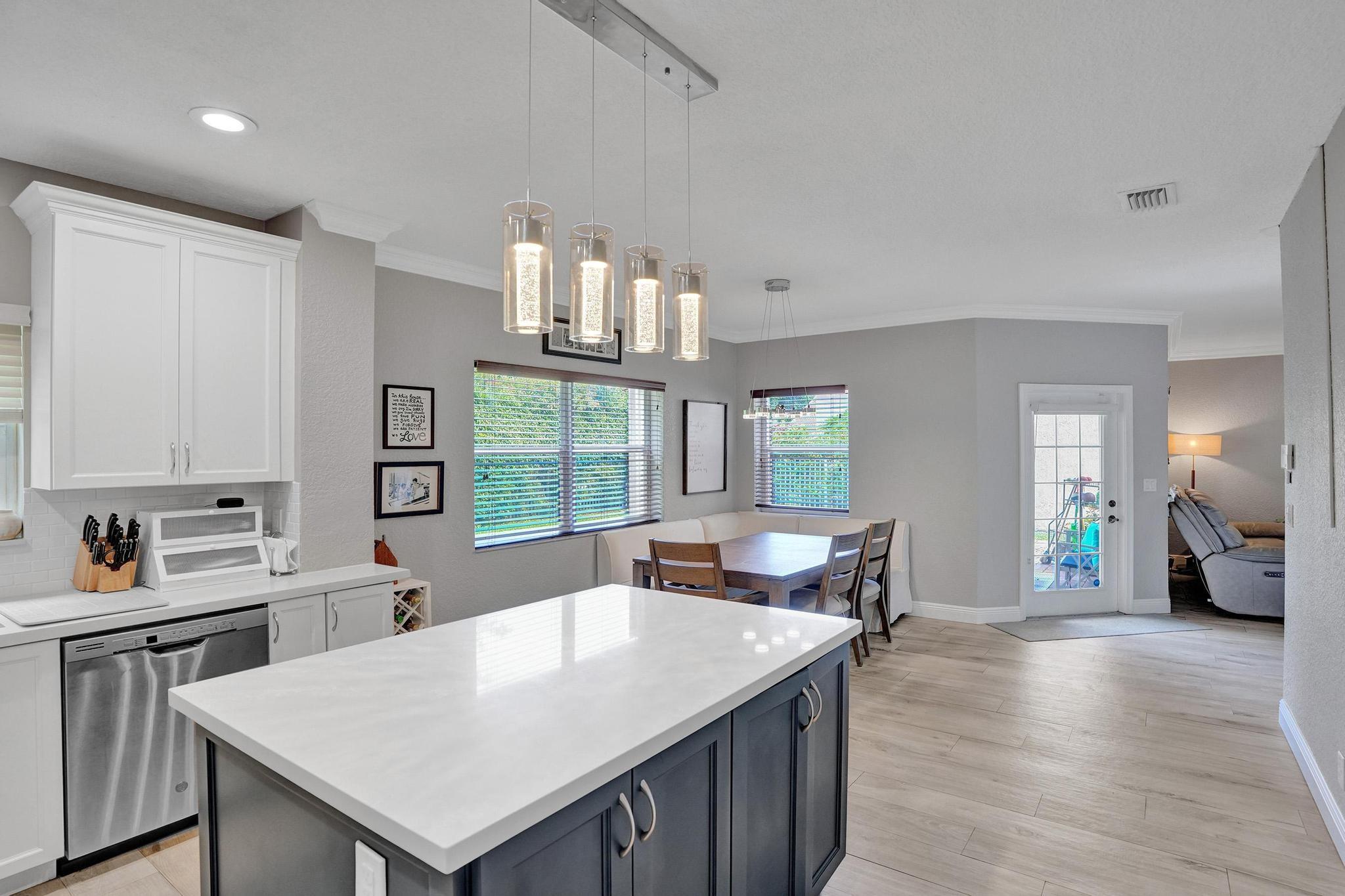 BEAUTIFULLY REMODELED home in gated community. This home features 3 bedrooms, 2.5 bathrooms, 2 car garage, spacious fully fenced backyard with covered patio. Gorgeous REMODELED GOURMET KITCHEN with newer stainless steel appliances including a double oven, modern real wood cabinets, quartz countertops, pull out shelves in pantry. UPDATED BATHROOMS, custom cabinetry in master closet, Modern wood-looking tile floors downstairs and laminate floors upstairs (no carpet). Hurricane impact glass front door, 1 impact window + accordion shutters on the rest. Garage with impact rated door, epoxy flooring and overhead storage. Newer AC & water heater, new fans/light fixtures. Low HOA includes landscaping, cable, alarm monitoring & amenities: Community pool, hot tub, gym and tennis!