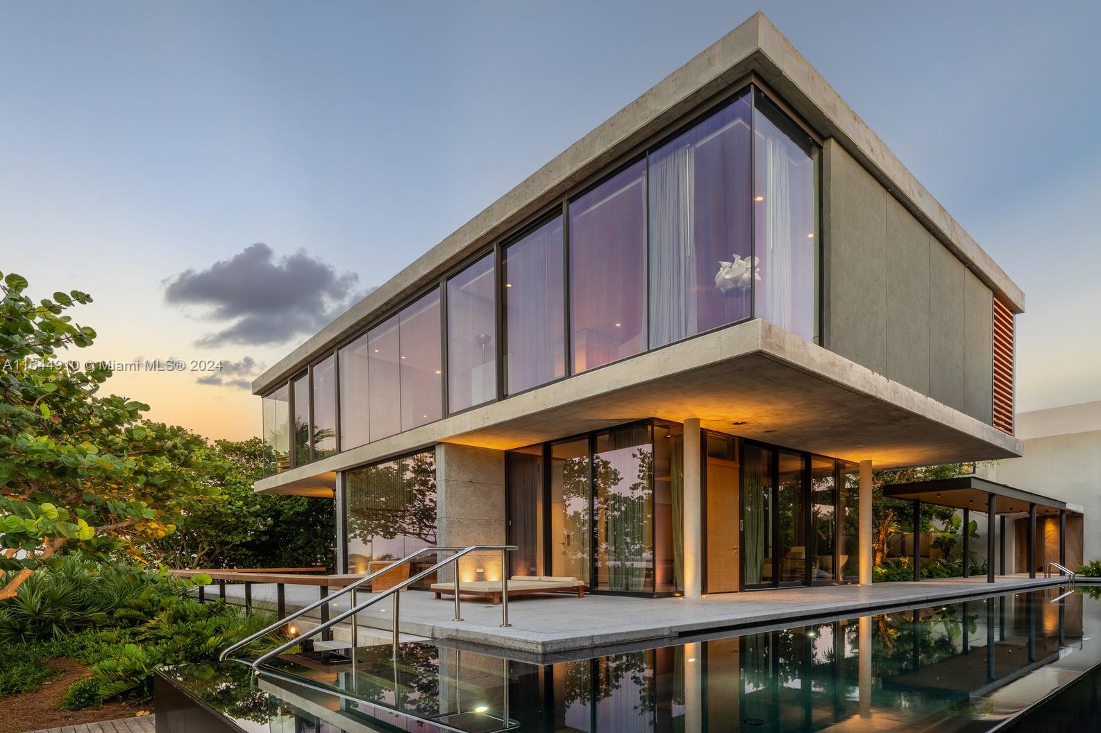 Step into a realm where luxury transcends imagination in this waterfront sanctuary that redefines zen living on the wide open bay. 6,081 SF oasis designed in collaboration with luminaries Andre Mellone, Raymond Jungles & Hoerr Schaudt is a haven of serenity & style. Nestled on a lush 14,161 SF lot w/ 106’ of prime waterfront, this home is a symphony of nature & architecture. Enter through coral stone Hemingway steps to fragrant gardens, ancient palms & specimen trees. Seamless flow of white oak & terrazzo floors, original Paulo Wernic mosaic & sculptural sea grape trees blur the line between indoor/outdoor living. The floating primary suite offers endless bay views while the outdoor oasis features a lap pool, spa & alfresco kitchen. Every inch curated for those who demand the extraordinary