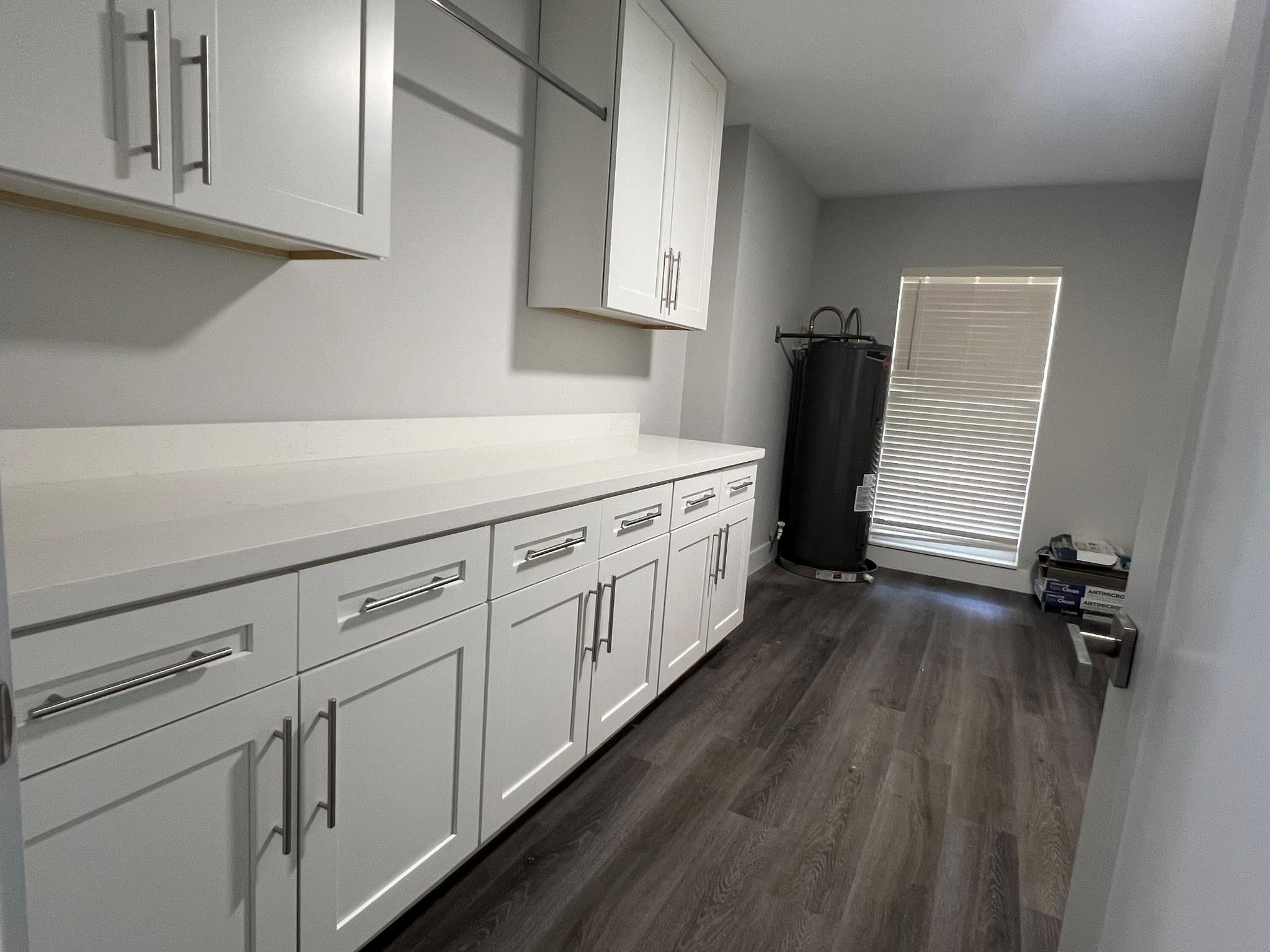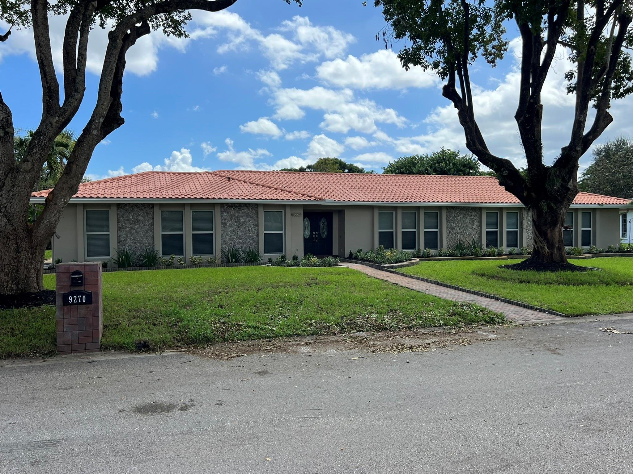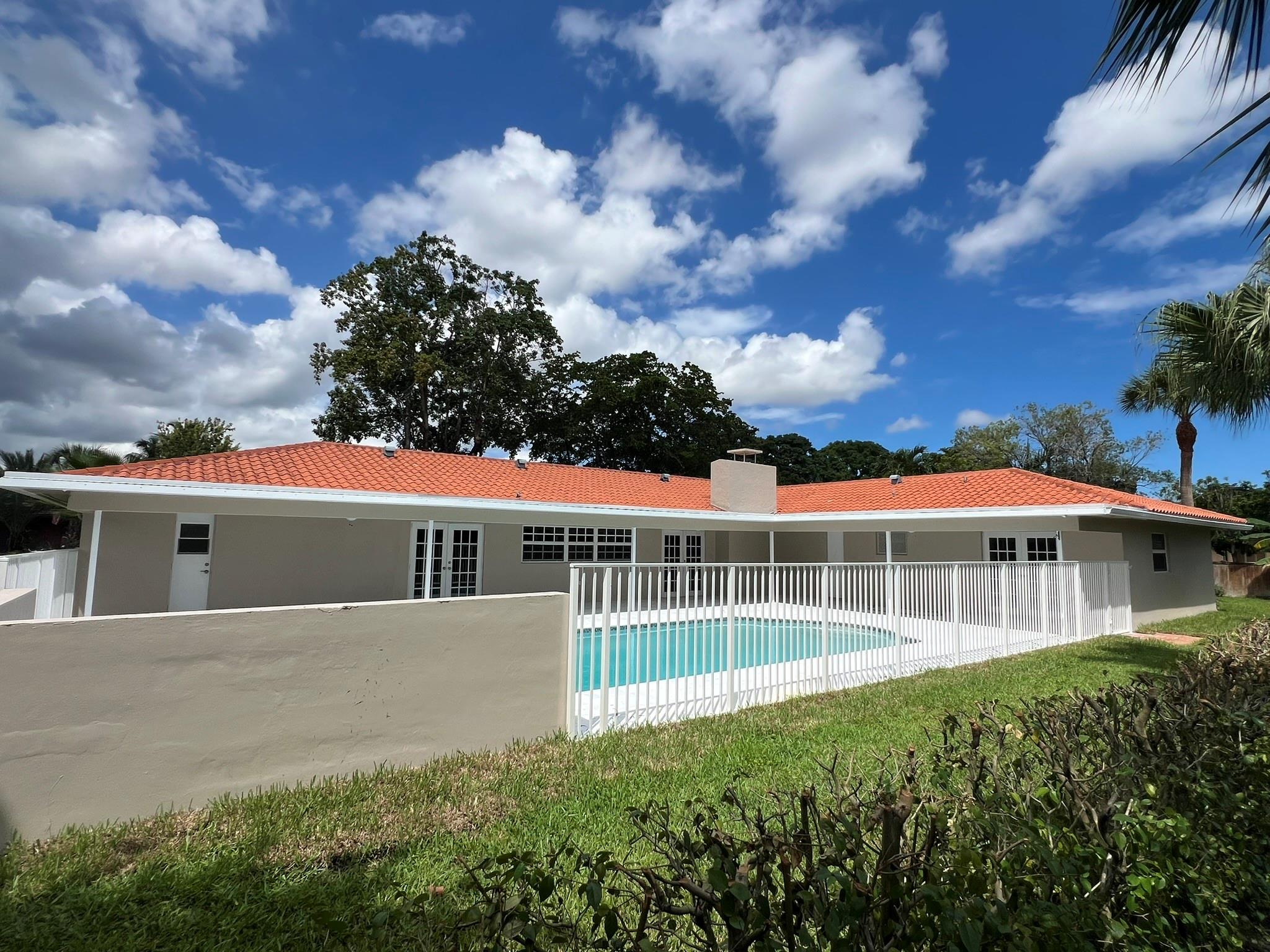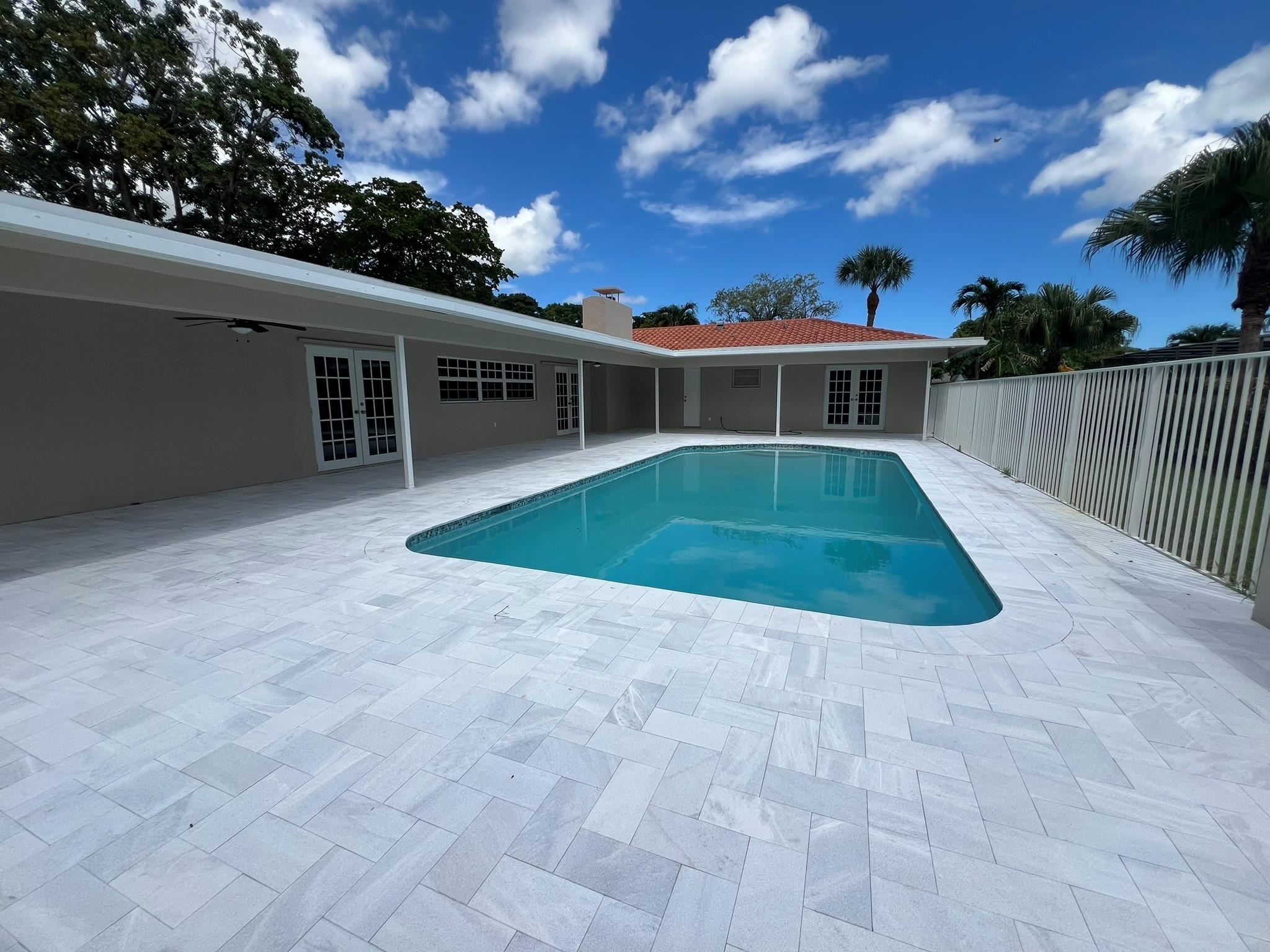This stunning home features modern 42-inch white shaker cabinets, quartz countertops with a spacious island, and new stainless steel appliances. The updated bathrooms mirror the kitchen's style with shaker cabinets and quartz counters. The layout includes new vinyl wood flooring, 4 large bedrooms, and 3 bathrooms, with potential for two additional bedrooms—perfect for an executive lifestyle. Situated on an oversized lot, this property offers privacy and outdoor space. The split bedroom plan provides a peaceful retreat, while the family room is great for gatherings. The pool and open patio feature travertine tile, perfect for relaxation. A large interior laundry room adds convenience. The property also includes lush landscaping, impact windows, and a durable 15-year-new barrel-tiled roof.