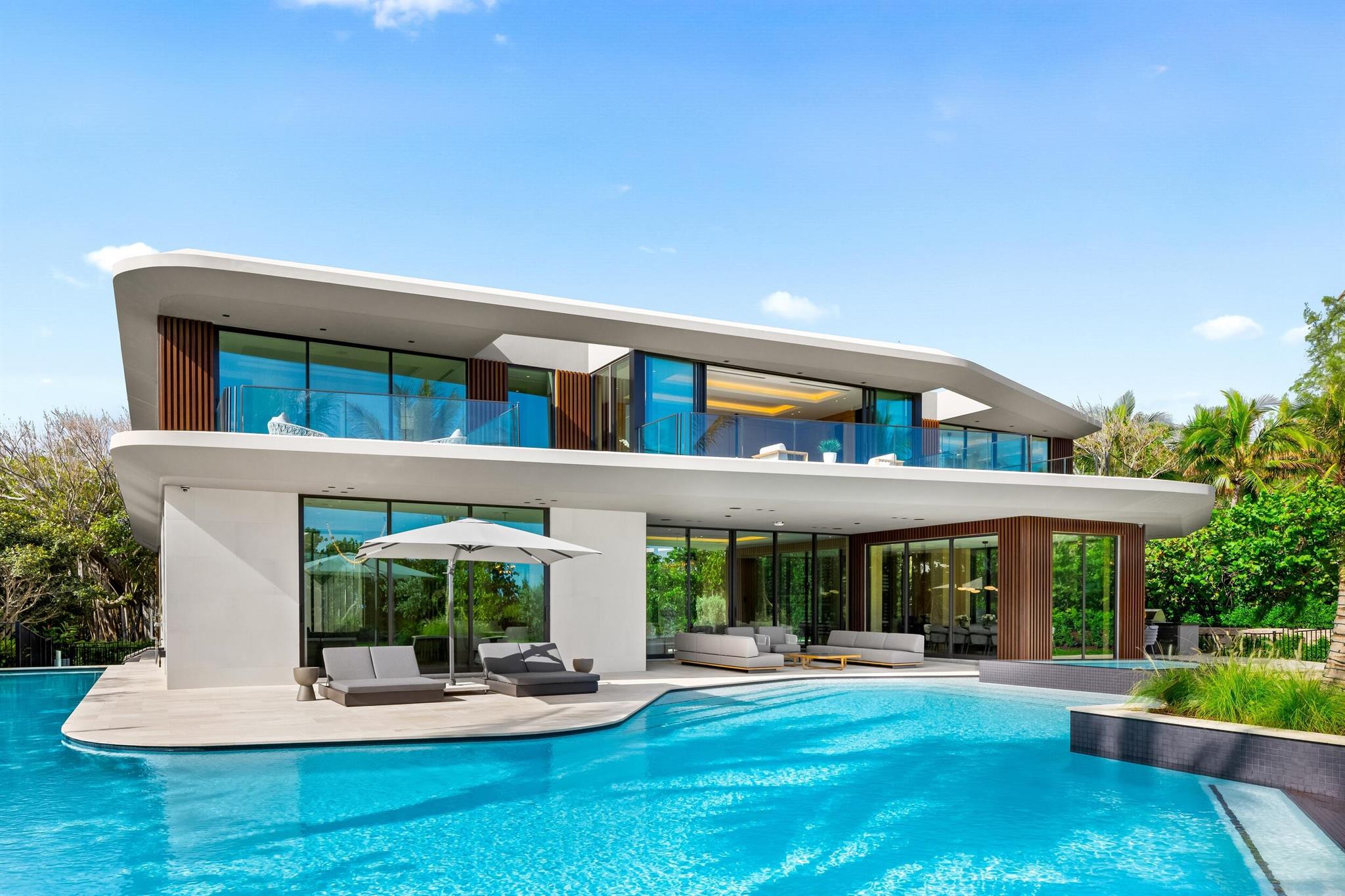 A One-Of-A-Kind and unseen oceanfront estate on Jupiter Island. Designed by internationally renowned architecture firm DOMO Architecture + Design, this breathtaking home four years in the making was inspired by the natural beauty of the blowing rocks of Jupiter Island with organically shaped modern design that reflects the surrounding natural environment. Situated on a sprawling 3.5 +/- acre east and west parcel lot with approximately 179 feet of direct ocean frontage. Painstaking details with 18,500+/- total square feet, the home features 6 bedrooms, 8 bathrooms, and 1 powder room, soaring 11' ceilings on the main floor, and grand double height 24' foyer. Gourmet chef's kitchen with Subzero appliances and oversized eat-in exhibition kitchen with double islands and breakfast area.