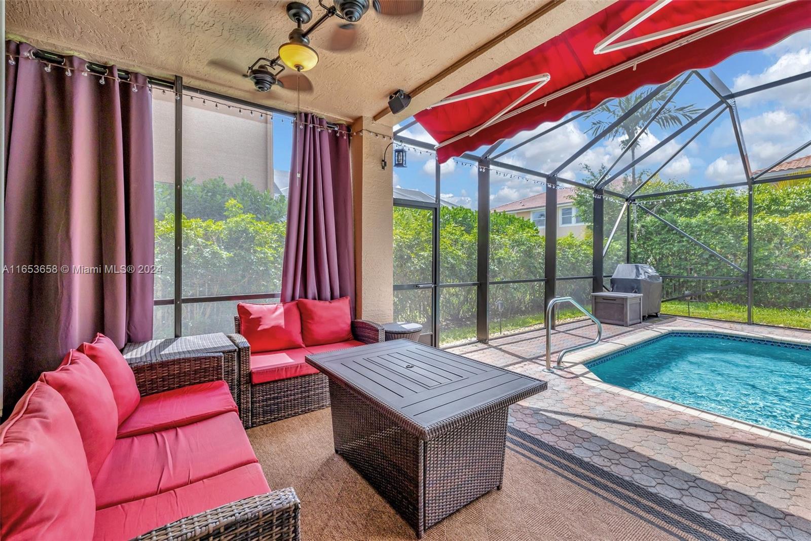 This pristine pool home in Vanderbilt Estates boasts a BRAND NEW roof w/new gutters and upgraded kitchen with a new double oven and cooktop. With 4 bedrooms, 3 baths, and a loft, the layout offers plenty of space for comfortable living. The primary suite includes a sitting area/office, while two mini-masters share a Jack & Jill bath. Enjoy an eat-in kitchen, oversized family room, and the convenience of a full bath downstairs. Outside, relax by the screened-in, heated salt-chlorinated pool, perfect for year-round enjoyment. Accordion hurricane shutters provide added protection in this well-maintained home. This is a Sirva Relocation property. Please see attachments. Must be included with written offer. Stewart Title will be title company for the transaction.