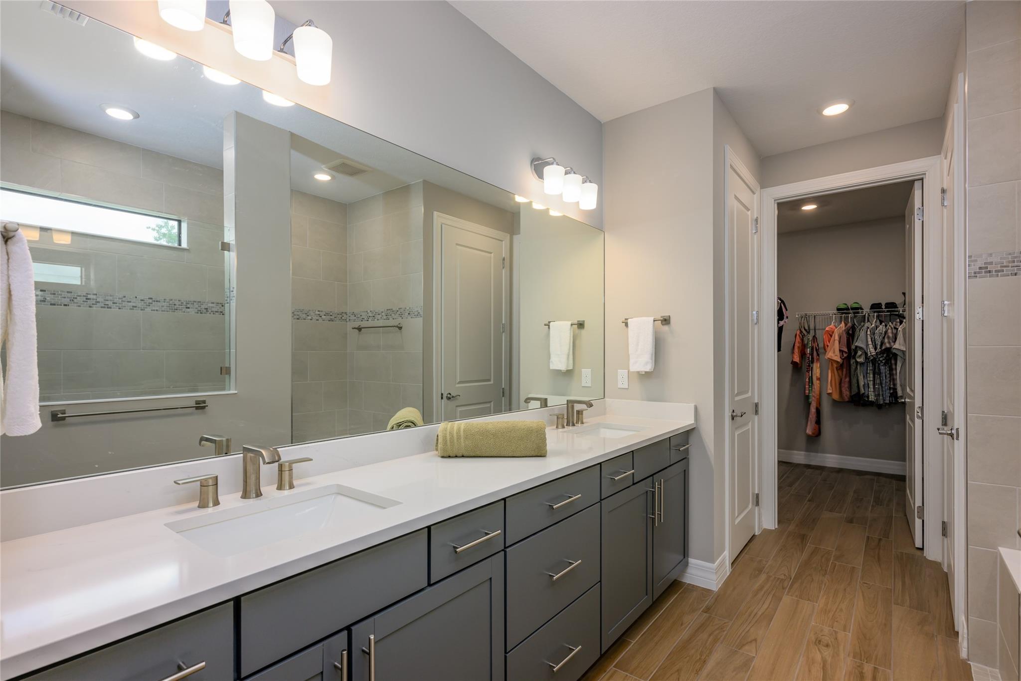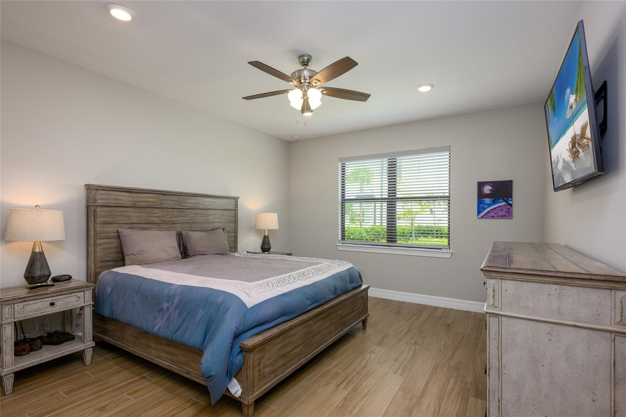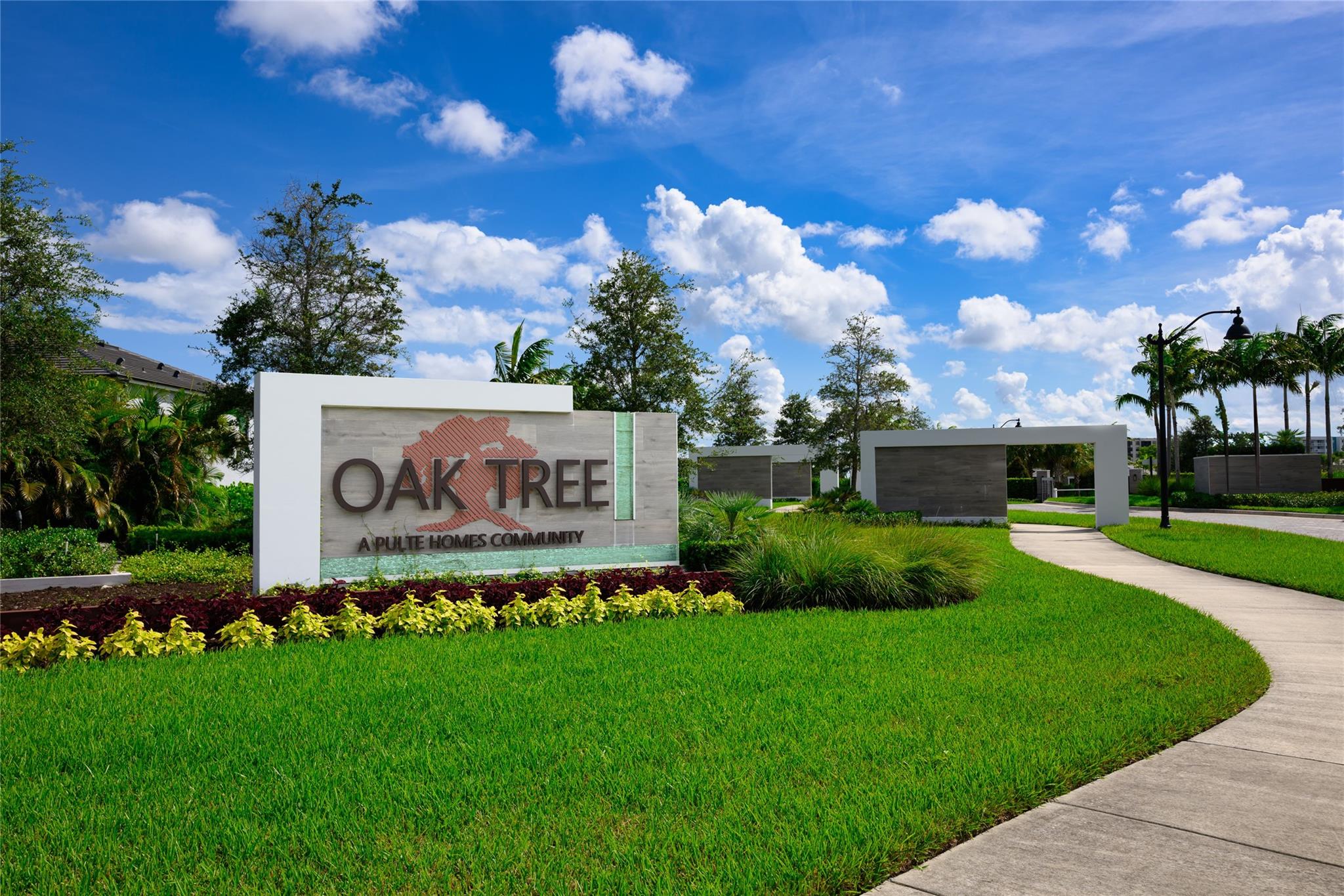 Welcome to the ultimate resort lifestyle in the gated Oak Tree community. This single story home offers ceramic tile floors thruout plus 8’ doors and upgraded trim. Your dream kitchen has a large island, five-burner gas KitchenAid range and matching wall oven. The expansive master suite includes an en suite bath with a roll-in shower featuring extra wall jets for a spa-like experience. The oversized double vanity has a multitude of drawers. The two large guest bedrooms share a bathroom with a tub. A generously-sized laundry room comes with a utility sink and cabinetry. Don’t miss the amenity center, featuring a fully equipped gym, party room, barefoot bar, and sparkling swimming pool. Enjoy the surrounding shade cabanas, blue glass fire pit, gas barbecue grills AND pickleball courts.