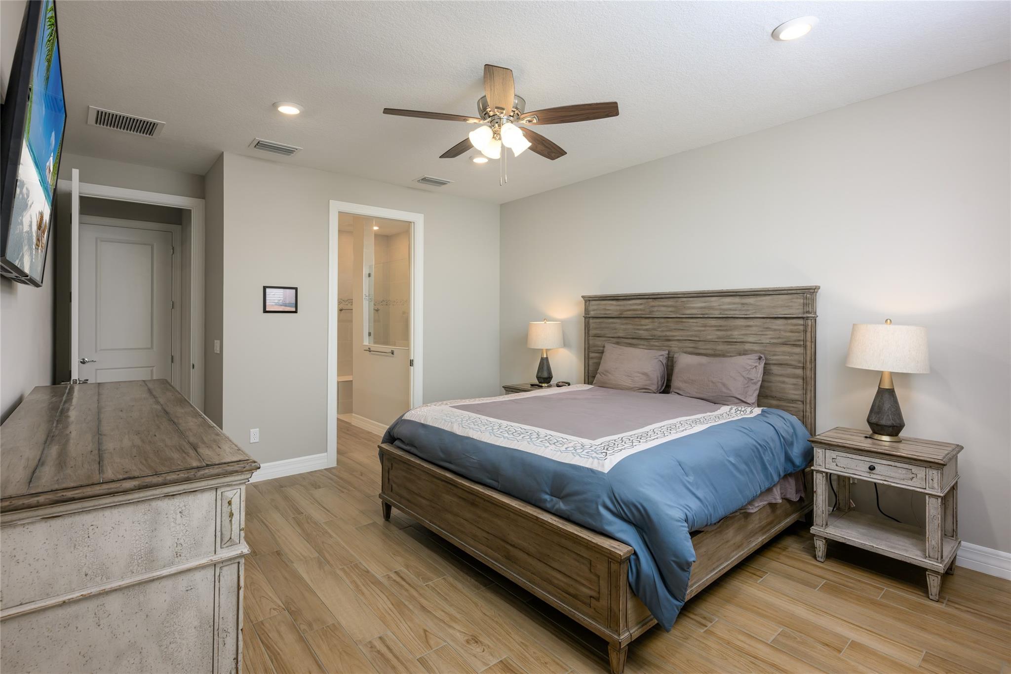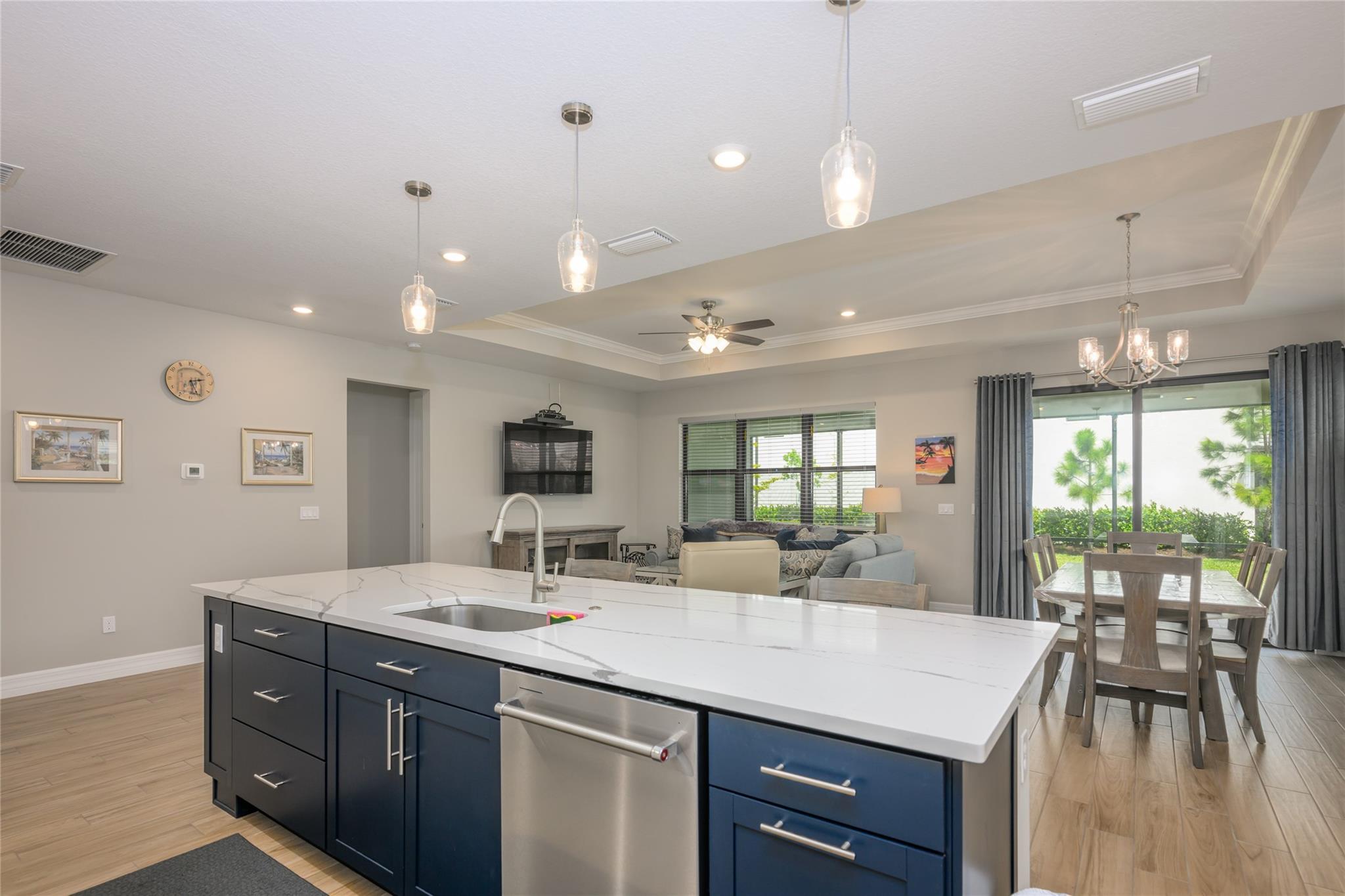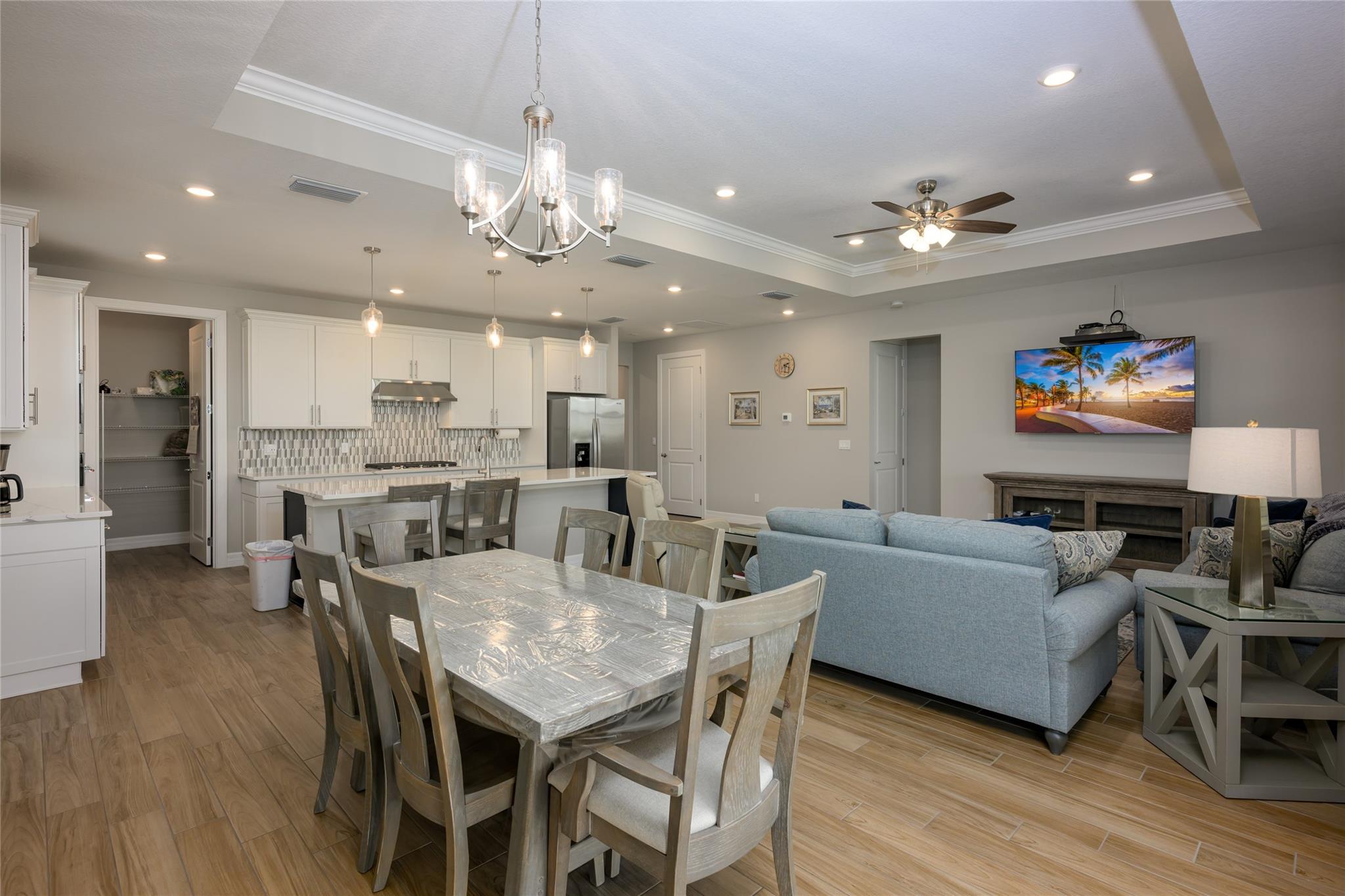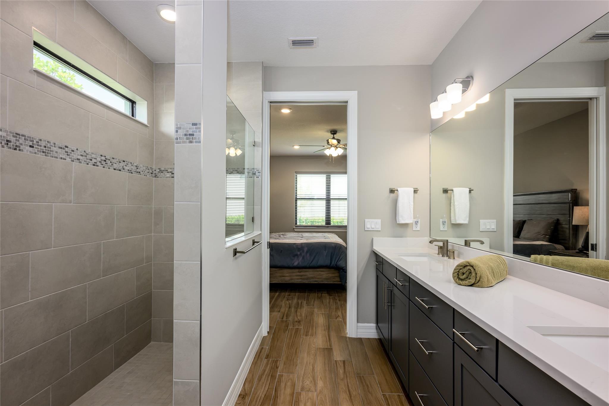 Welcome to the ultimate resort lifestyle in the gated Oak Tree community. This single story home offers ceramic tile floors thruout plus 8’ doors and upgraded trim. Your dream kitchen has a large island, five-burner gas KitchenAid range and matching wall oven. The expansive master suite includes an en suite bath with a roll-in shower featuring extra wall jets for a spa-like experience. The oversized double vanity has a multitude of drawers. The two large guest bedrooms share a bathroom with a tub. A generously-sized laundry room comes with a utility sink and cabinetry. Don’t miss the amenity center, featuring a fully equipped gym, party room, barefoot bar, and sparkling swimming pool. Enjoy the surrounding shade cabanas, blue glass fire pit, gas barbecue grills AND pickleball courts.