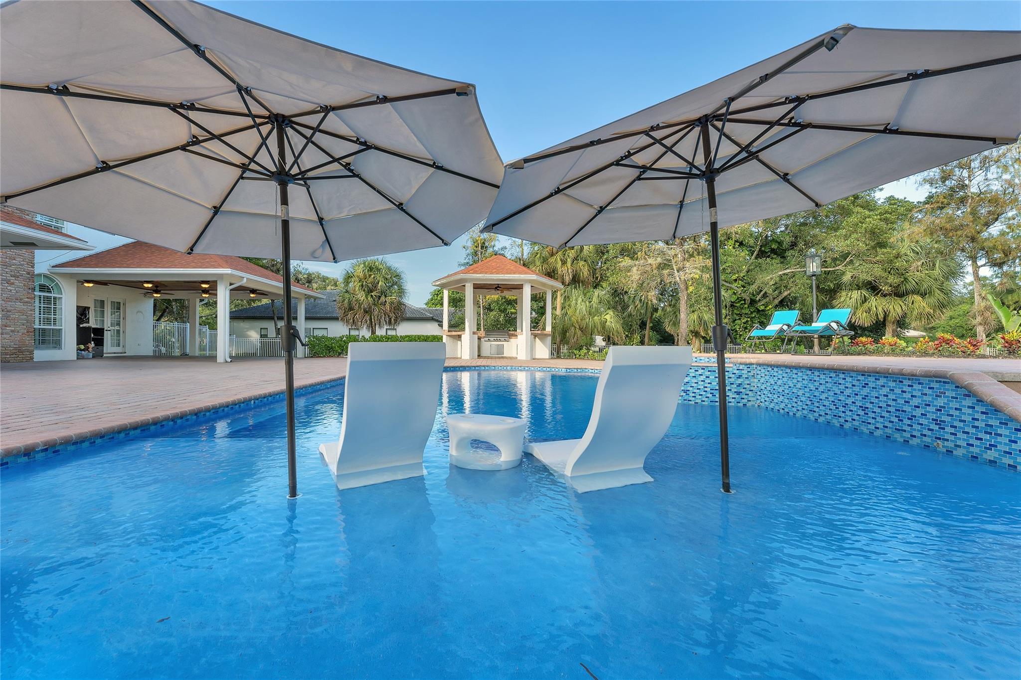 Welcome to a world of luxury & serenity in this stunning 6-bedroom, 4-full & 2 half bathroom estate with 3 car garage located in Pine Tree Estates. Imagine beginning your day in the master suite bathed in natural sunlight, overlooking a newly remodeled pool & 1.09 acres of lush, private and fenced grounds. This gourmet kitchen, equipped with maple chef butcher block & premium appliances, is perfect for family gathering & creating fond memories with loved ones. Enjoy the grandeur of soaring ceilings, a striking spiral staircase, a cozy fireplace, & two versatile bonus rooms. Brand new roof & AC, impact windows & doors throughout, along with recent upgrades such as new electrical panels, generator, wells, & so much more. This home is the perfect blend of elegance, warmth, & timeless charm.
