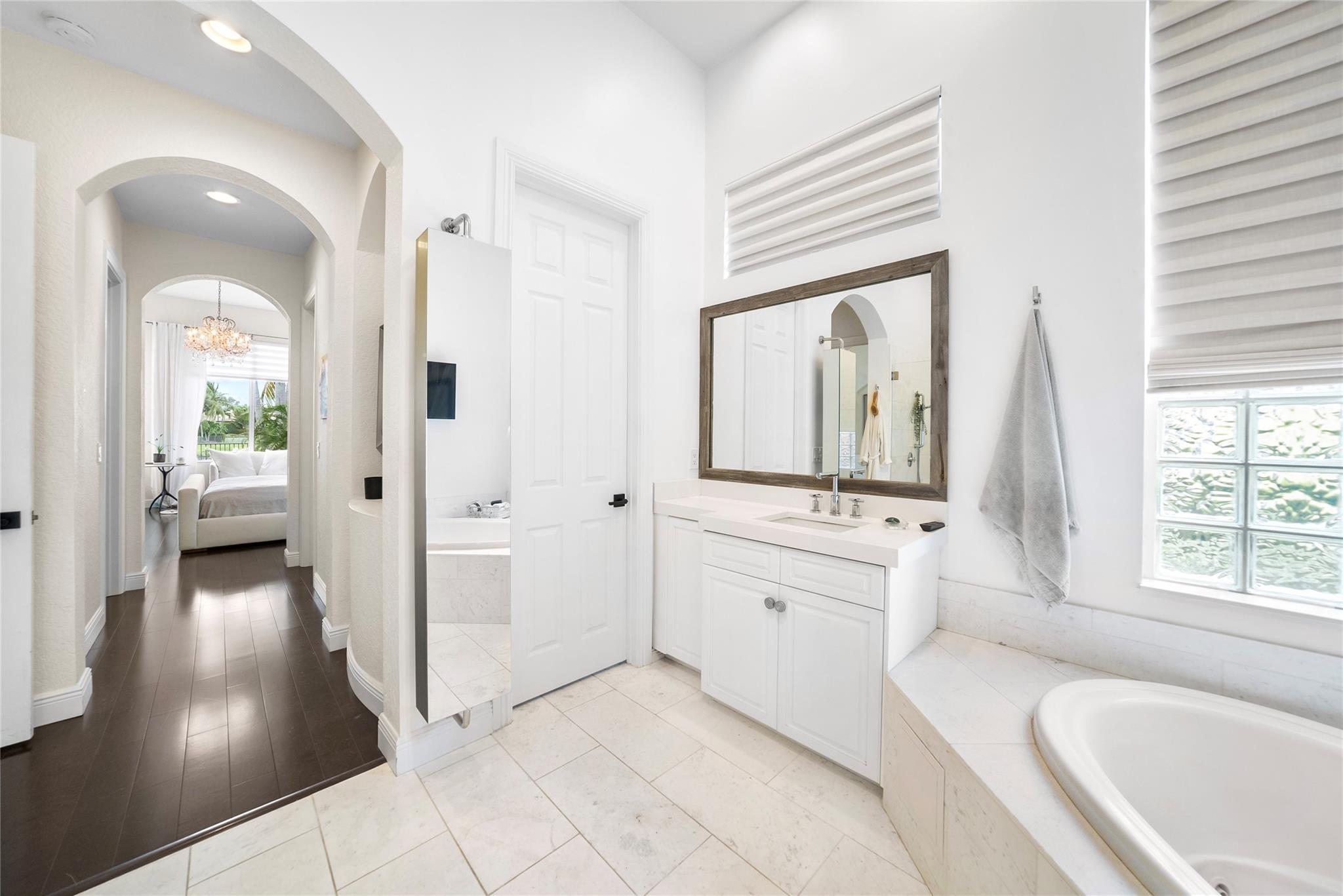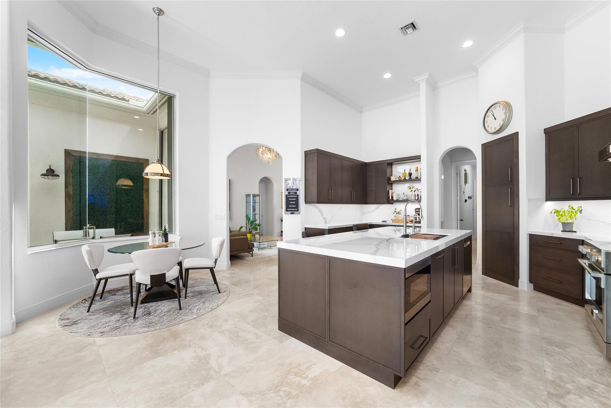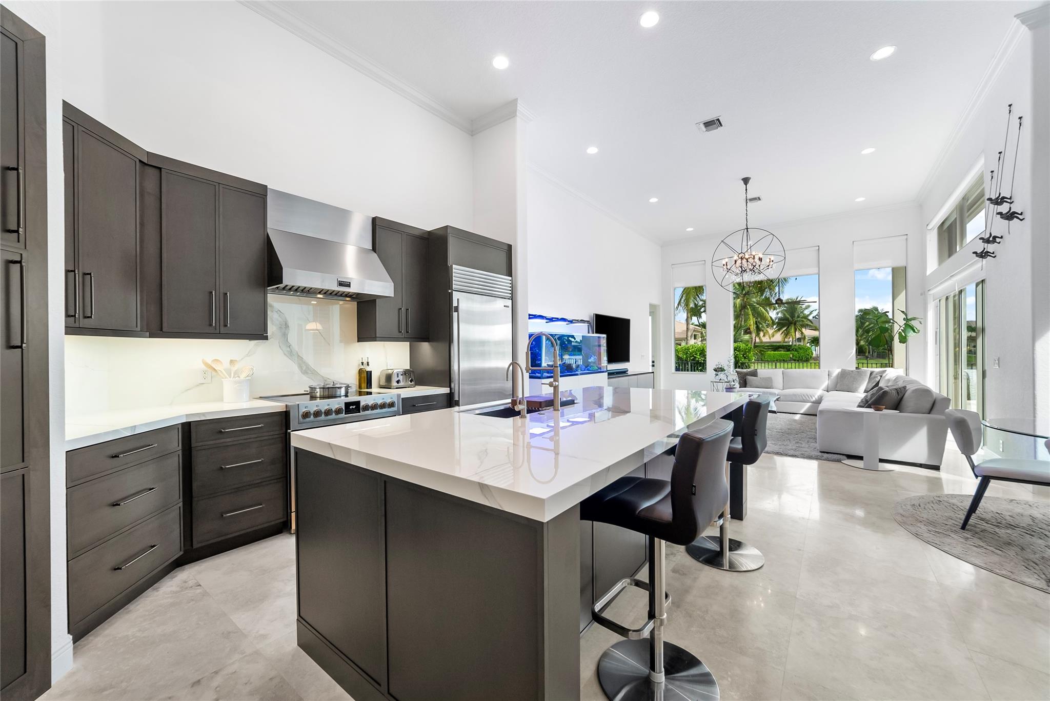 Over $160K In Upgrades! Popular 5 Beds, 3 Bath Tri-Split Carmel Model Pool Home w/3-Car Garage On Waterfront Lot, Brand New Kitchen w/High-End Finishes Including All New Stainless Steel Appliances, Sub-Zero Fridge, Italian Fulgor Milano Stove & Hood, Italian Porcelain Counters & Island Ideal For A Chef, 2024 Updated Travertine Patio w/Diamond Brited Pool w/Waterfall Feature, Fully Fenced-In Back Patio Area, Plenty Of Covered Area To Enjoy Barbecues Or JTo Relax & Enjoy The Cool Breezes & Water View, High Ceilings, 24X24 Saturnia Marble Floors Throughout The Main Living Areas, Updated Spa-Like Primary Bath w/Carrara Marble Floor &Walls,Separate Shower,Jacuzzi Tub,Updated Wood Floors In Primary Bed,Walk-In Closets,Accordion & Panel Shutters, Resort-Style Amenities, Low HOA Dues & A+ Schools!