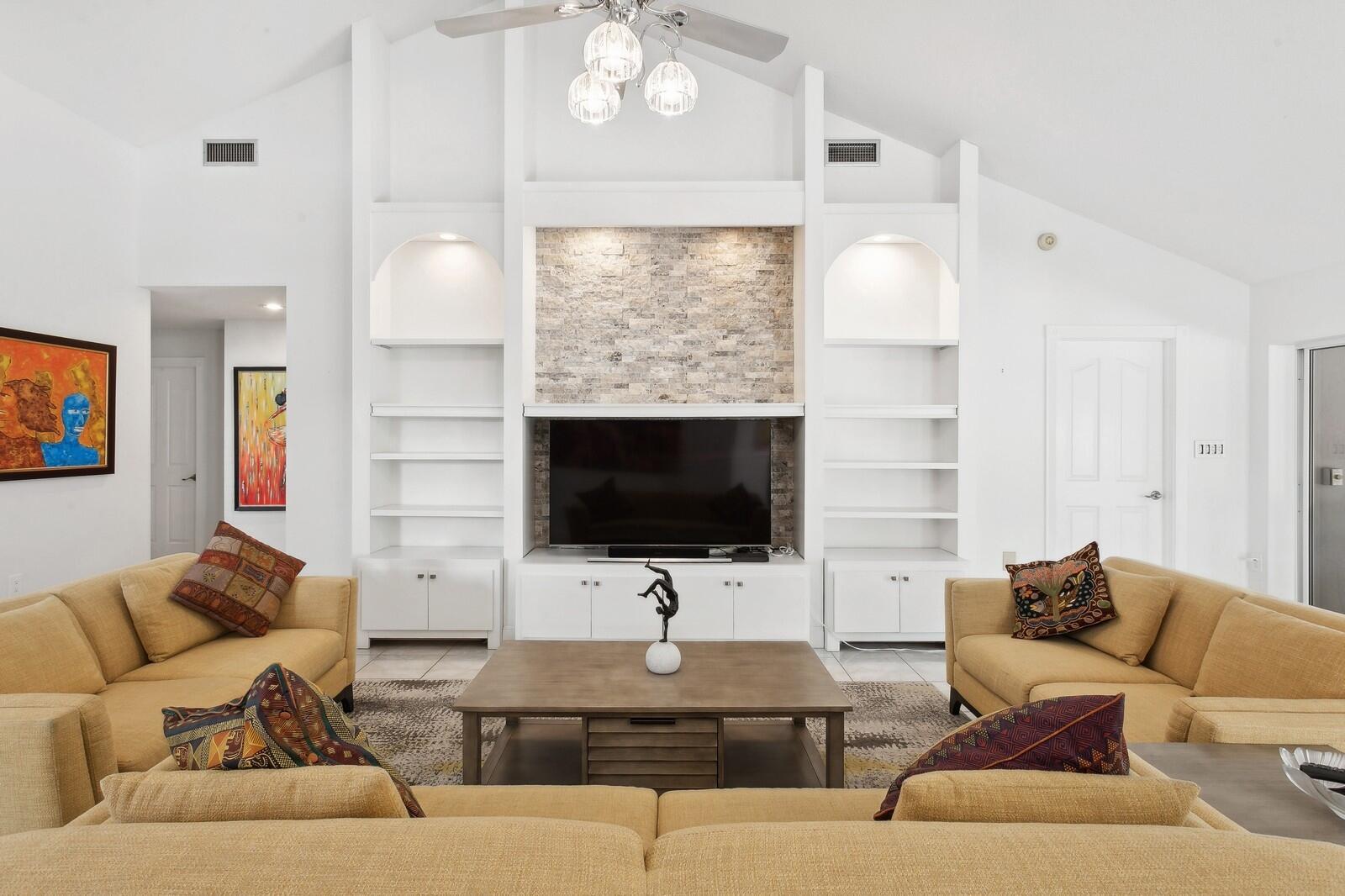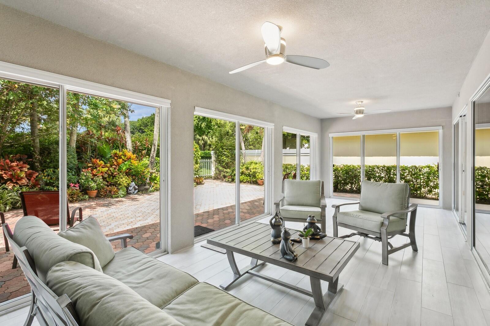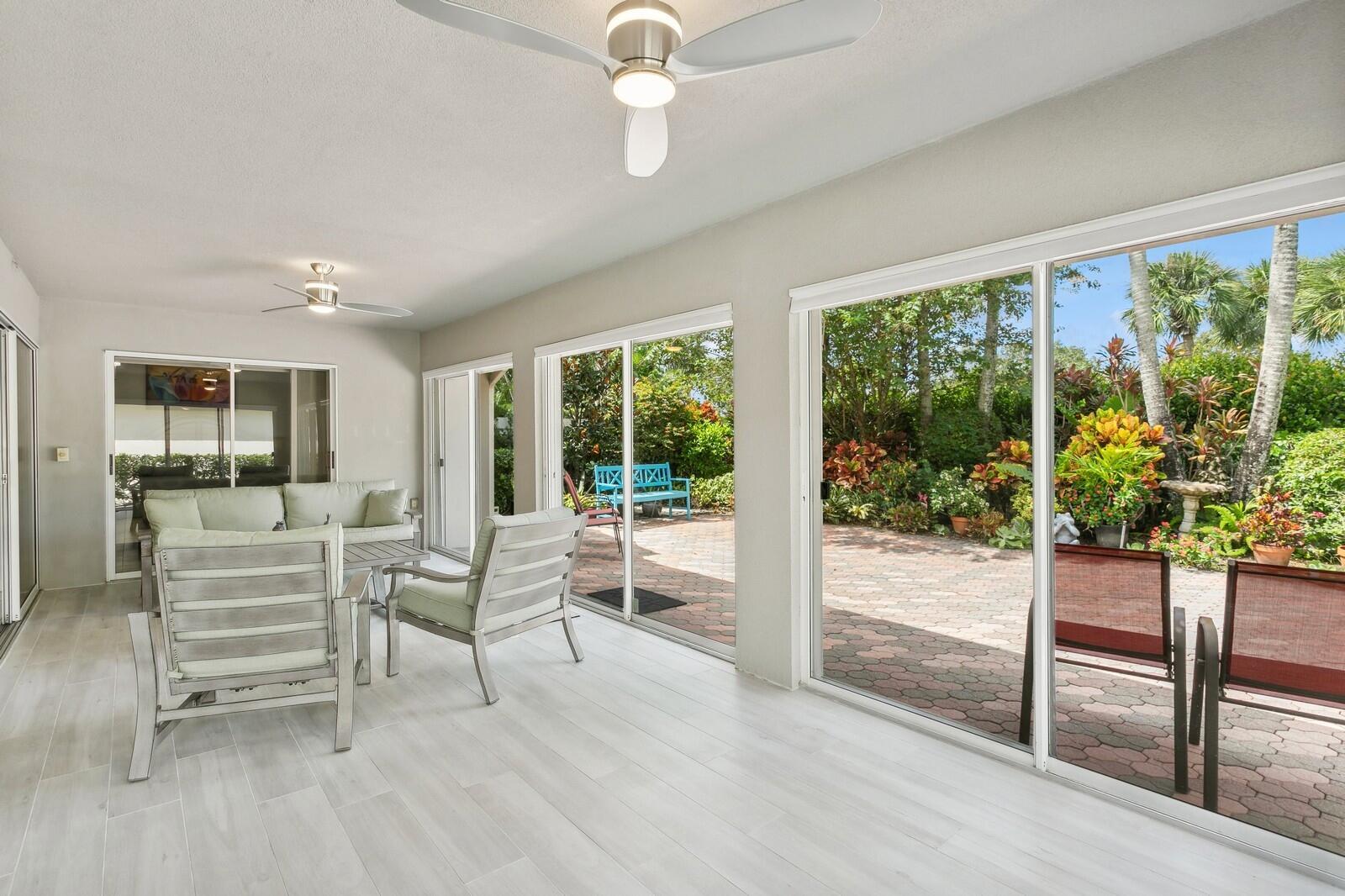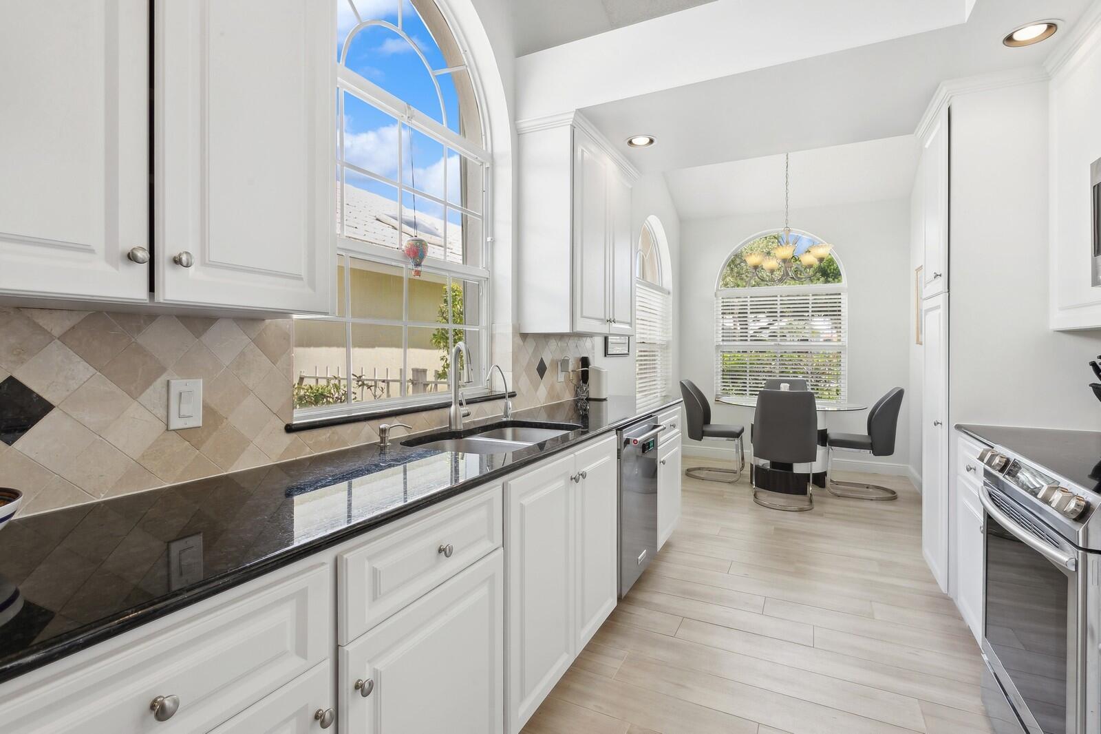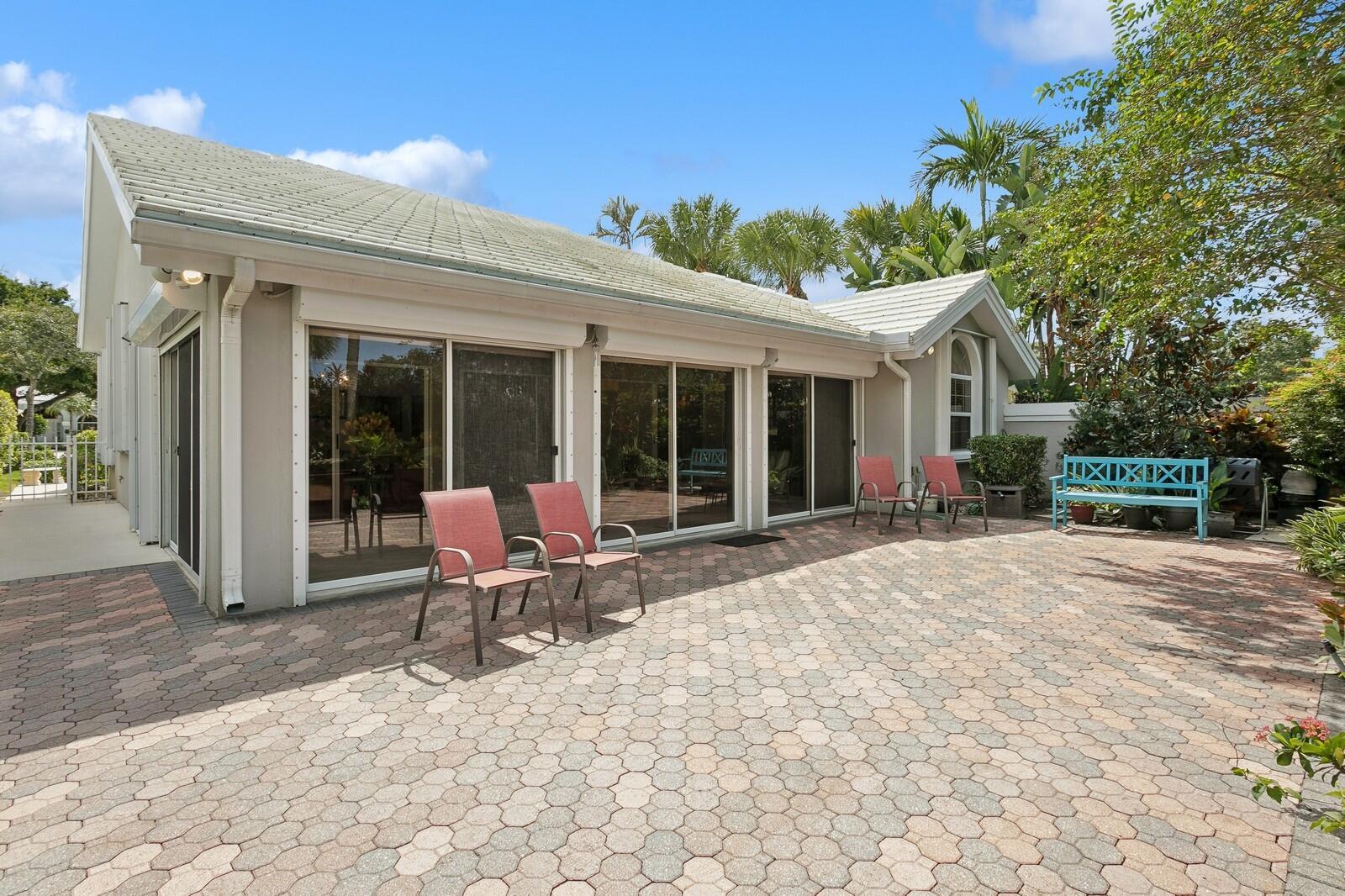 Welcome to this stunning single-family home in the gated community of Bear Island in WPB. Fl. This beautifully updated residence features a newer galley kitchen with stainless steel appliances, granite countertops, freshly painted throughout. The home boasts newer floors & an eat-in kitchen, perfect for casual dining.The spacious FR with a beautiful wall unit, formal DR open up to sliders that lead to a Florida room, which leads out to a private paver backyard. The property also offers a two-car garage & hurricane protection for added peace of mind.With 3 BR/2 BA the home includes a large owner's suite with a walk-in closet & sliders that lead to a lush landscape patio. Residents will enjoy exclusive access to 3 parks, pools ,exercise trails, tennis & pickleball facilities.