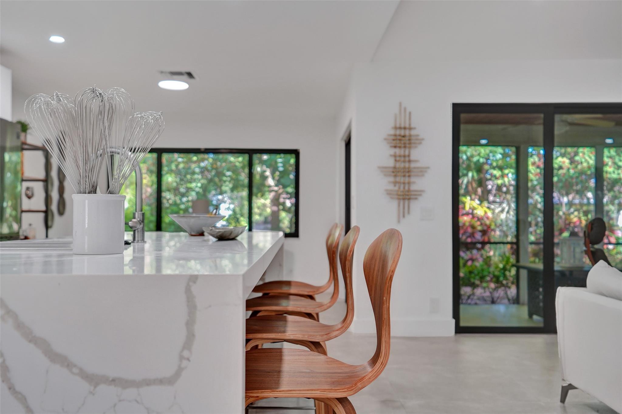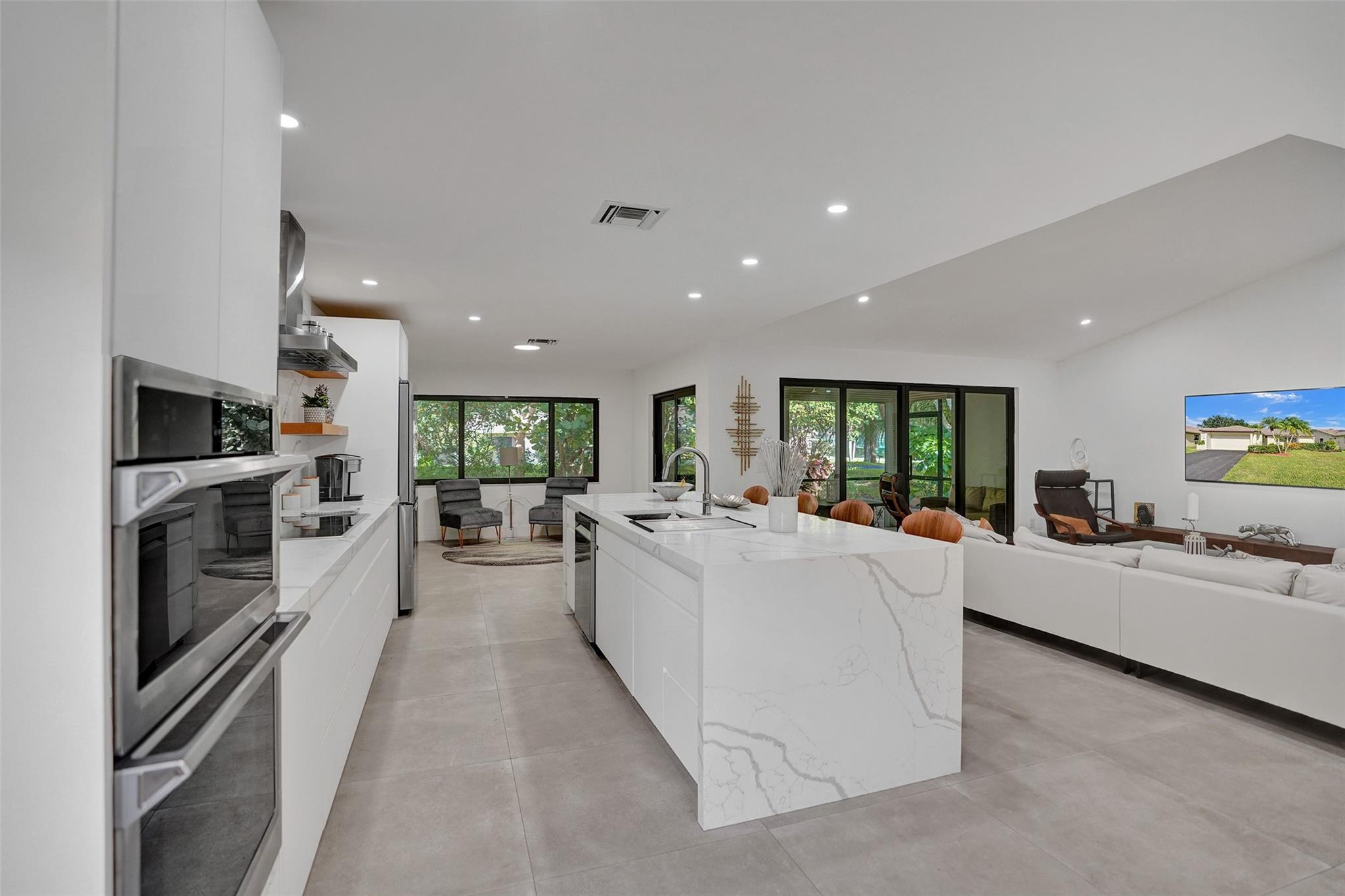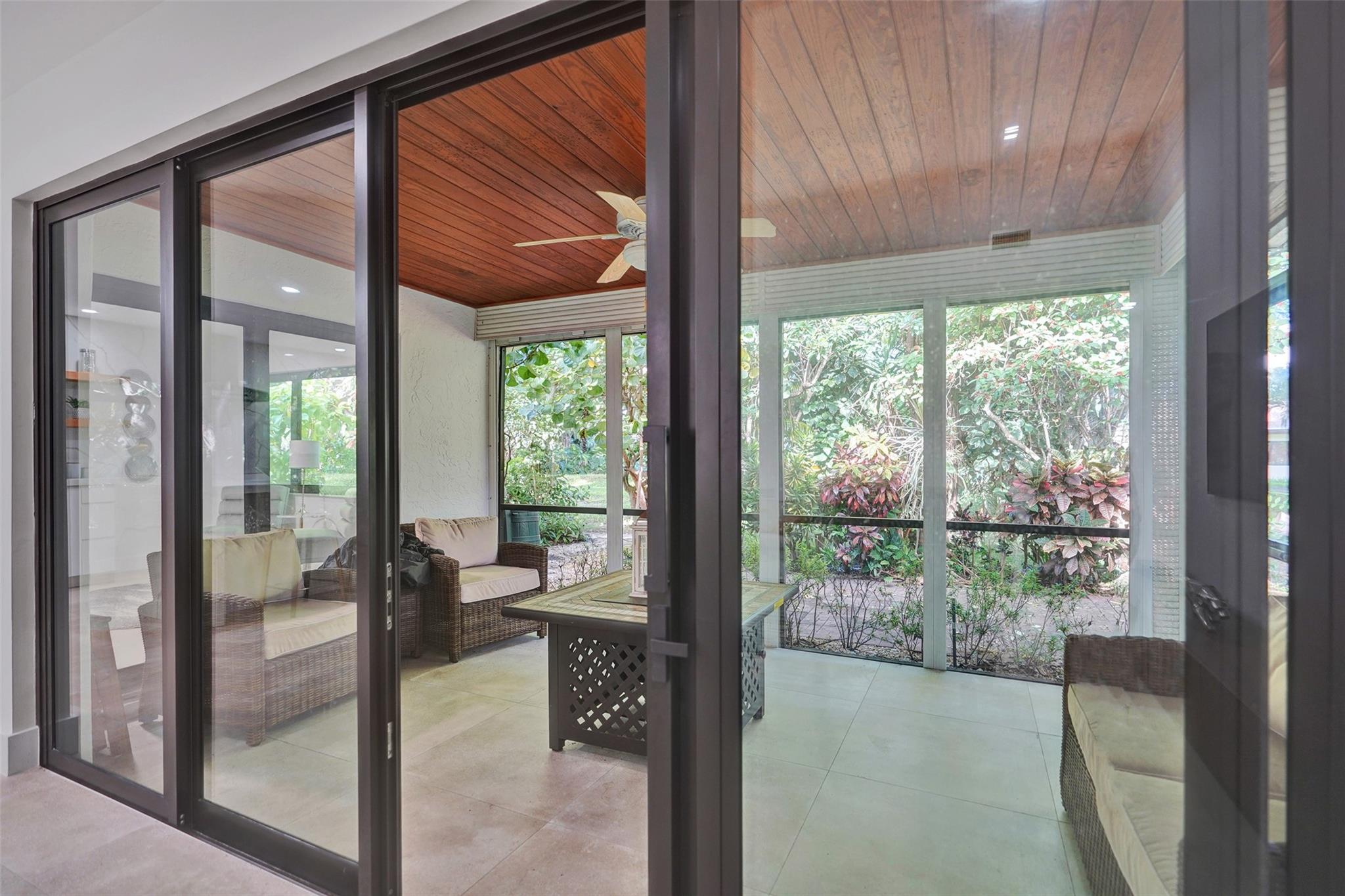 Situated in the sought-after Greenbriar community in Boca Chase, this fully remodeled 2021-2022 home feels brand new, featuring over $150K in luxurious upgrades. The owner spared no expense, particularly in the gourmet kitchen with a waterfall island, double ovens, & ample entertaining space. The home showcases sleek 30 x 30 tiles & high ceilings throughout, enhancing its spacious 3 bedroom layout. The bathrooms are fabulously remodeled, exuding a spa-like ambiance with high-end finishes. The backyard is a private with shady trees, a screened patio, & an outdoor deck. Additional features include a 2 car garage and an auxiliary power setup for a full-house generator. Enjoy community amenities like tennis courts, pickleball, a community pool, & a clubhouse, all with a low maintenance fee.