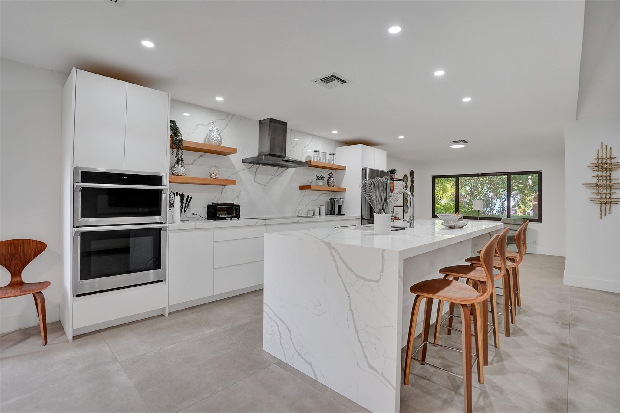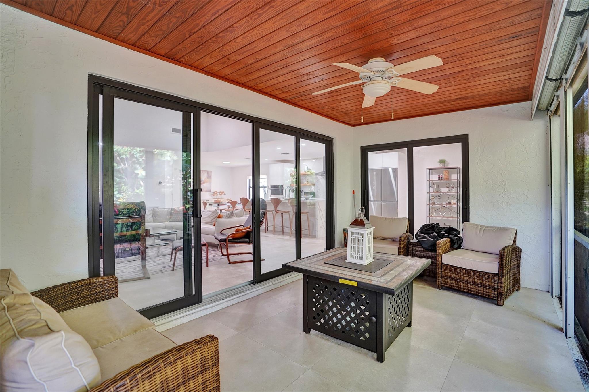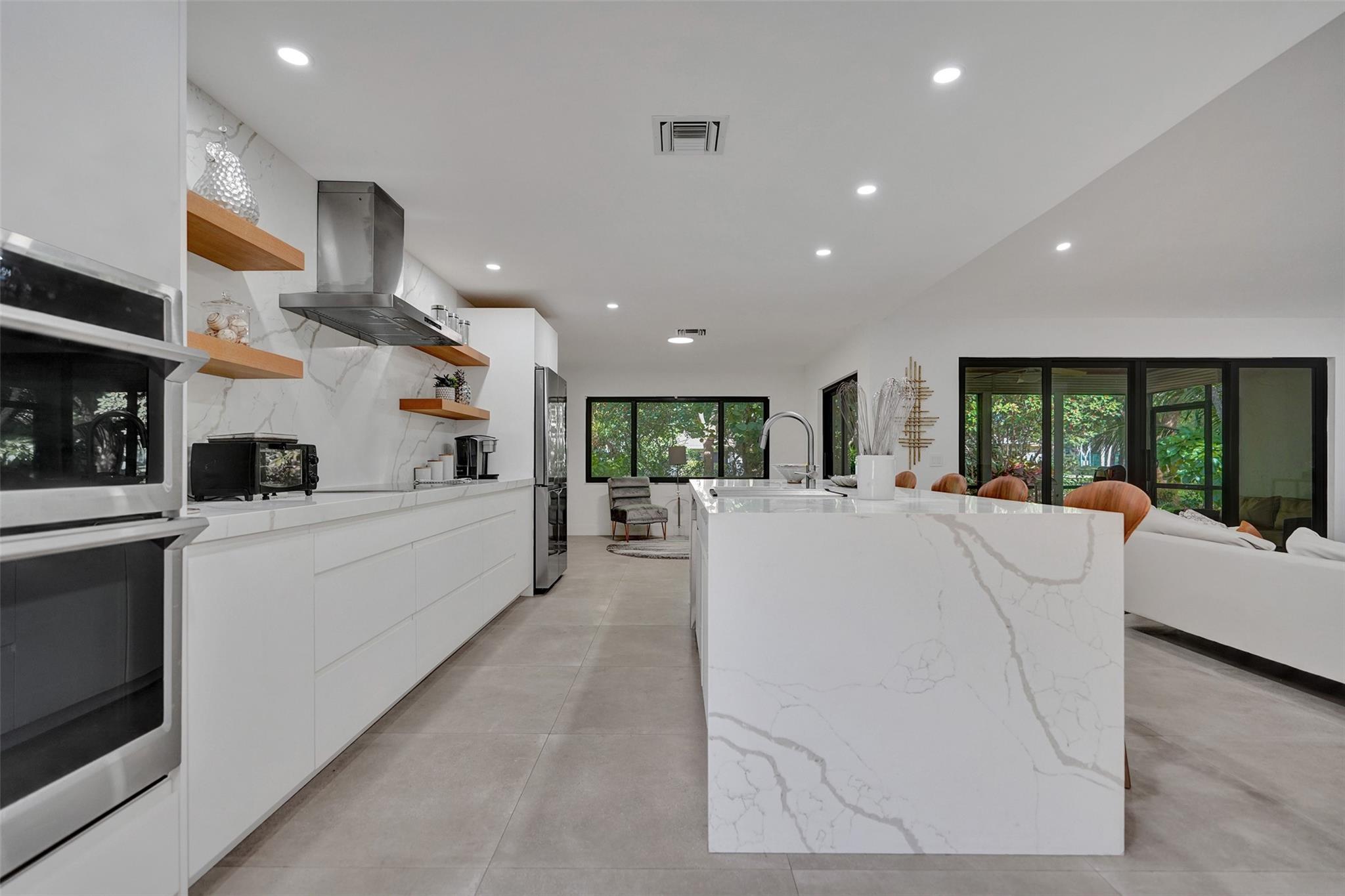 Situated in the sought-after Greenbriar community in Boca Chase, this fully remodeled 2021-2022 home feels brand new, featuring over $150K in luxurious upgrades. The owner spared no expense, particularly in the gourmet kitchen with a waterfall island, double ovens, & ample entertaining space. The home showcases sleek 30 x 30 tiles & high ceilings throughout, enhancing its spacious 3 bedroom layout. The bathrooms are fabulously remodeled, exuding a spa-like ambiance with high-end finishes. The backyard is a private with shady trees, a screened patio, & an outdoor deck. Additional features include a 2 car garage and an auxiliary power setup for a full-house generator. Enjoy community amenities like tennis courts, pickleball, a community pool, & a clubhouse, all with a low maintenance fee.