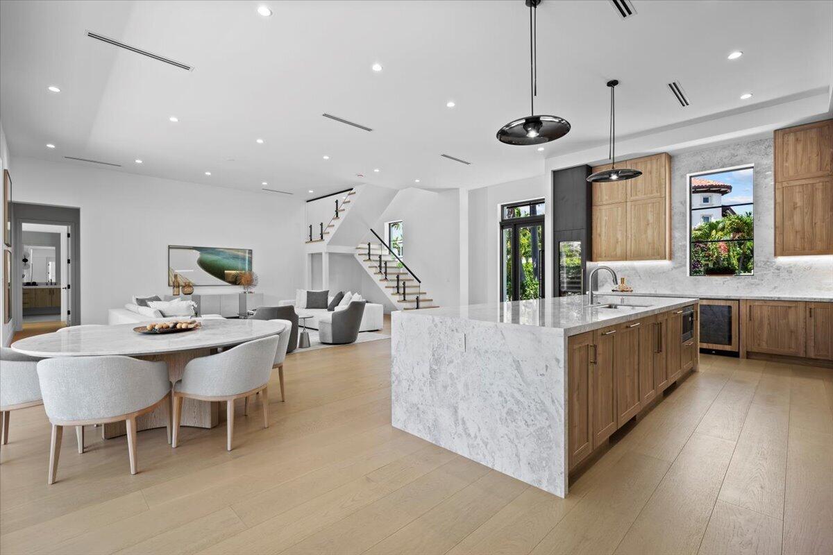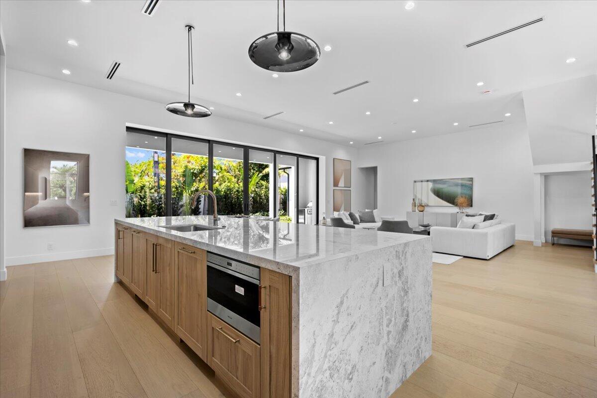 Welcome to 224 Edmor, the newest creative space designed and built by the Award winning team of Borrero Architecture and Sam Fisch Development. This take on the Modern Farmhouse mixes contemporary architecture with ultra luxury finishes on one of the best streets in the trendy SoSo neighborhood along West Palm Beach's South Flagler Drive. Boasting over 5000 sq feet of living space with 5 bedrooms and 4 1/2 baths over two floors, this home has been meticulously designed to take advantage of its wide lot with a three car garage- perfect for car enthusiasts or fitness oriented families. The open concept floor plan displays a custom built kitchen equipped with Wolfe range, two Bosch dishwashers and paneled Sub-Zero fridge/freezer as well as a full size wine cooler for entertaining.