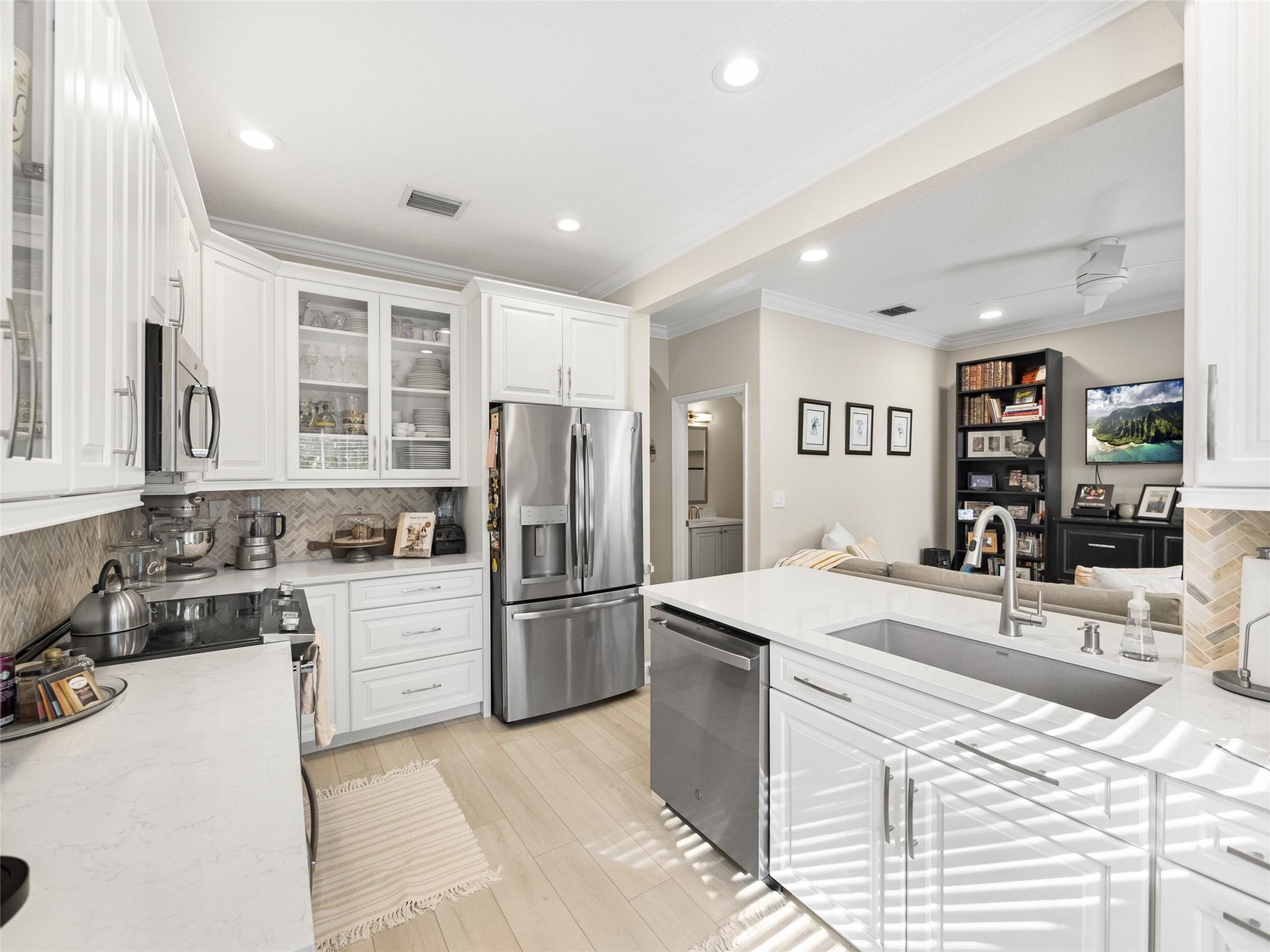 Warm & welcoming, this beautifully renovated two-story home will be your blissful retreat from the busy work week. From its elegant high ceilings adorned with crown molding to its white grey wood style floors with 5 inch baseboards & large walk in closets, you will agree this home has a lot to offer. The kitchen features new stainless-steel appliances, white quartz counters, slow close custom wood cabinets, built out pantry & marble backsplash. The frontloading washer & dryer are conveniently located upstairs with ample storage. Perfect for selfcare Sunday, the serene large paved patio faces a quiet preserve. Located in sought after Merrick Preserve, the gated community offers a large pool & is nestled close to luxurious shopping & some of the best restaurants at Coconut Creek Promenade.