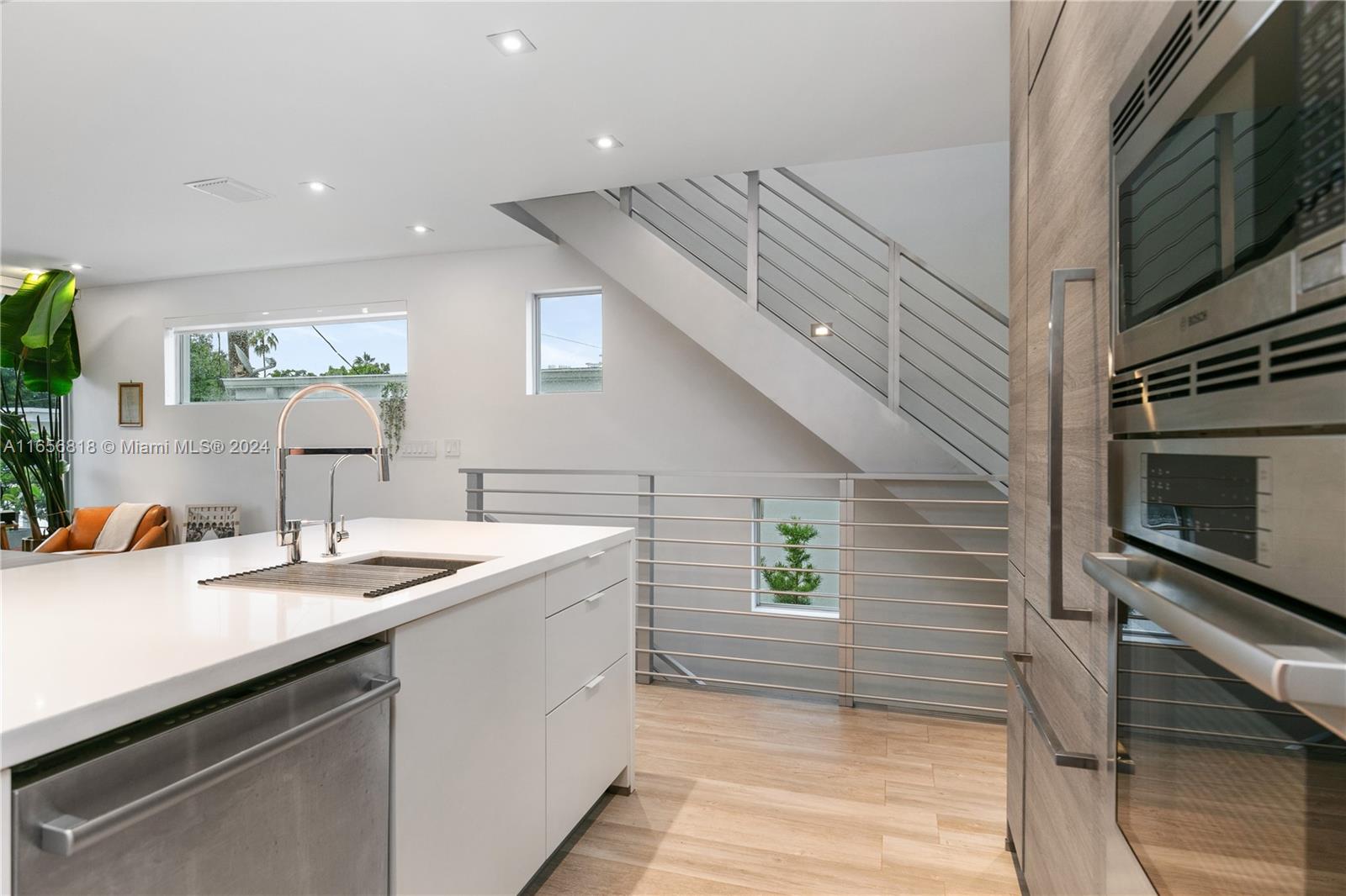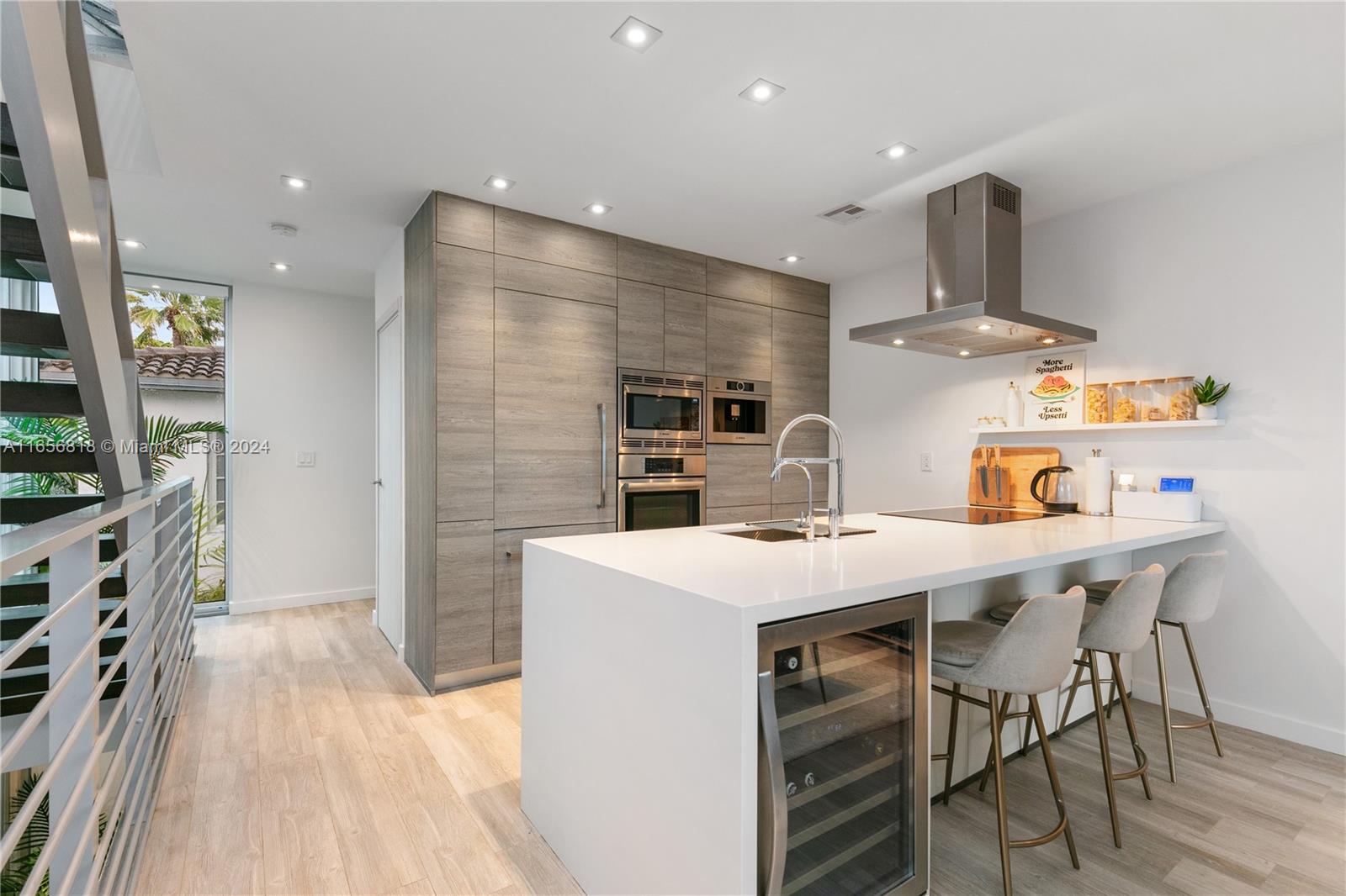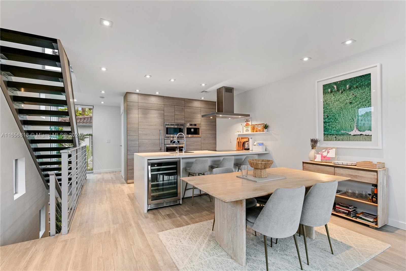 One of a kind three story, 3/3.5 Townhome with private 2 car garage, common rooftop terrace. Professionally designed lighting plan, individually controlled climate zones on each floor, automatic shade controls. ALNO kitchen with Bosch appliances featuring built-in refrigerator, dual zone wine fridge and espresso maker. ALNO bathroom cabinets with Duravit and Hansgrohe fixtures. Floor to ceiling windows in living room and master bedroom. Total Square Footage including garage, balconies and roof top is 2270. Fully gated building. BRING YOUR CLIENTS, IT WON’T LAST.