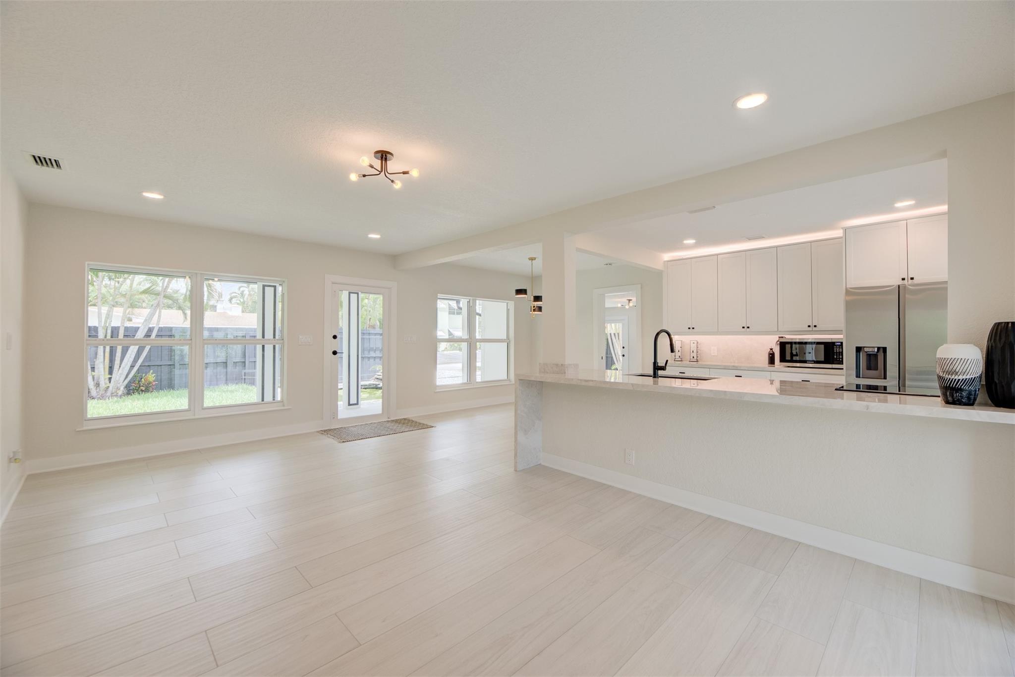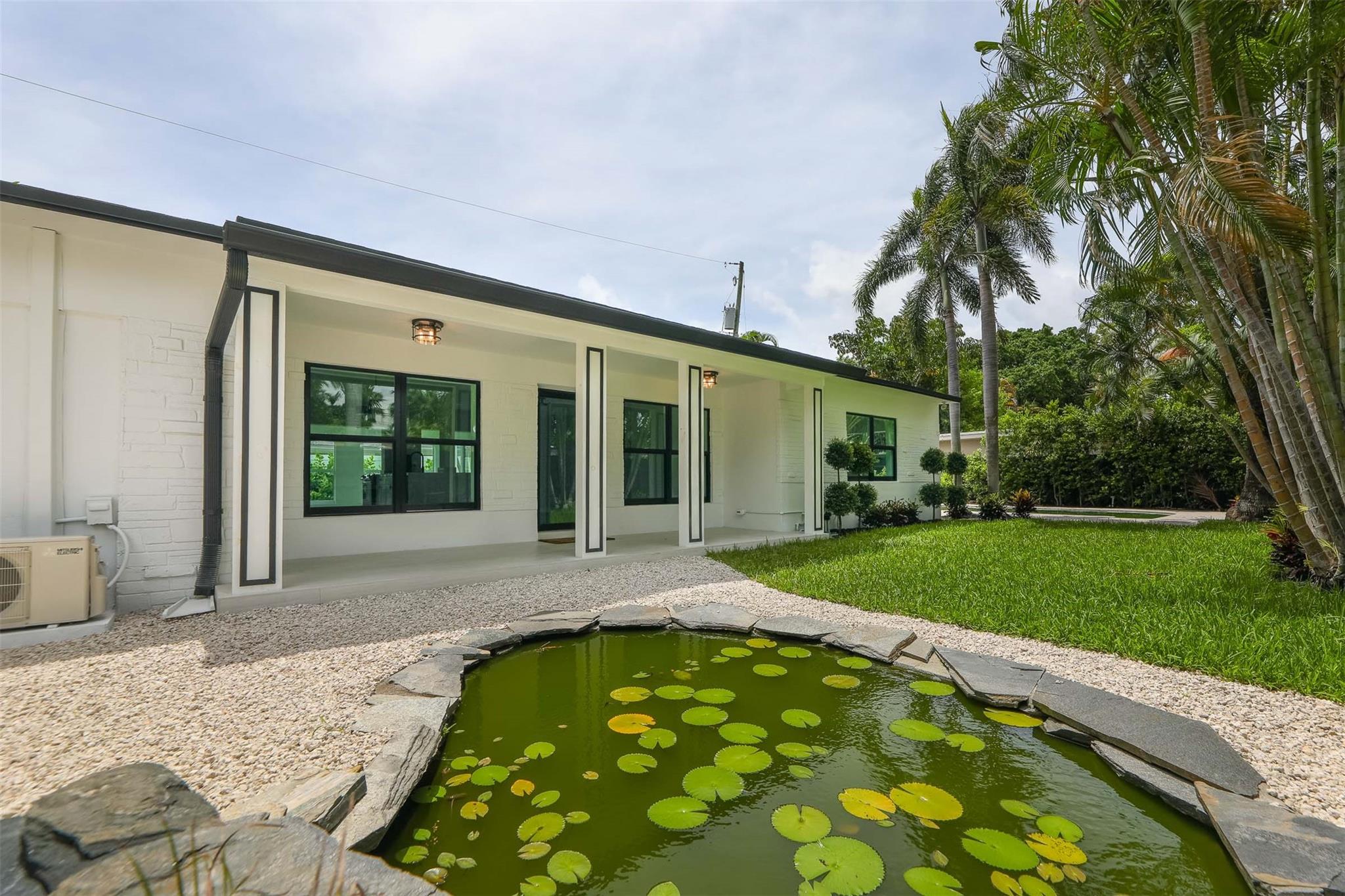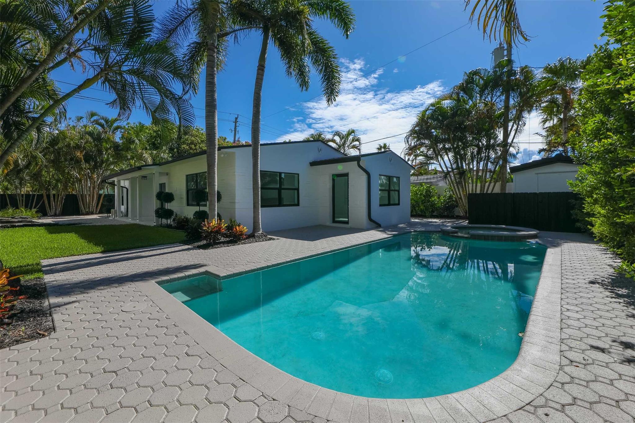 3 bed/3 bath Victoria Park pool home (almost 1900 sf) with koi pond (walking distance to beach, restaurants and entertainment) large master with den; all impact windows and doors; new roof (2024) newer AC (3 yr) and water heater (2 yr); all new ceramic tile flooring; new kitchen with granite and stainless steel appliances; new electric pool heater (1 yr) with waterfall & spa; updated electric; mature tropical landscaping; interior laundry room; completely fenced for tropical privacy! Great as a rental/Airbnb as two bedrooms have separate entrances. GREAT SCHOOLS! HARBORDALE ELEMENTARY!