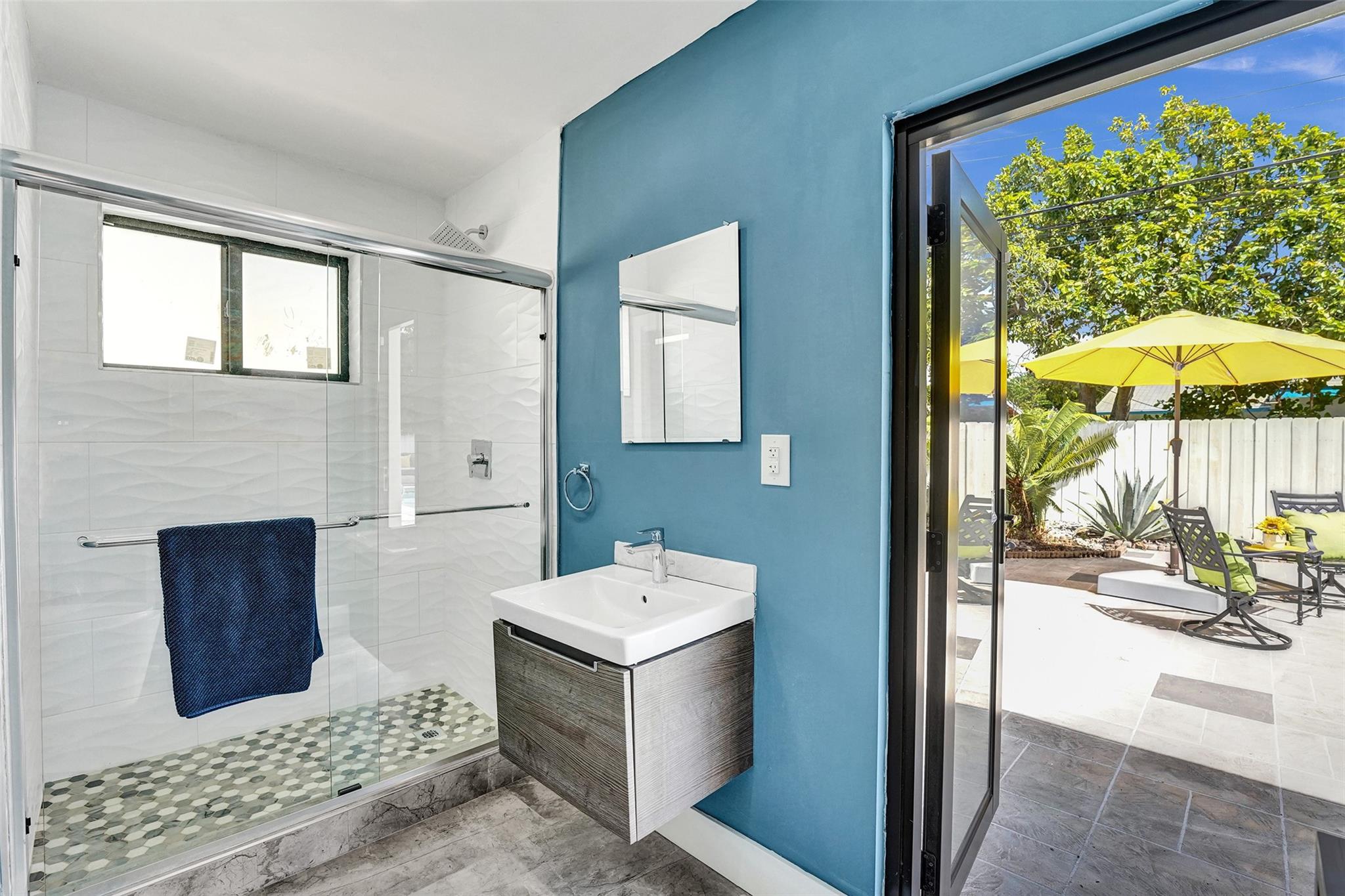 Totally Remodeled 3 Bedroom 3 & 1/2 bath Contemporary home located in Coral Ridge Isles around the corner from PINE CREST SCHOOL & in FLORANADA SCHOOL district if you have kids. All openings are impact glass. 36" rectified porcelain floors in main area. Open concept Quartz Kitchen w/ 2 tone cabinetry & Quartz center islands w/ seating for 4 & great storage. Split bedroom plan. Primary bedroom has double glass sliding doors leading to heated pool. & bathroom showcases quartz double floating vanity & marble shower. 2nd & 3rd bedrooms have shared bathroom. Perfect full cabana bath for guests & is also accessible from 2 car garage. AC installed in 2023 & Roof 2022. New sprinkler system. Wide contemporary interior doors & wood blinds thru-out. 2 tankless water heaters.