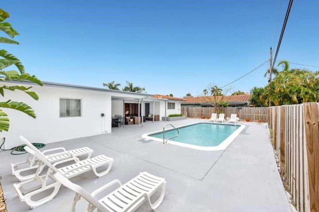 Experience your own slice of Florida paradise with this beautifully remodeled 3-bedroom, 2-bathroom pool home in the coveted Pompano Beach Estates, just a short walk from the beach. With no rental restrictions and certified as a vacation rental, this property is a perfect addition to an Airbnb portfolio. The home boasts an open layout that floods the space with natural light and elegance, featuring sliding doors that lead to a spacious porch and a picturesque pool view. Additional highlights include a circle driveway, a one-car garage, a modern kitchen with granite countertops and stainless steel appliances, and a new A/C system.