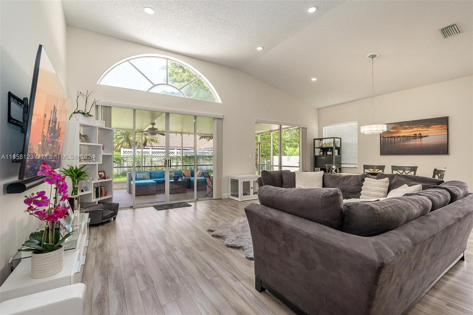 Charming All-Ages Community Home. Discover this beautiful 3-bedroom, 2-bathroom home featuring with garage. Enjoy the elegant vinyl floors and high ceilings throughout. The updated kitchen boasts stainless steel appliances, making it perfect for culinary enthusiasts. Relax in the enclosed patio, ideal for gatherings or quiet evenings. Benefit from low HOA fees in this welcoming community. Don’t miss out on this fantastic opportunity!