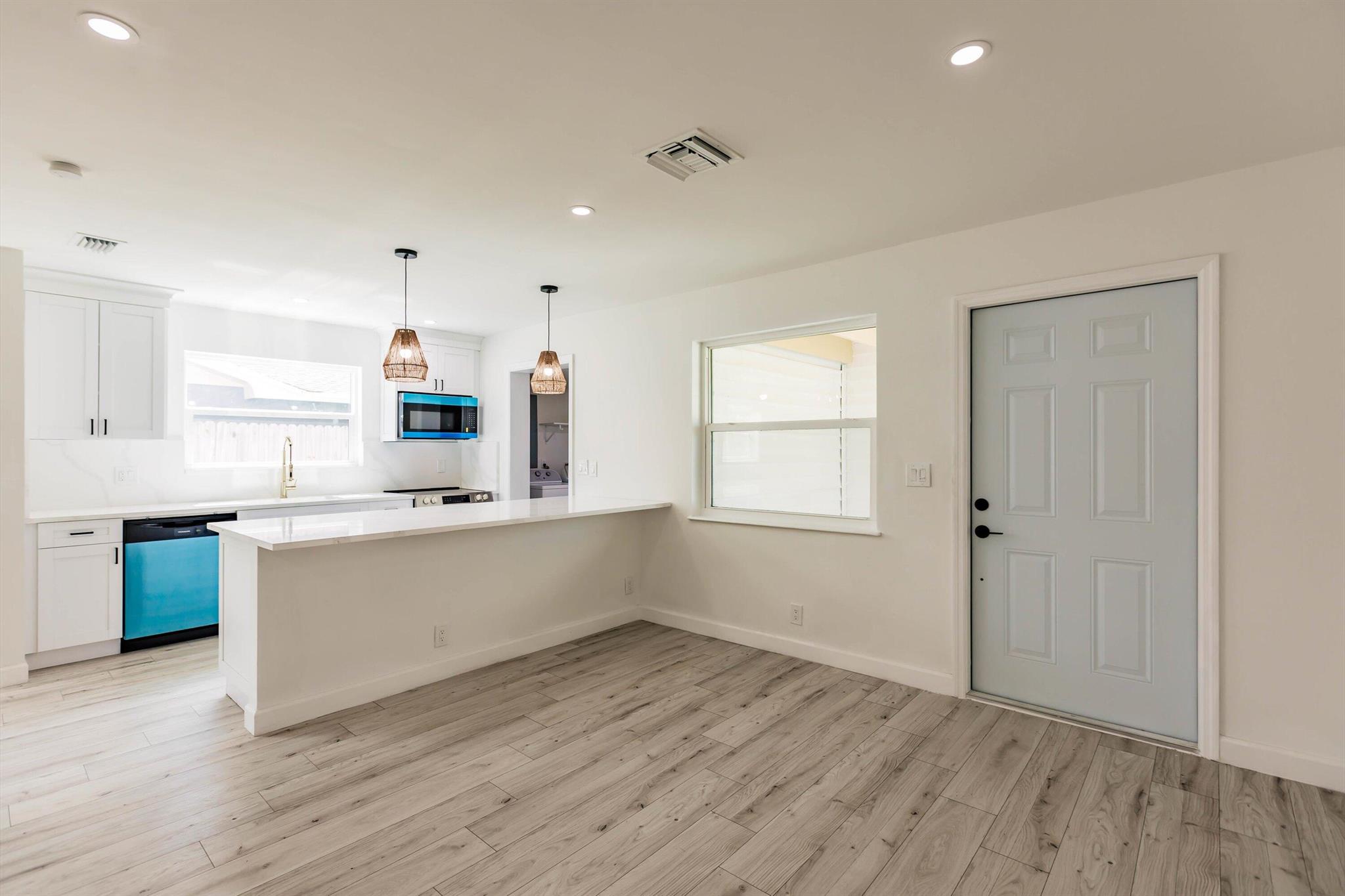 This is it!!!Gorgeous 4 bedroom, 3 full bathroom home has been completely renovated! You will love to cook in this beautiful kitchen with white cabinets and a touch of gold. Luxury vinyl flooring throughout has a rich light wood color. Your Private Primary suite has its own access to back yard. Mother-in-law suite/second income unit is possible!!The 4th bedroom and huge second living area is pre plumbed for a full kitchen with its own full bath and private access door. New AC, ELECTRICAL and plumbing, Impact windows (except glass SLIDING doors) This home is a must see!
