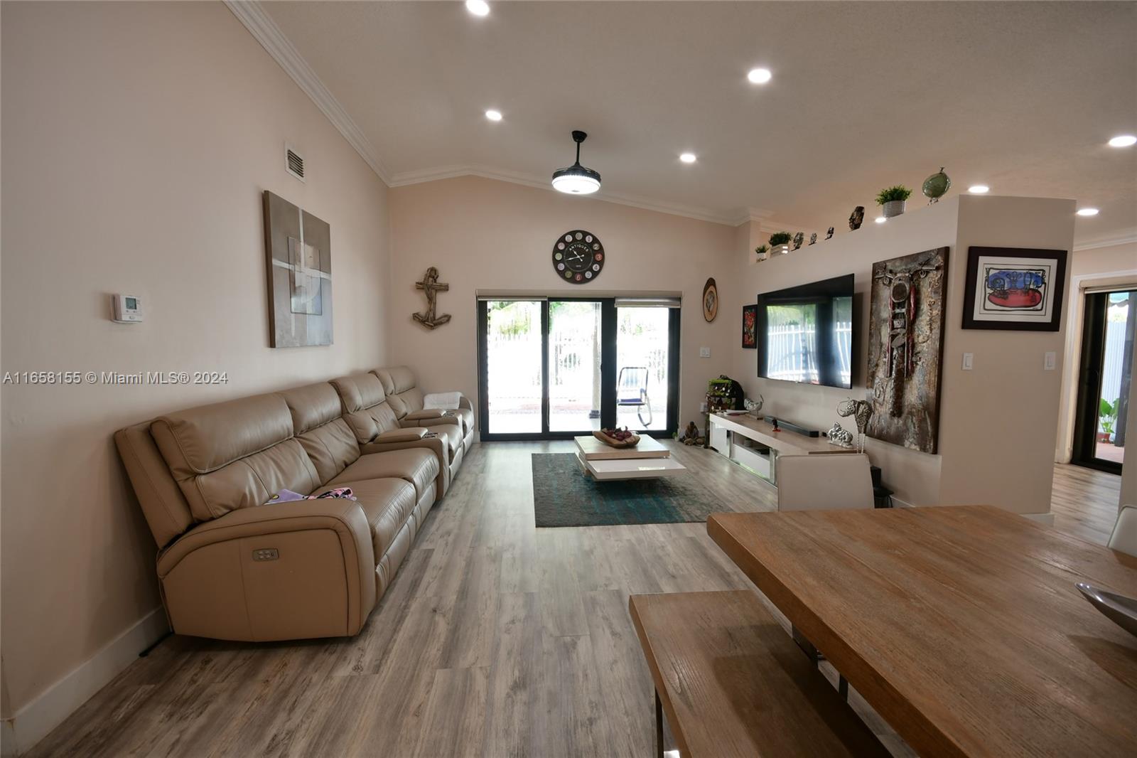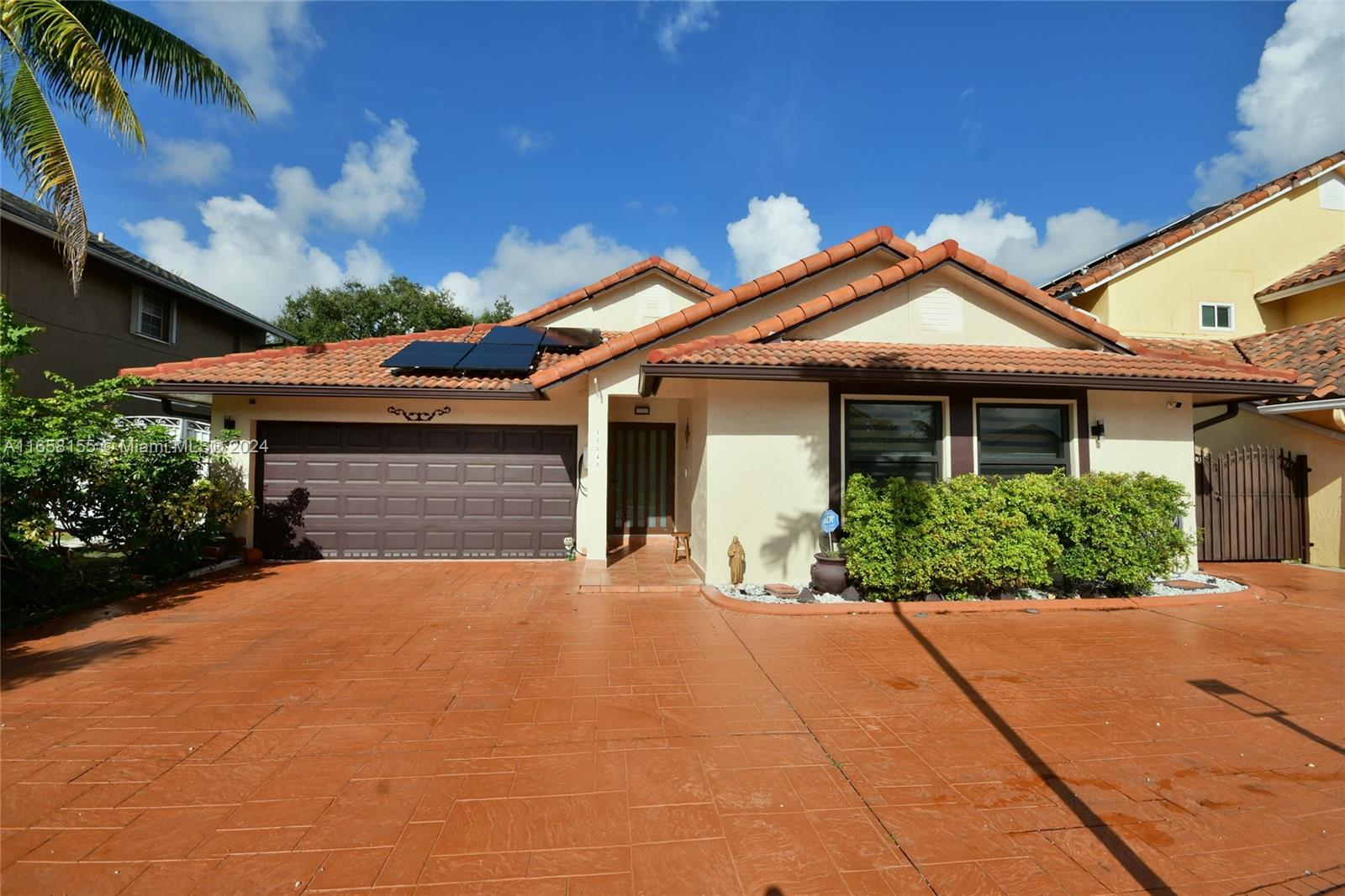 Seller contribution! Discover lakefront living in the highly sought-after community of Esplanade! This 4-bedroom, 2-bathroom gem offers breathtaking sunset views from your inviting paved patio, complete with a covered terrace and a relaxing hot tub. With no rear neighbors, you'll enjoy peace and privacy, while the scenic lakeside path offers the perfect setting for morning or evening walks. The home features a brand new high-impact front door, high-impact windows throughout, and solar panels for energy efficiency. new refrigerator, washer and dryer, new floors, new LED lights, and alarm. With a very low HOA and an unbeatable location just a few minutes from I-75, Miami Lakes, and the future American Dream Miami megamall this property is a must-see!