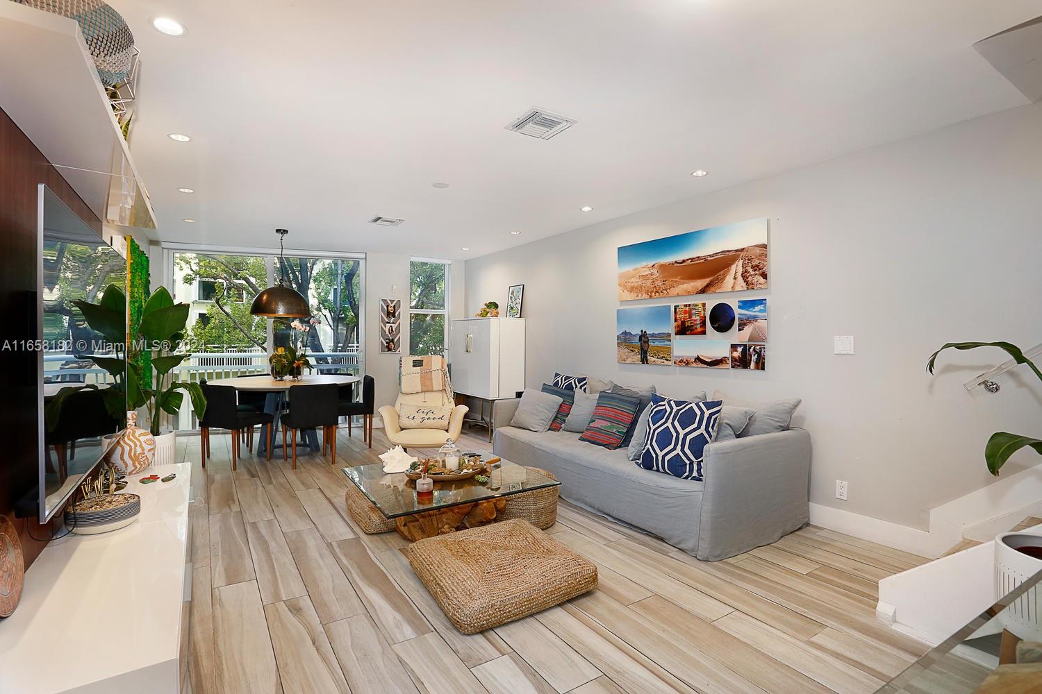 Rare find South of Fifth - beautifully updated 3/2 townhome. Enjoy peace and serenity with only 18 units in this quiet, secure, gated complex on the most beautifully tree-lined street in all of South Beach. The garage features elevated storage and new electronic garage door to safely park a vehicle with a carport space for a second vehicle. Brand new AC unit installed in July. Entire complex is receiving a fresh new look with painting happening now. Custom built-in storage closets in all 3 rooms. Hurricane glass in all windows. Entry level features full size water/dryer, full bath, and a guest bedroom. Second floor is the 'entertainment' level with open kitchen and spacious living/dining and lots of light. Third floor are two more bedrooms and large full bath. Leased through Jan. 10, 2025