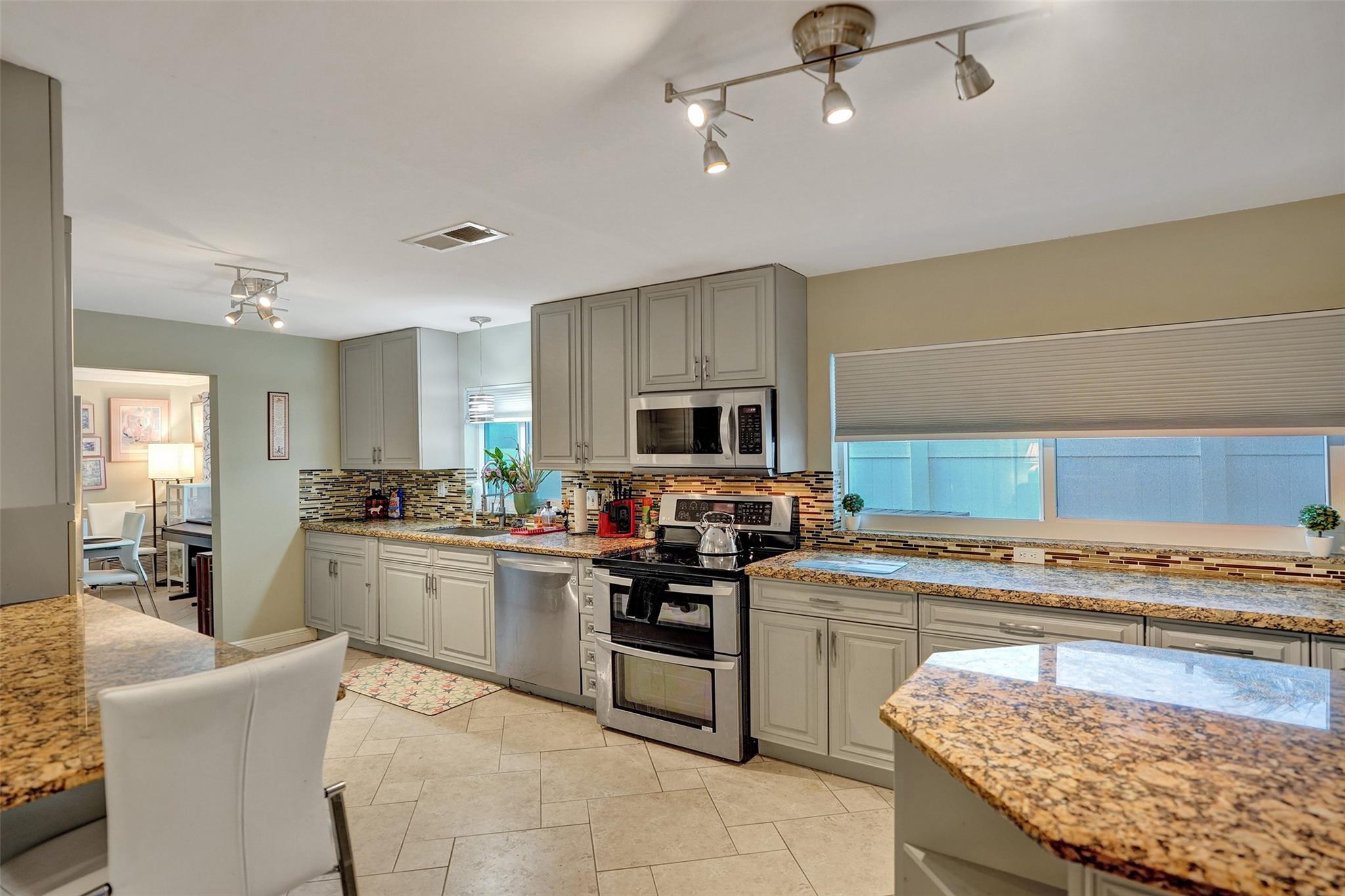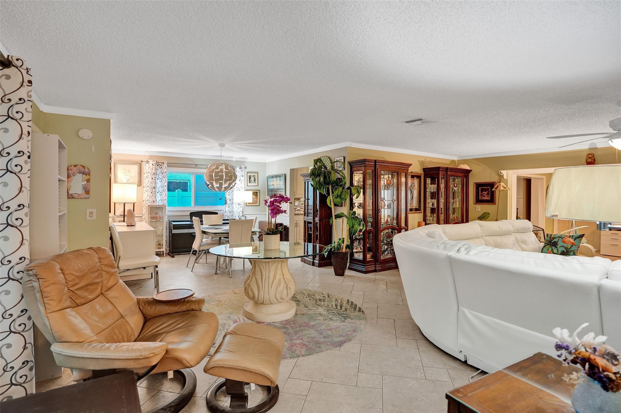 Discover your dream home! This stunning 3-bedroom, 2-bath single family residence with a den and a 1-car garage is waiting for you. As you arrive, you’ll be greeted by a lush tropical landscape featuring palm trees. Step into the inviting screened front porch and feel instantly at home. Updated kitchen is a chef's dream, boasting granite countertops, stainless steel appliances, ample storage, and a spacious island. AC 2022 and 2024 water heater 2024. Additional highlights are stylish tile and vinyl plank flooring throughout, crown molding, hurricane impact-windows and doors, a hurricane-rated garage door, and a fully fenced yard complete with a pergola a beautiful hot tub recently added and low-maintenance artificial turf. Relax on the screened patio perfect for entertaining! With no HOA!