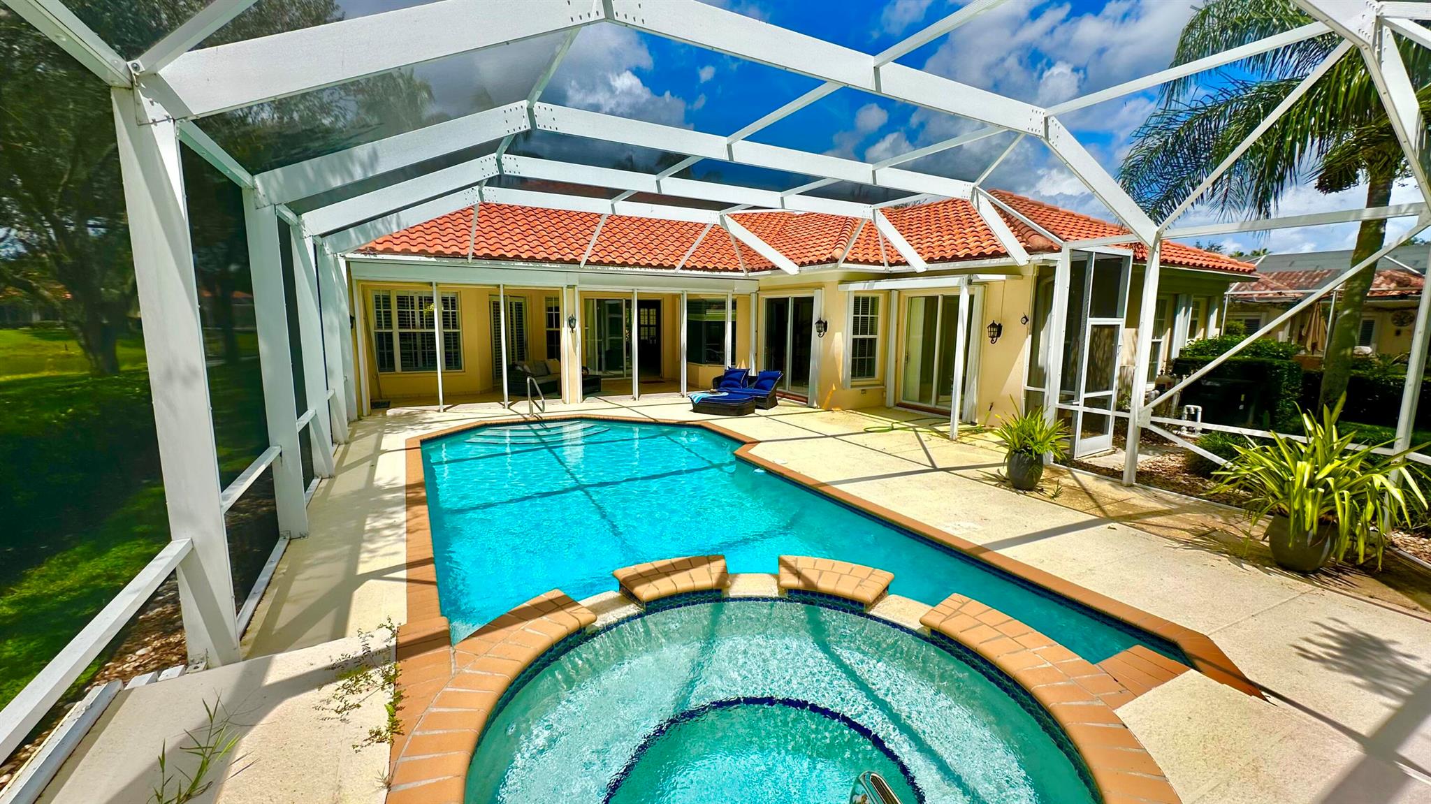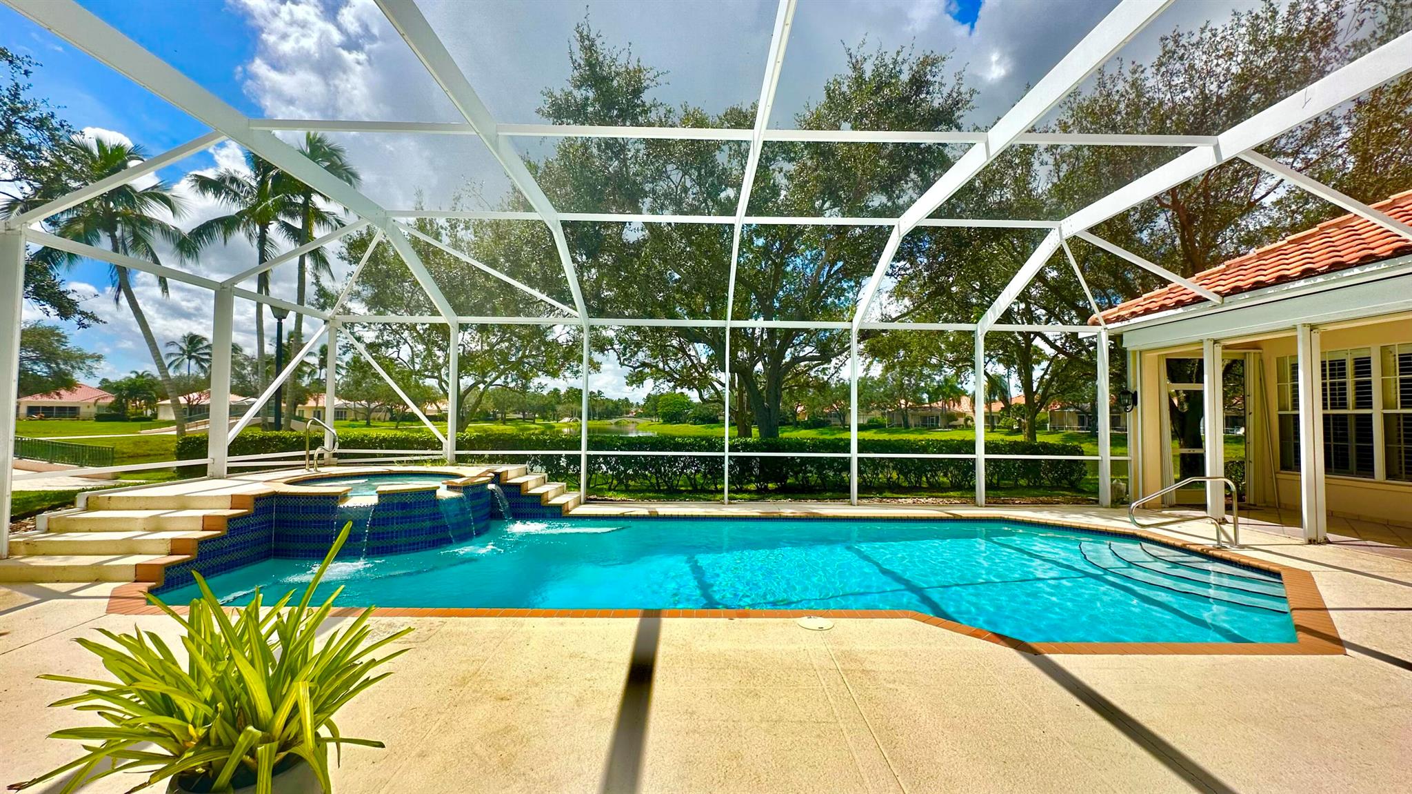 PHENOMENAL!! Hands down one of the best views and locations in RiverWalk... wake up to a glorious sunrise and wind down to a stunning sunset! This beautiful ''Windsor'' is situated on the point lot at the end of the cul de sac and enjoys wrap around views of the lakes and bridges. The oversized custom pool is a show stopper and has a raised spa with waterfalls and jets. Another great feature is the NEW ROOF in 2020!! The list of features this home has is abundant- roll down hurricane shutters, custom tiled flooring in the main living areas, crown molding, split floor plan (3 bedrooms on one side and the principal suite the opposite.