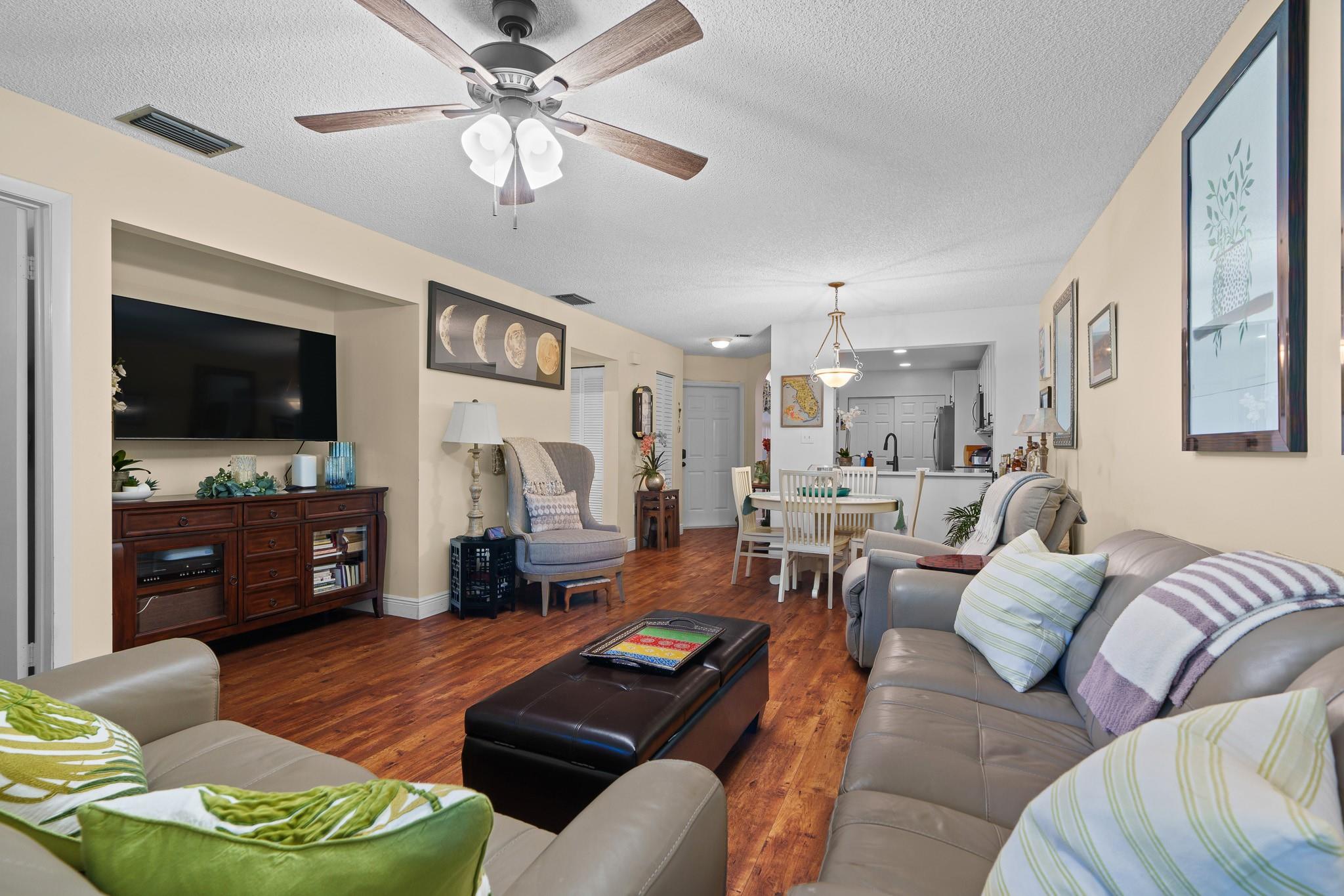 Completely updated 2/bed/2bath single story townhome w/ garage located in lovely maintained community! Kitchen w/ quartz countertops, stainless steel appliances & spacious pantry. Luxury vinyl plank floors throughout & epoxy floors in garage. Screened-in patio opens to peaceful green space w/ mature trees. Motorized blinds & full hurricane protection w/ impact windows & doors. A/C, roof, exterior painting & paving all completed w/in 4 years. 40 year inspection complete. Association has reserves. Assessments paid! Ask lender about financing options that could allow for 10% down or 25% down needed. Pet friendly w/ combined weight 75 lbs. Community includes pool, clubhouse & BBQ area & 1 mile from Central Park w/ aquatics center, pickleball, playground, splash pad, basketball, trails & more!