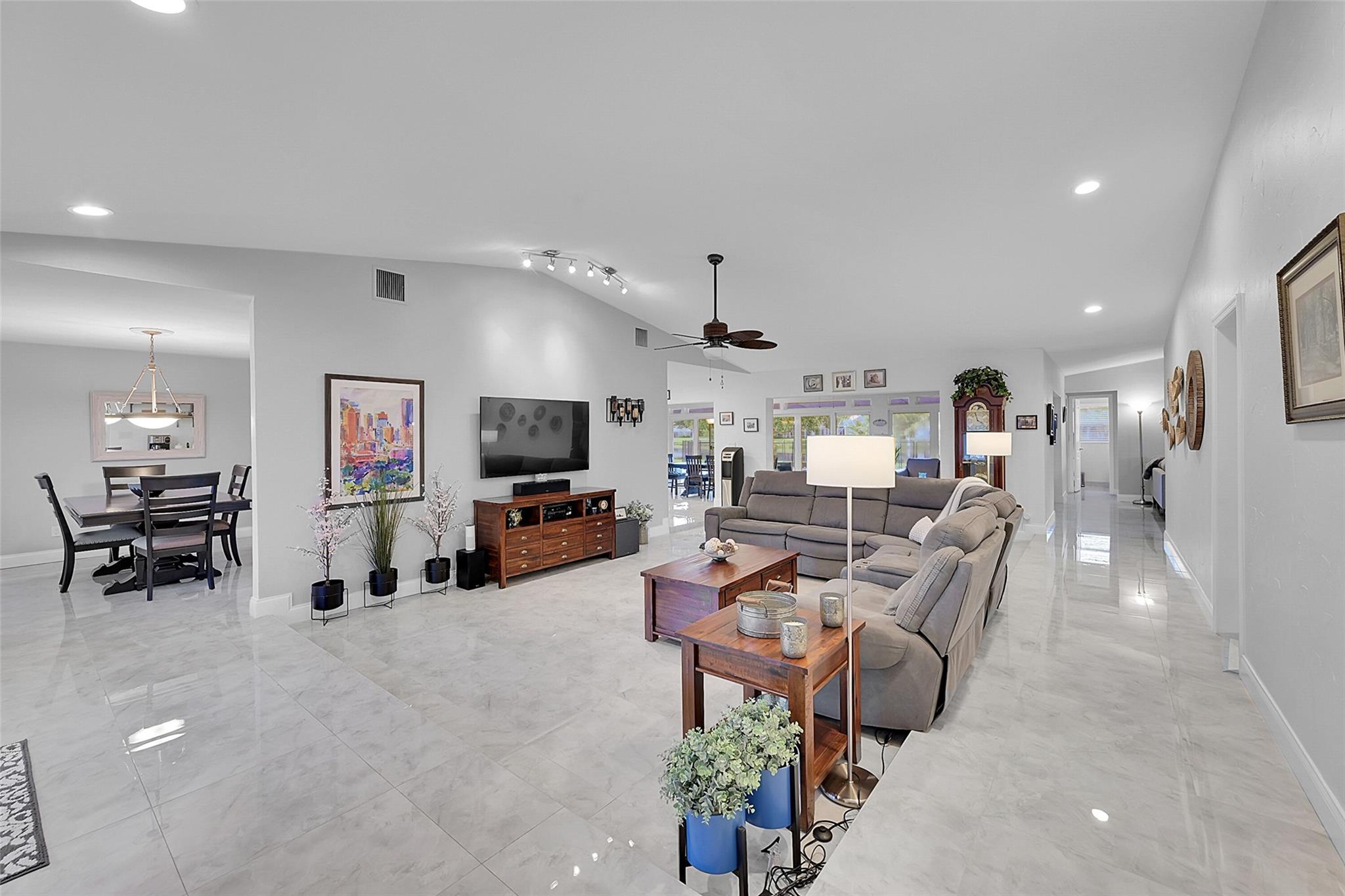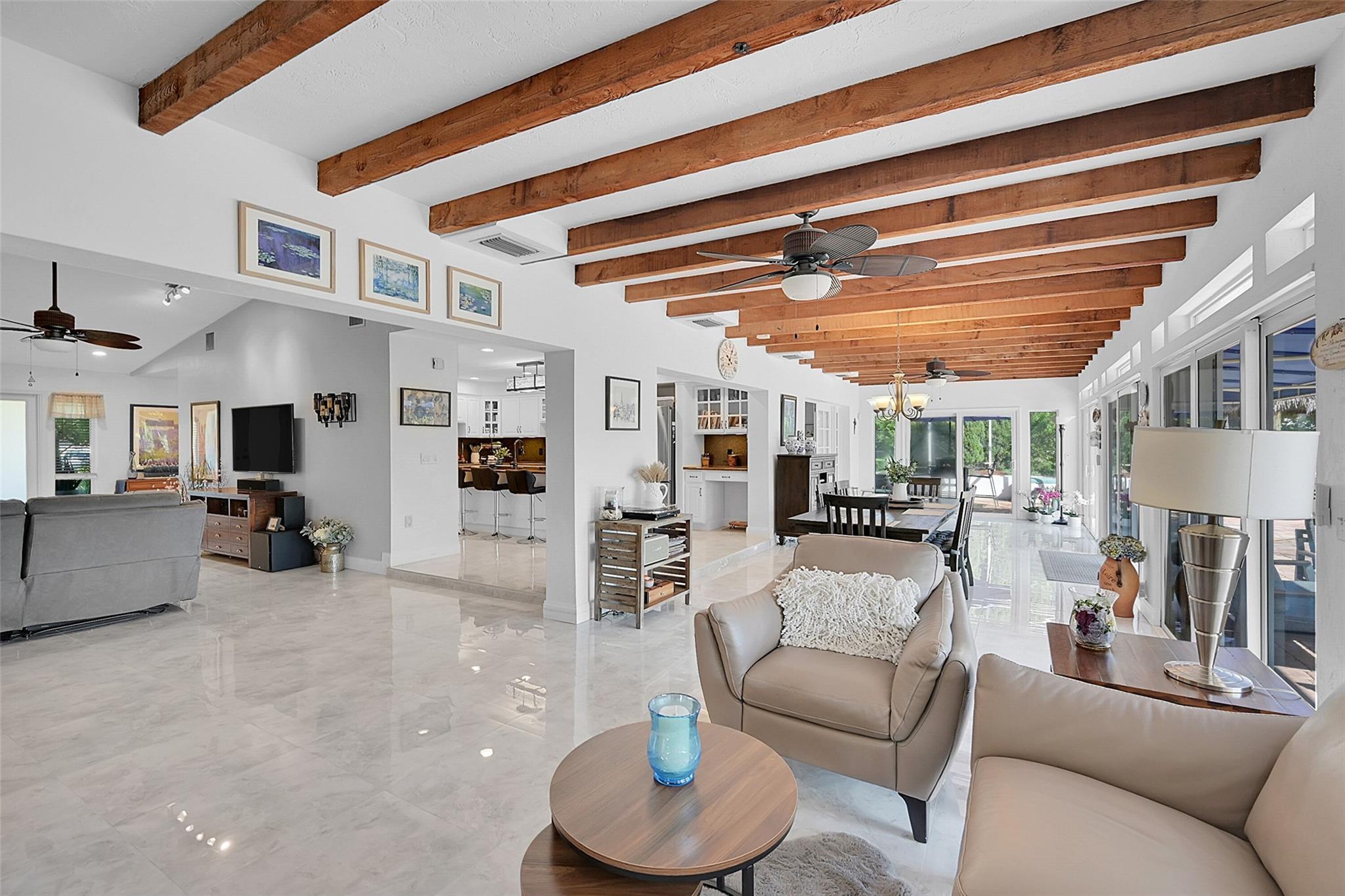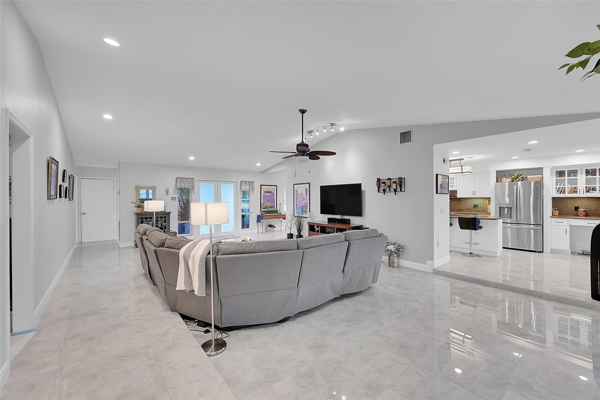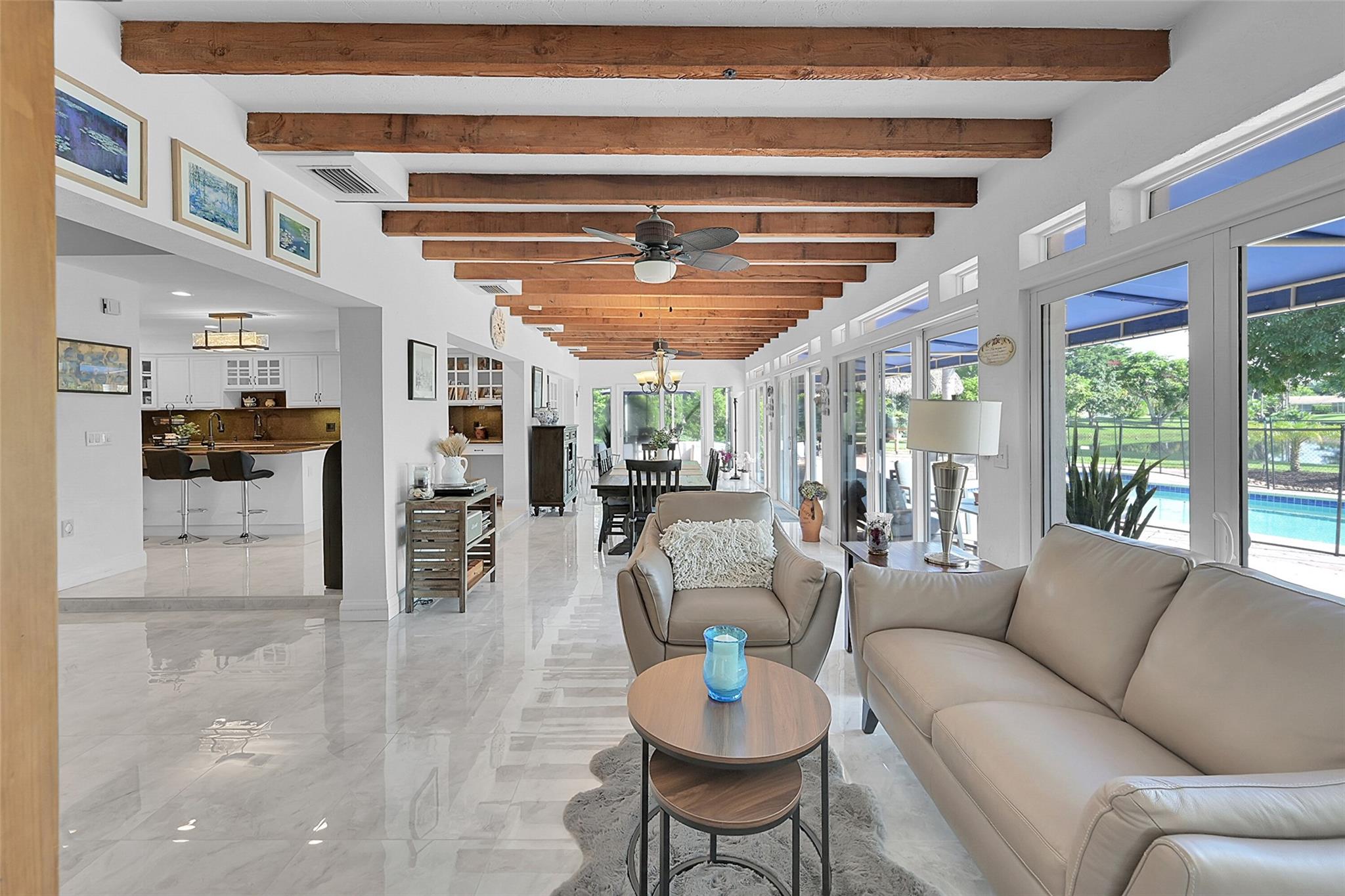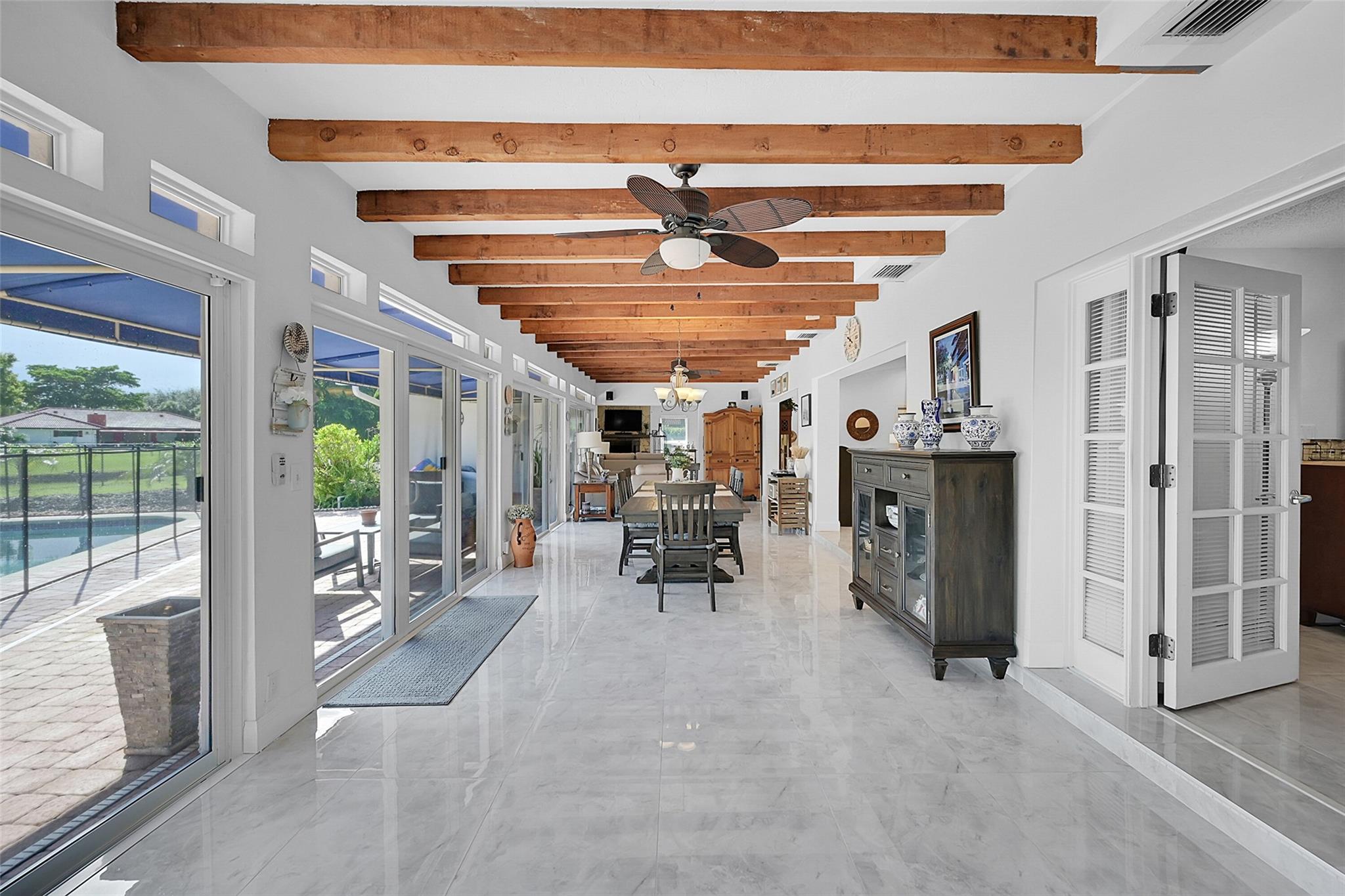 Check out this HIDDEN GEM w/ NO HOA!! Stunning 3,134 sq ft waterfront pool home won't disappoint with its open concept living on a nearly 17,000 sq ft lot. This 4/2.5 home with upgraded kitchen boasts white trending cabinets, granite countertops, SS appliances & double oven. Sleek porcelain floor through-out majority of the home. Addt'l features include screened patio, new pool pavers, a beautifully paved driveway, & a tiki hut for unforgettable gatherings. Enjoy a your large pool, hurricane impact windows/doors, amazing natural light through-out the home, a real fireplace, an oversized laundry room. Recent four-point inspection & new electrical panels meet all insurance needs, top C.S. schools & nearby amazing restaurants. This home won't last, once you're in, you won't want to leave!